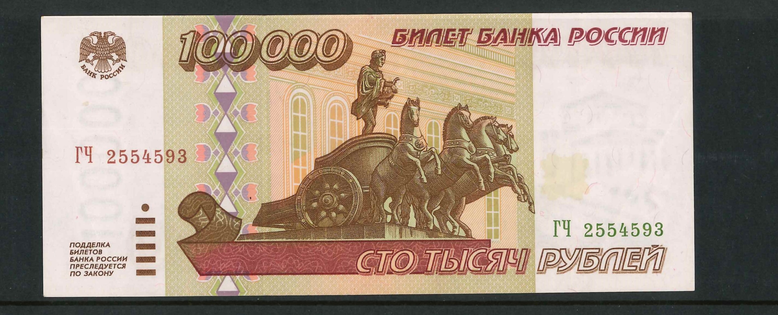 Banknotes; Russia; 1995 100,000r, EF, Krause 265.