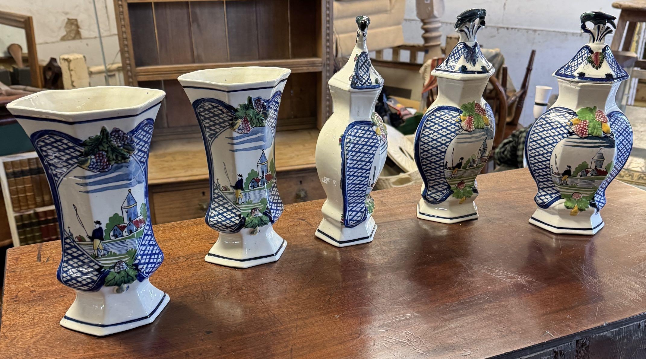 5 delft vases & urns