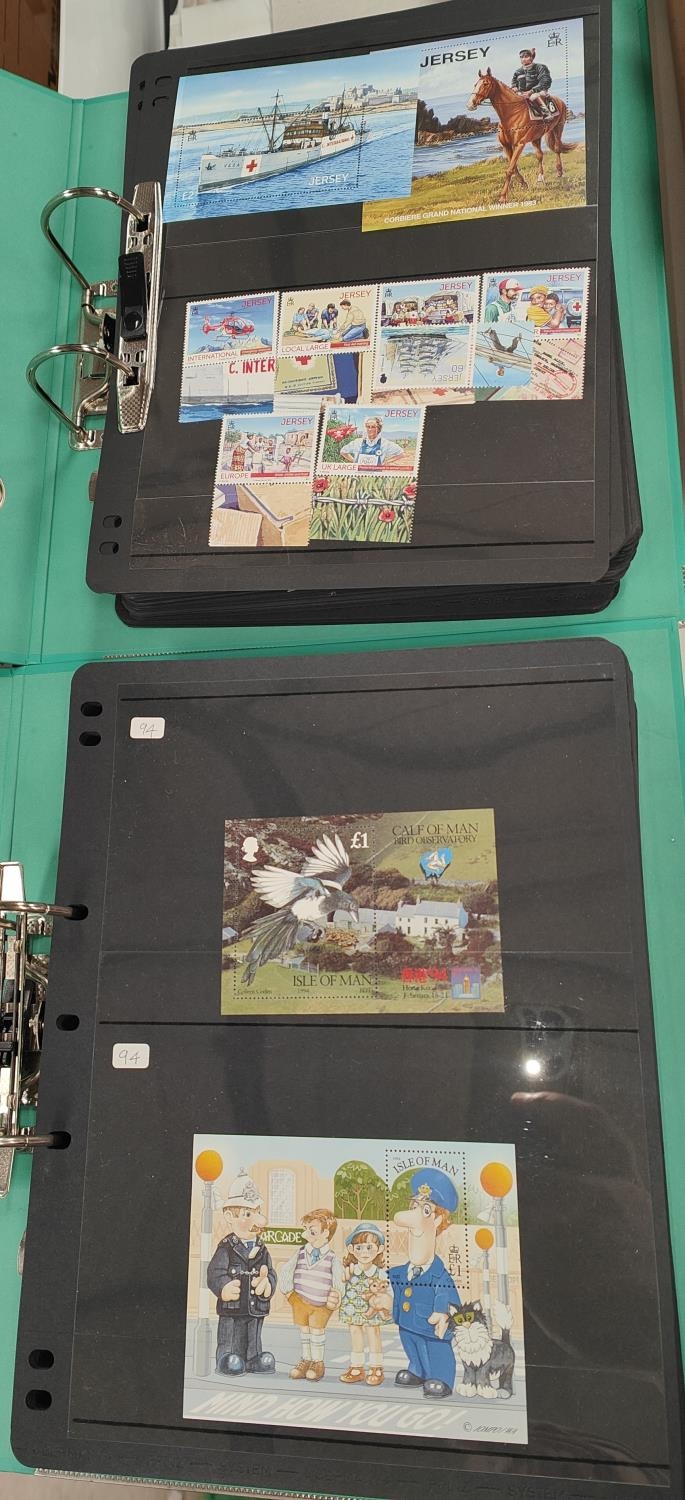 Two folders of stamps, one IOM, one Jersey with mint stamps, some blocks etc
