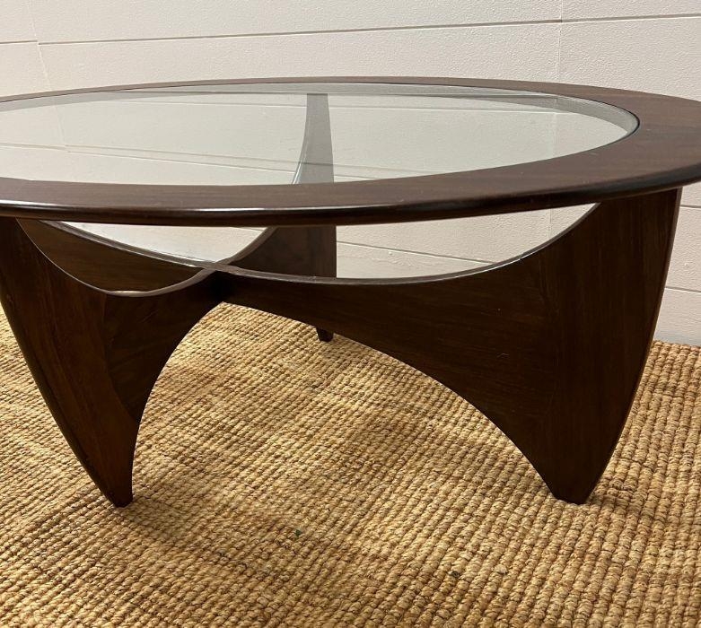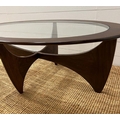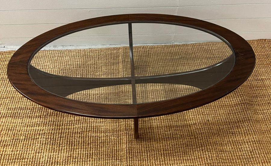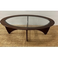 A G-Plan Astro oval table with glass top (H42cm W122cm D66cm)