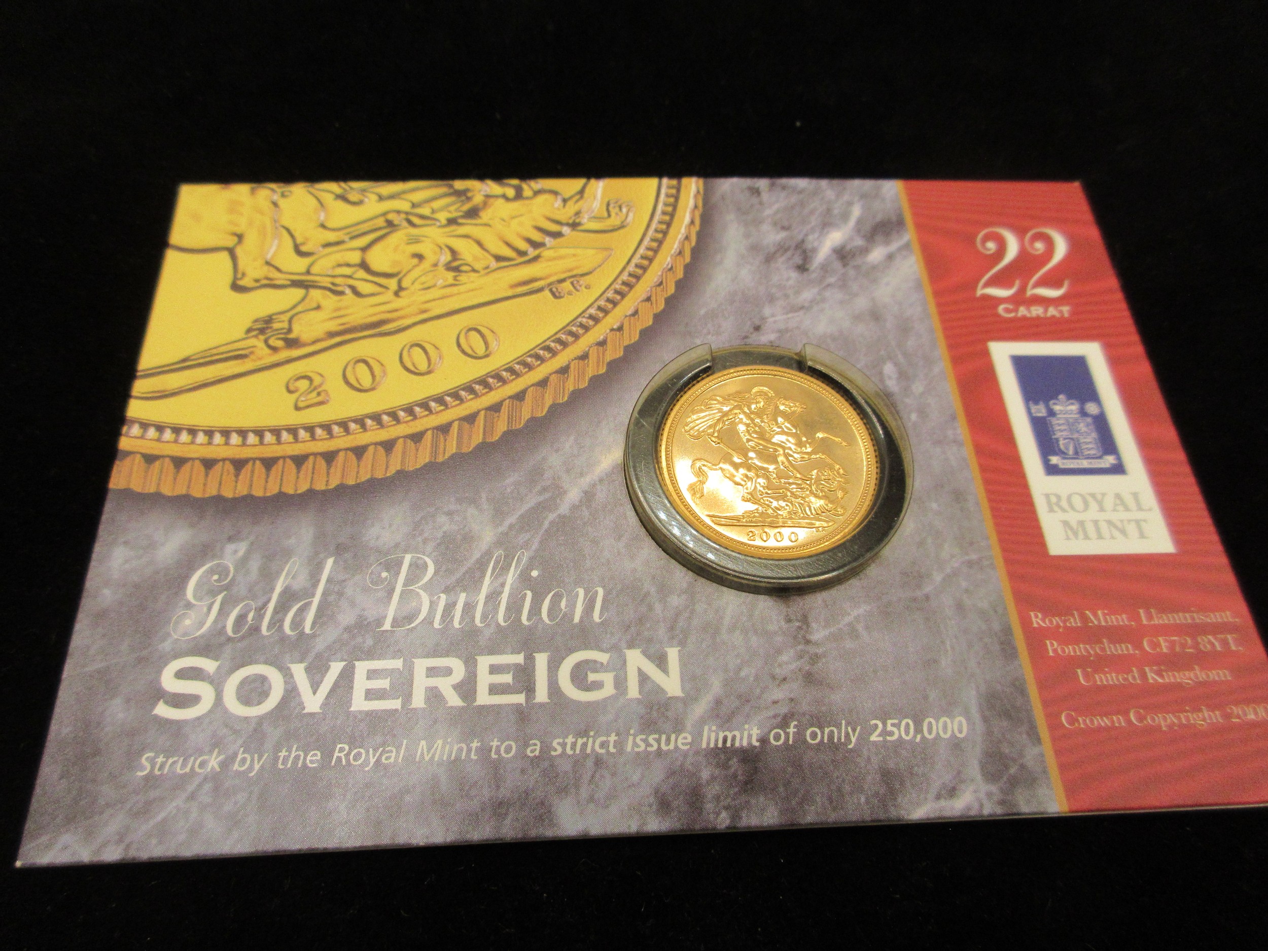A 2000 HM Queen Elizabeth II full sovereign, in bright uncirculated condition, sealed in Royal Mint packaging