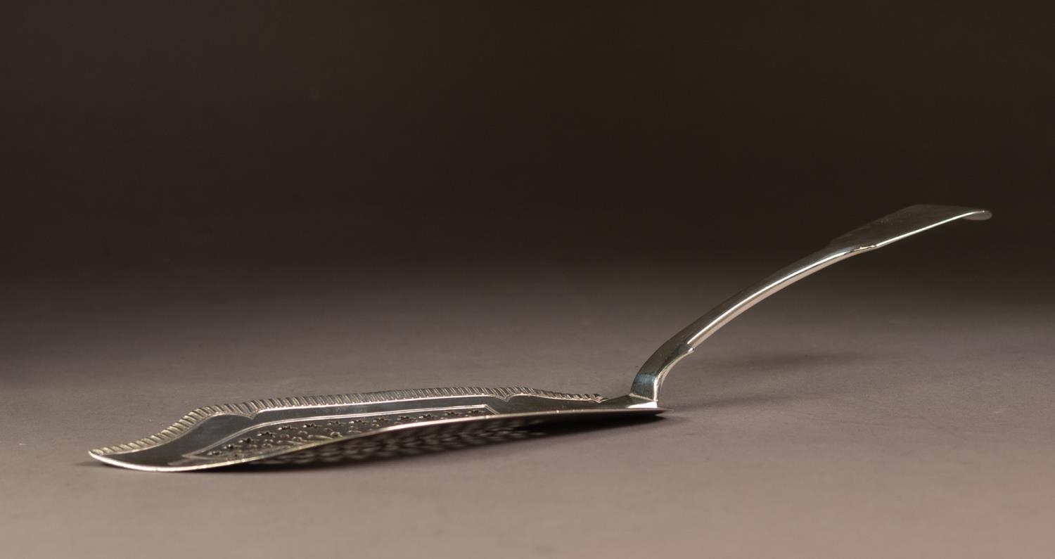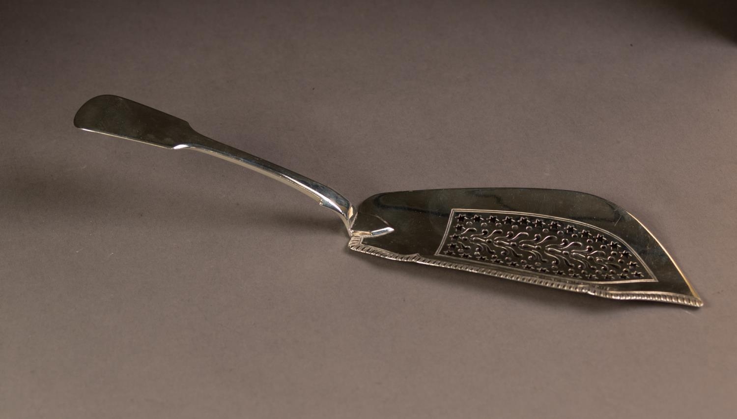 WILLIAM IV FIDDLE PATTERN SILVER FISH SLICE BY JONATHAN HAYNE, with pierced centre and nulled edge to the blade, 11 ½” (29.2cm) long, London 1831, 4.9oz