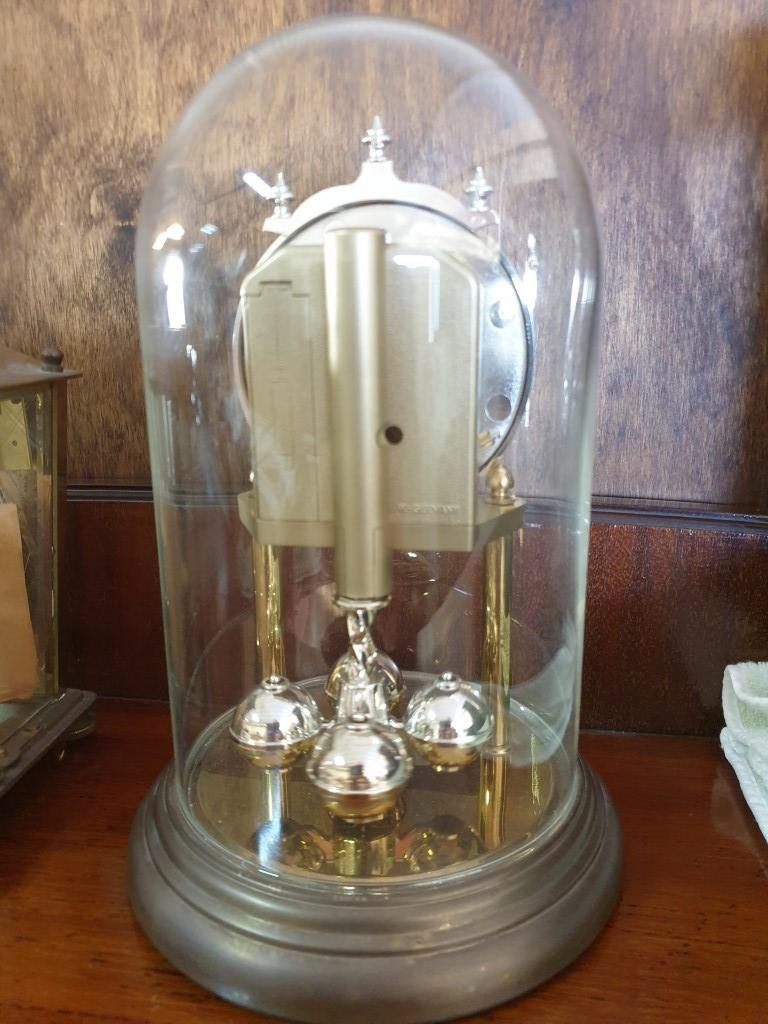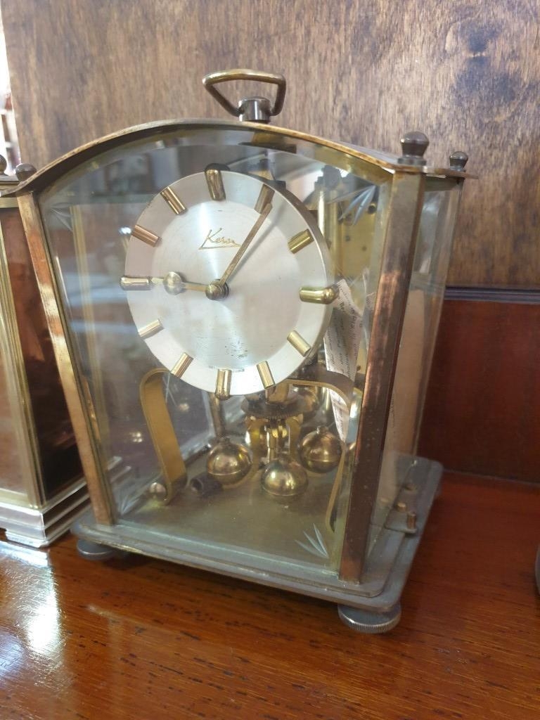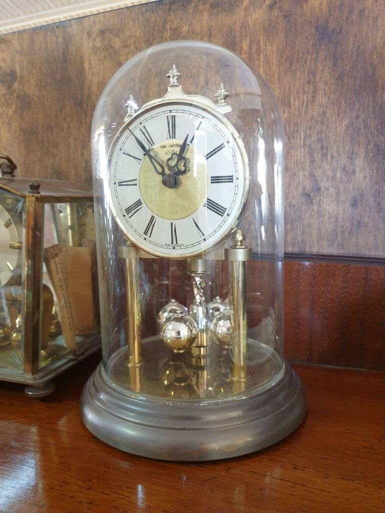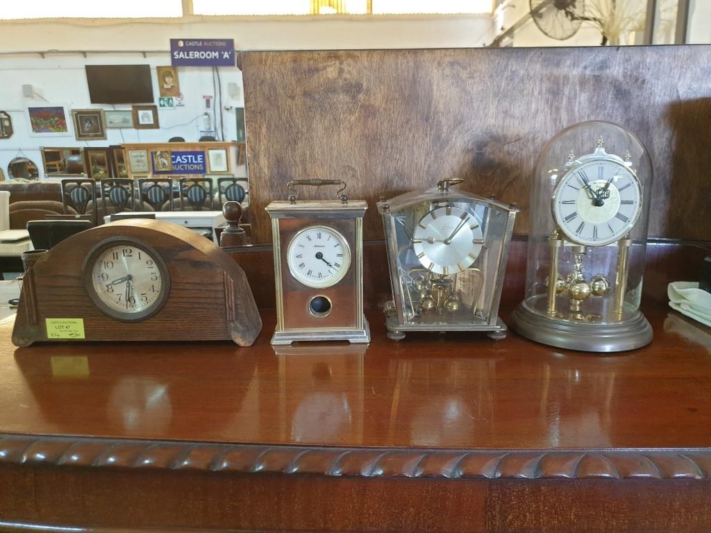 Small Collection of Clocks inc Vintage German Anniversary 4 - Ball, 3 - Glass Clock (N.B Torsion Spring Damaged) Quarts Anniversary Dome Clock, Brass Quartz Cabriole Clock and Wooden Mantle Clock, Manual Wind (All Un-tested)
