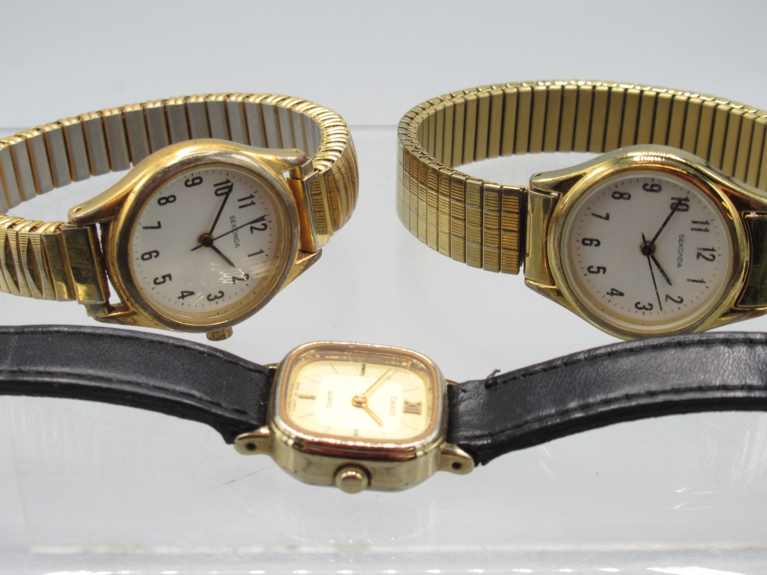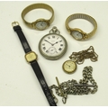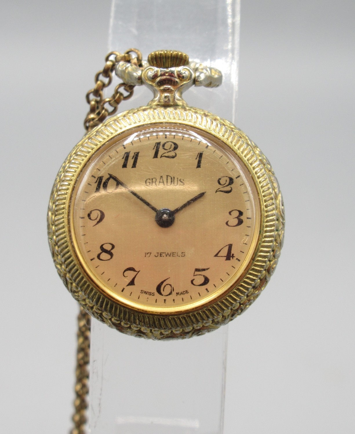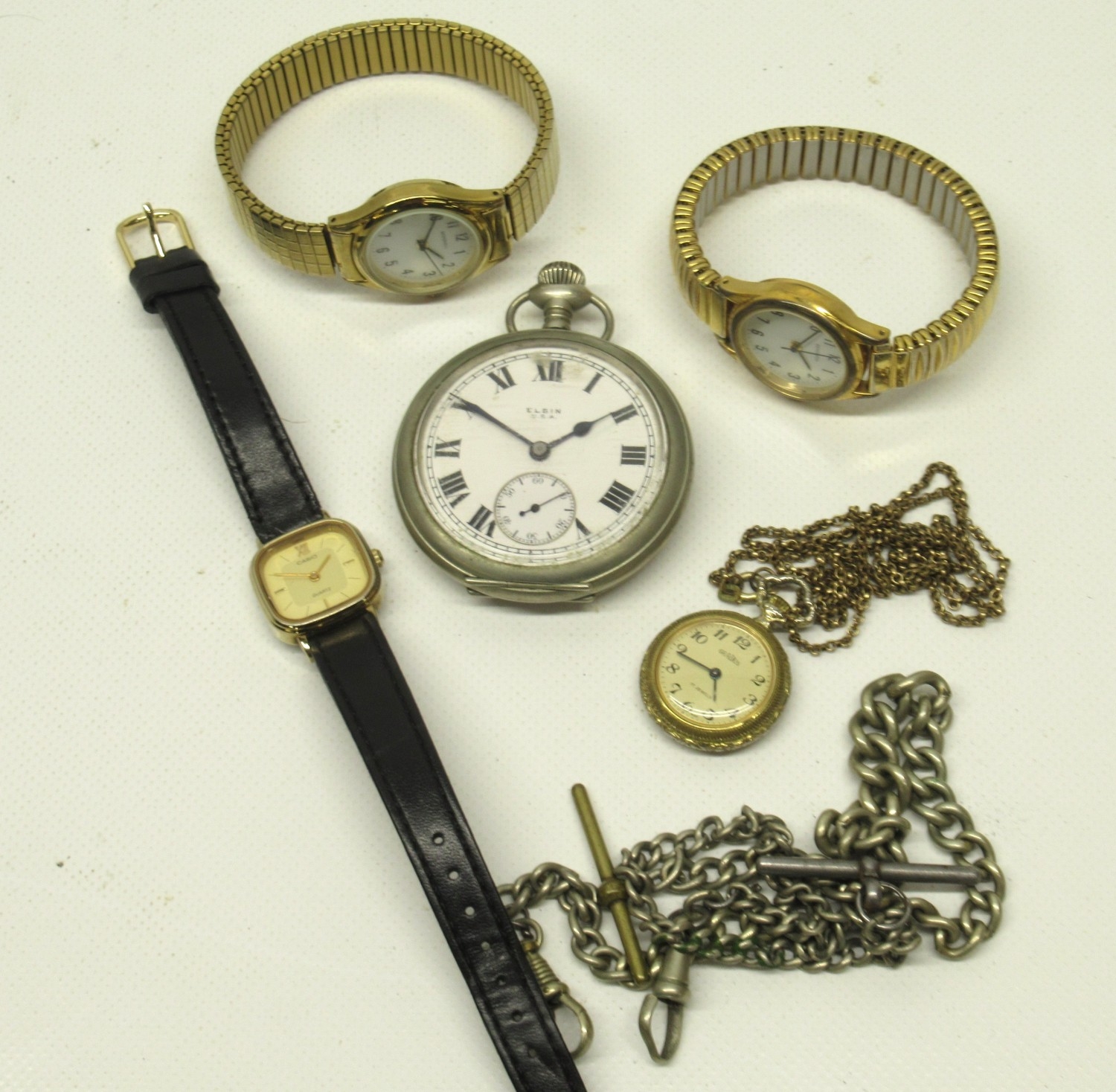 Elgin keyless pocket watch, signed white enamel Roman dial with subsidiary seconds, Philadelphia Watch Case Co. 'silverode' case, Elgin 7 jewel 3/4 plate movement, no. 19910978, D52.1mm with two nickel Alberts; Gradus gold plated keyless pendant watch on rolled gold chain, D25.2mm; ladies quartz wristwatches Sekonda and Casio