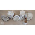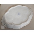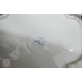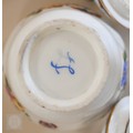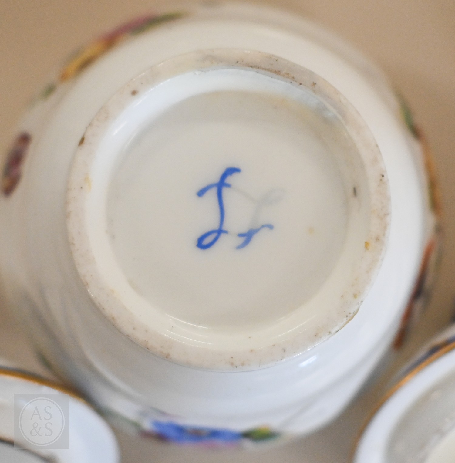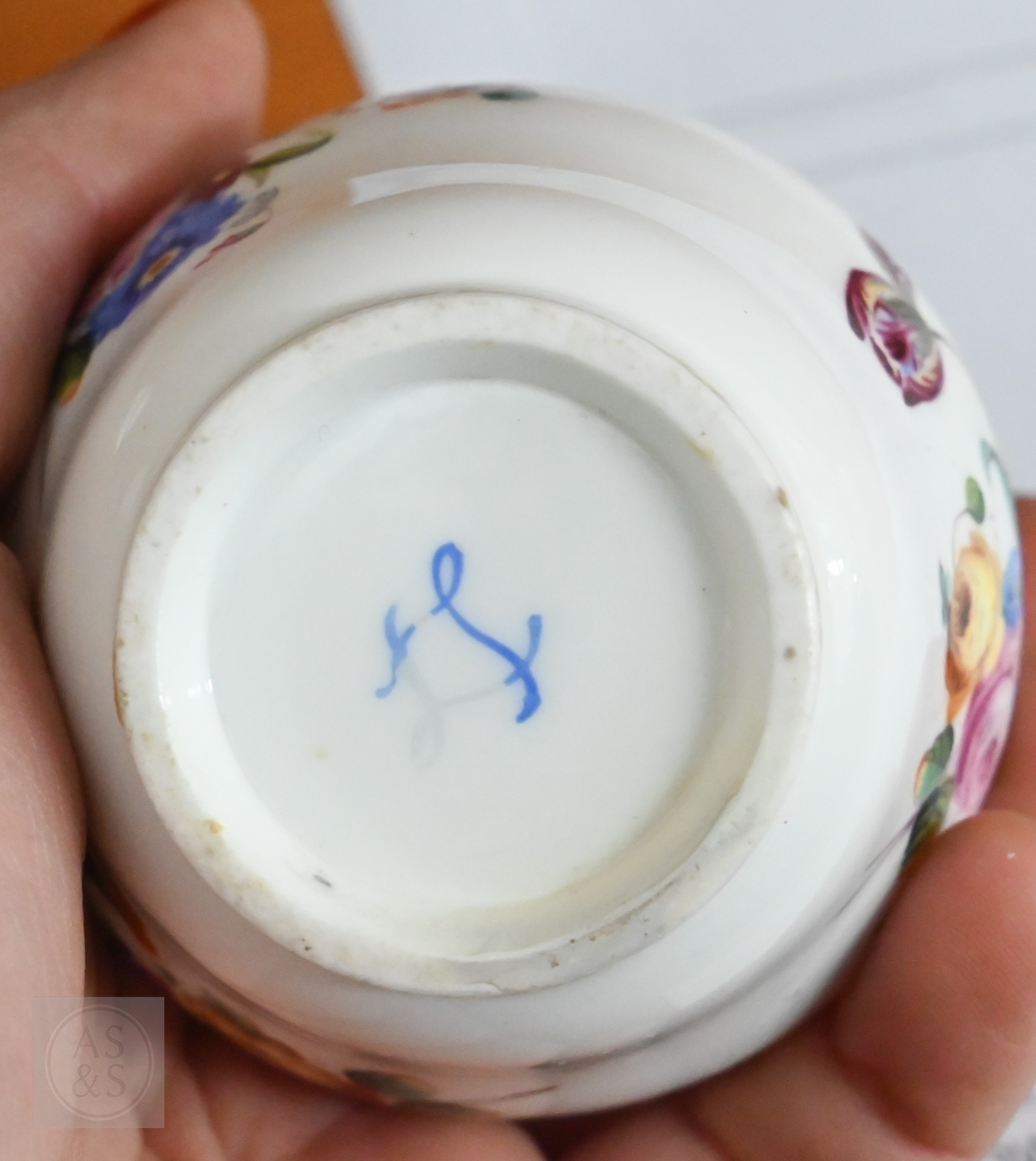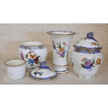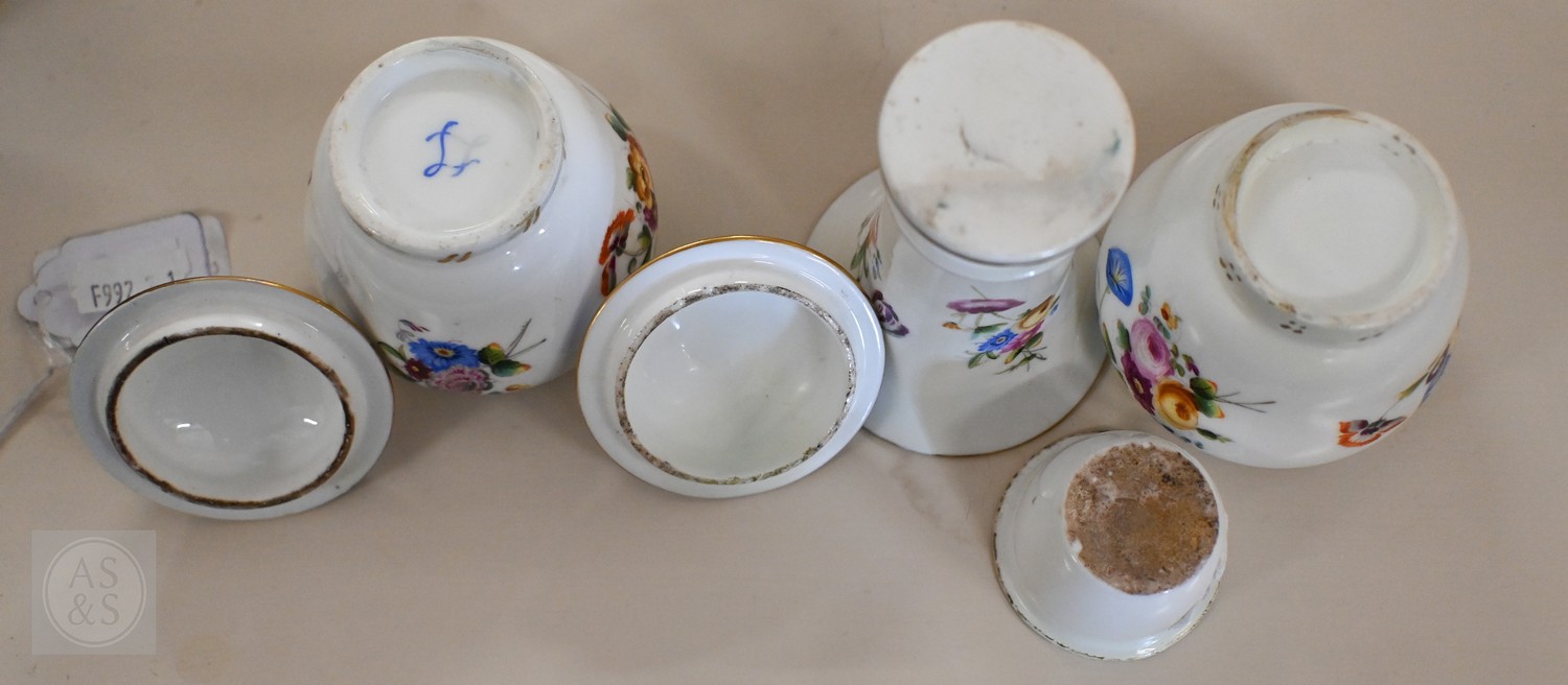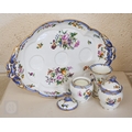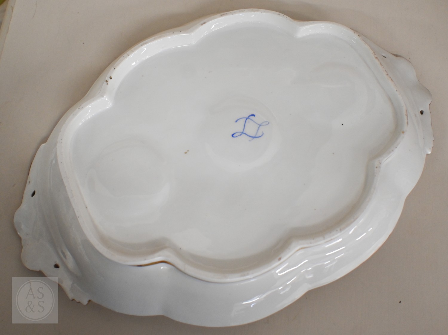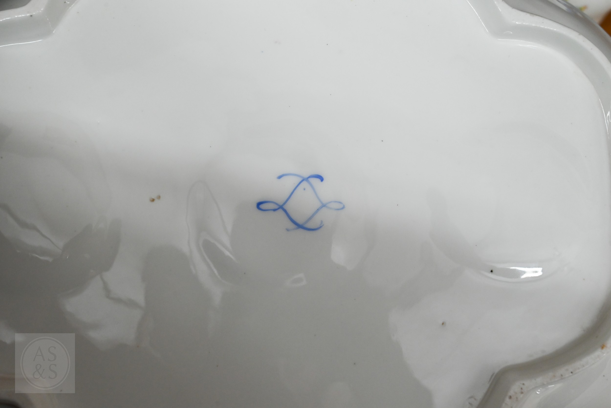 An antique Sèvres porcelain inkstand with floral-painted decoration and posy vase flanked by two inkwells and covers, 31 cm wide