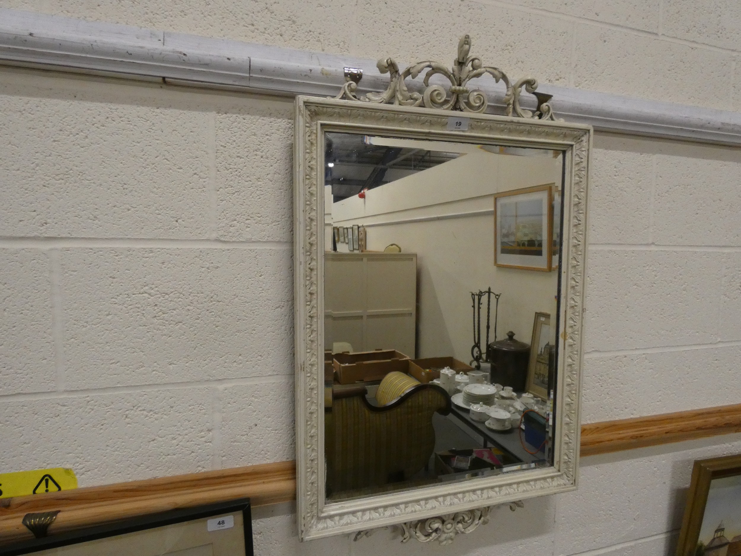 Antique mirror in white painted frame. H.87cm
