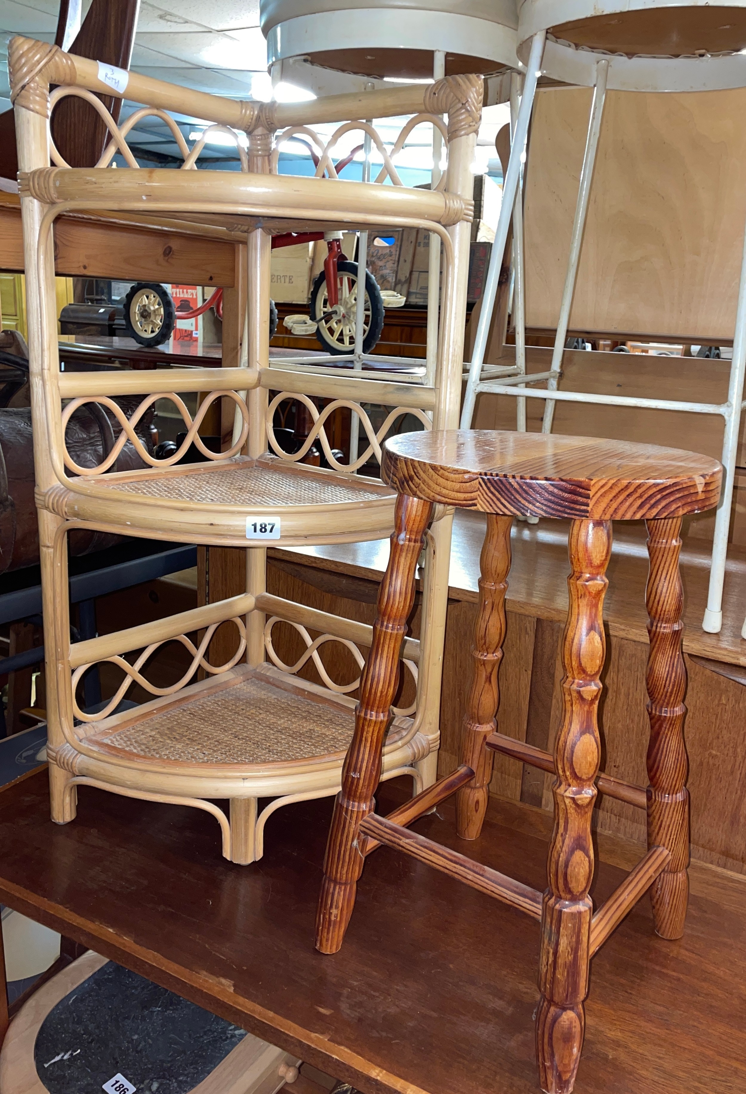 BAMBOO QUADRANT WOTNOT AND STOOL