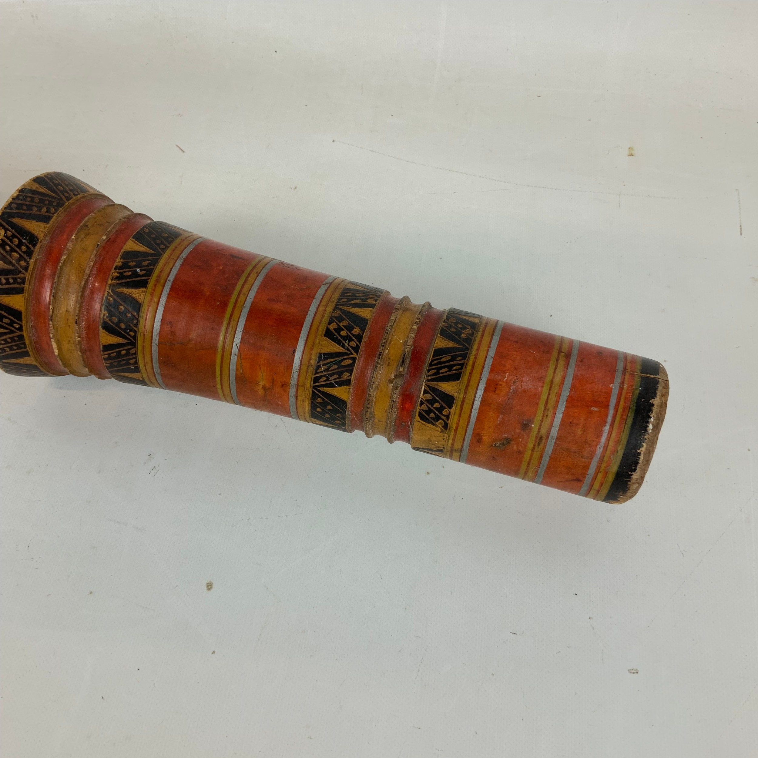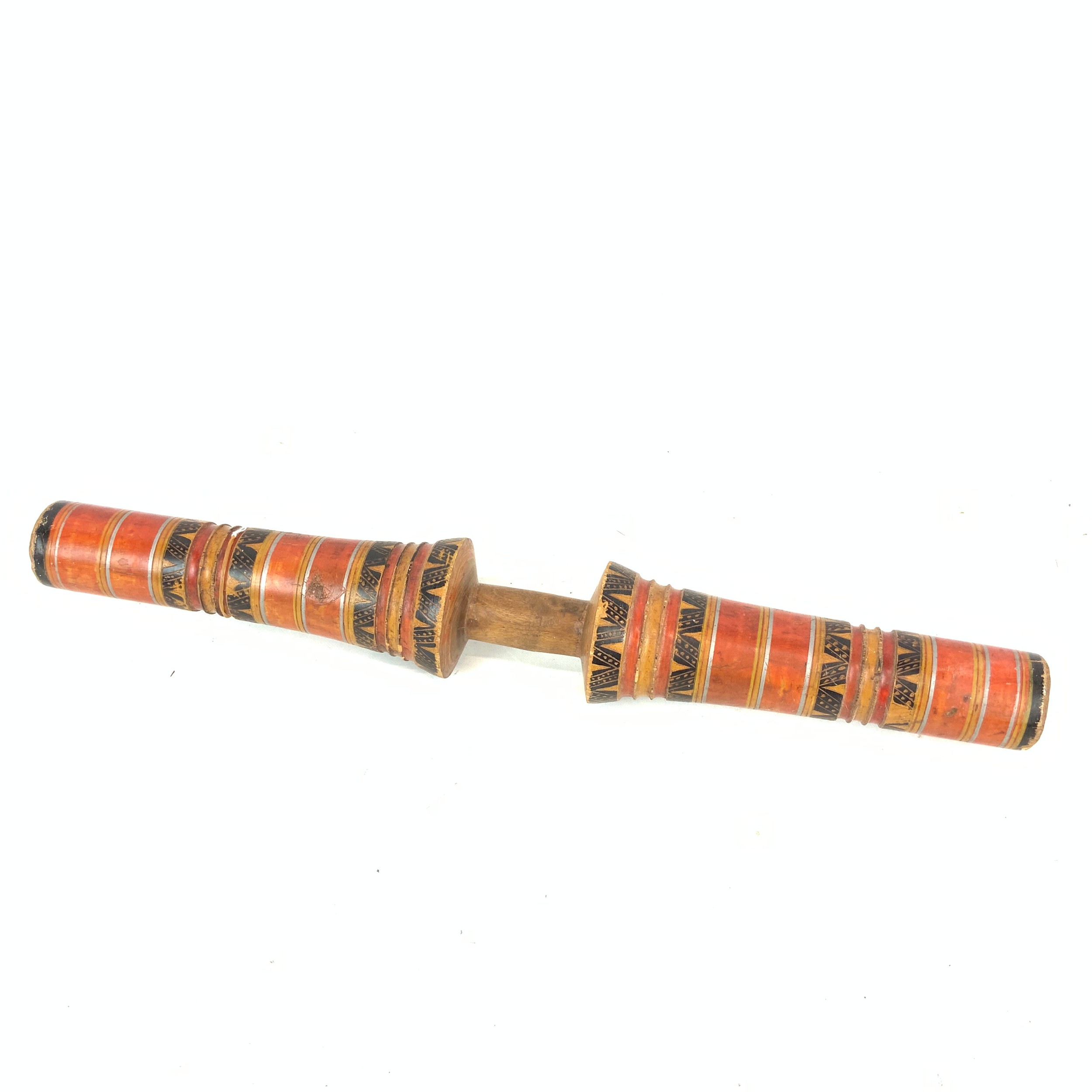Indian double-ended pestle. Ring turned and painted decoration, L 69cm.
