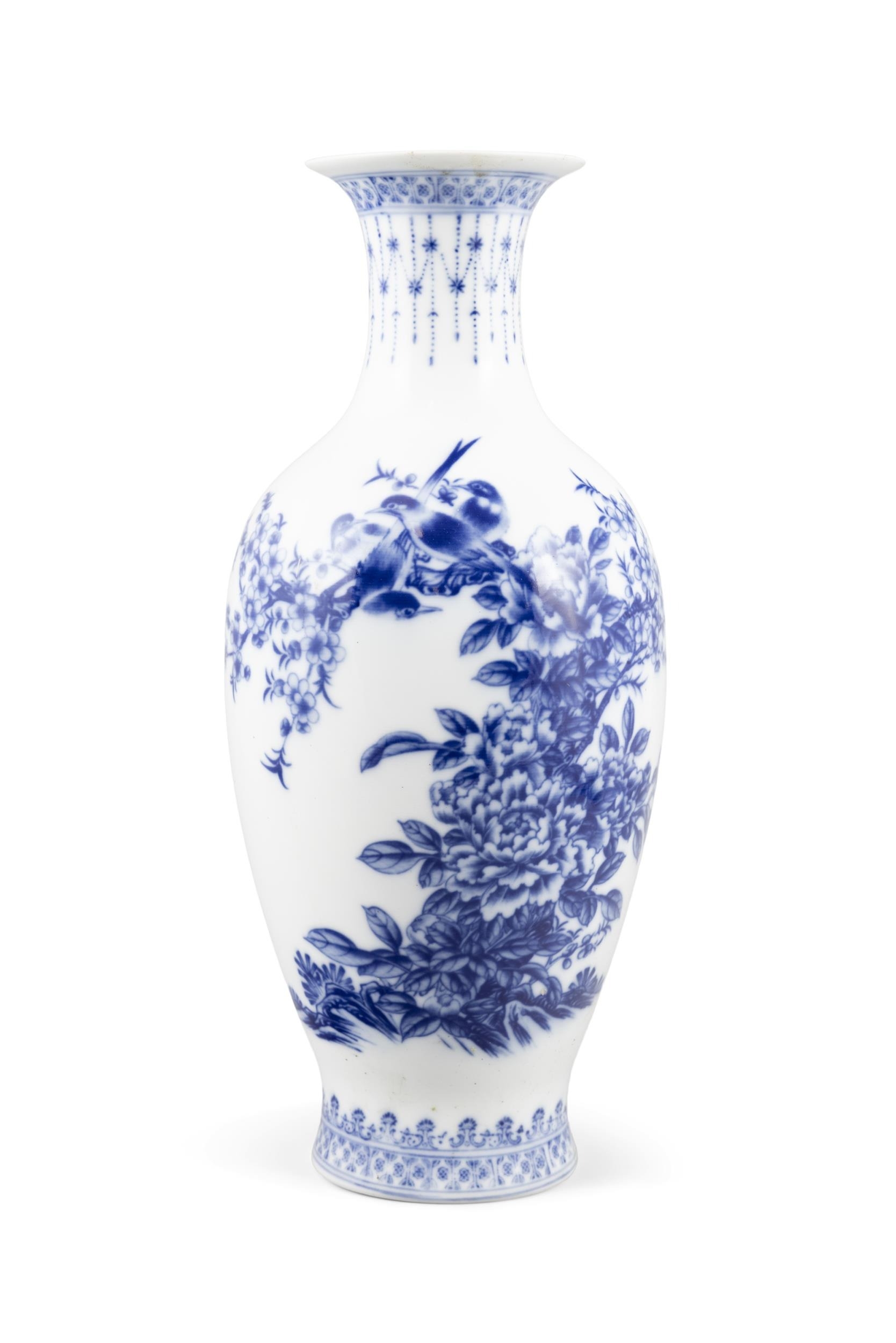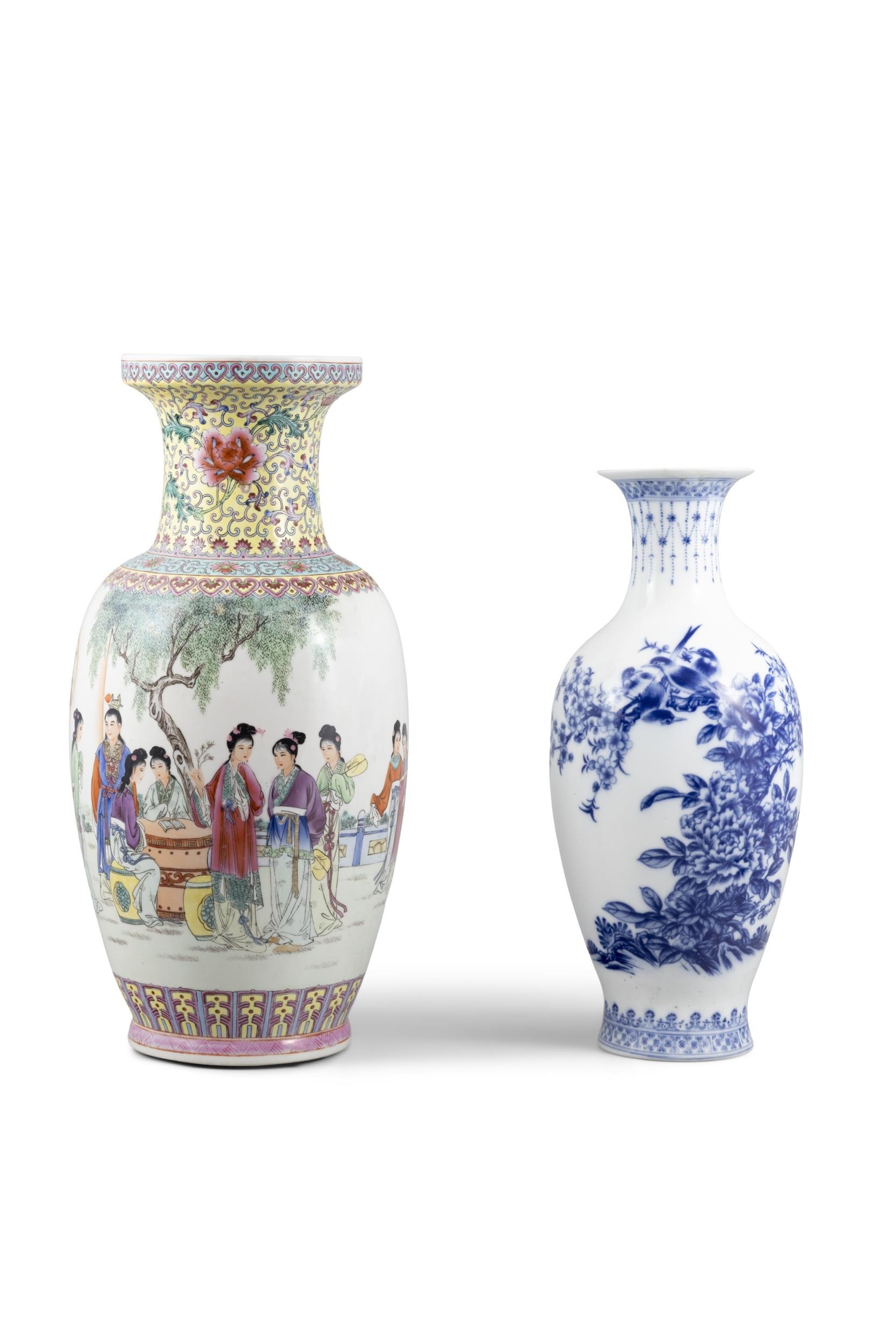 A BLUE AND WHITE VASE AND A FAMILLE ROSE STYLE VASE 20????? ???? China, second half of 20th century H: 38.2cm; 45cm