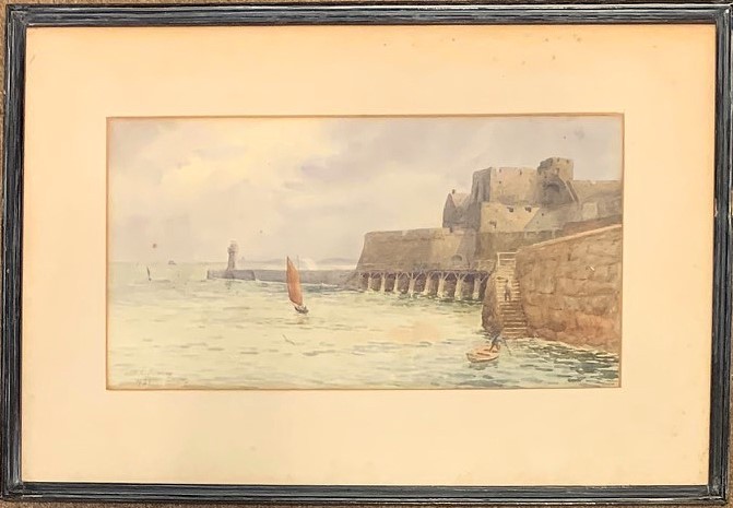 Alice E. Newling (Guernsey 20th century) Castle Cornet and the breakwater Guernsey, watercolour, signed and dated 1928, 17 x 23cm.