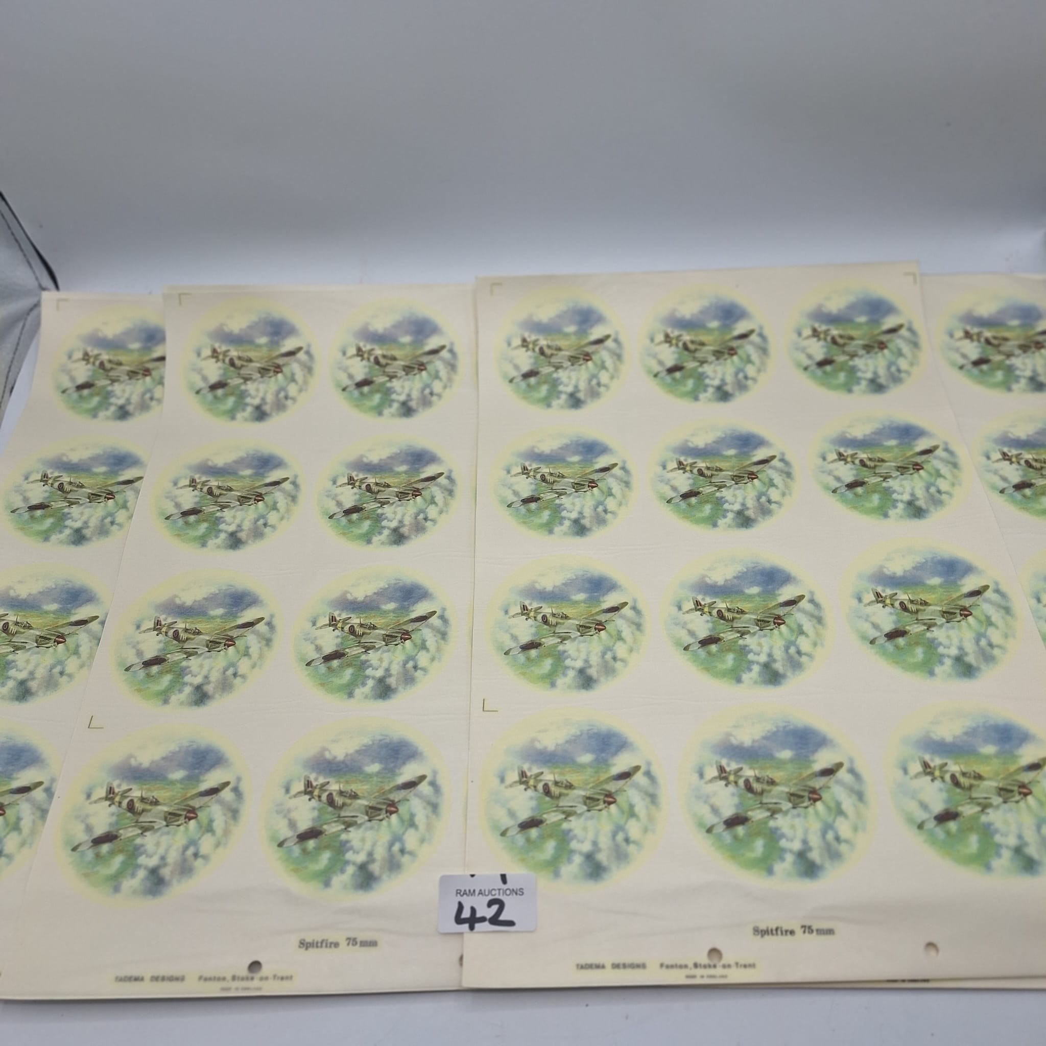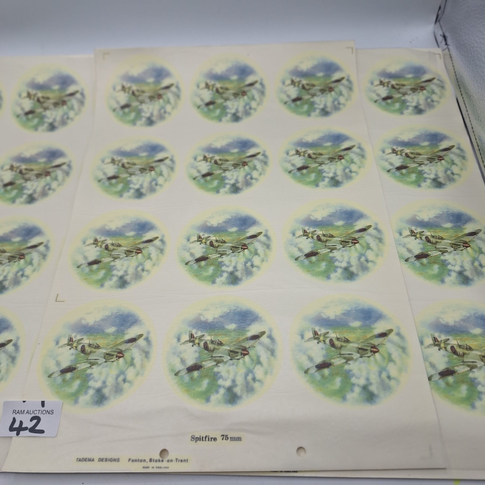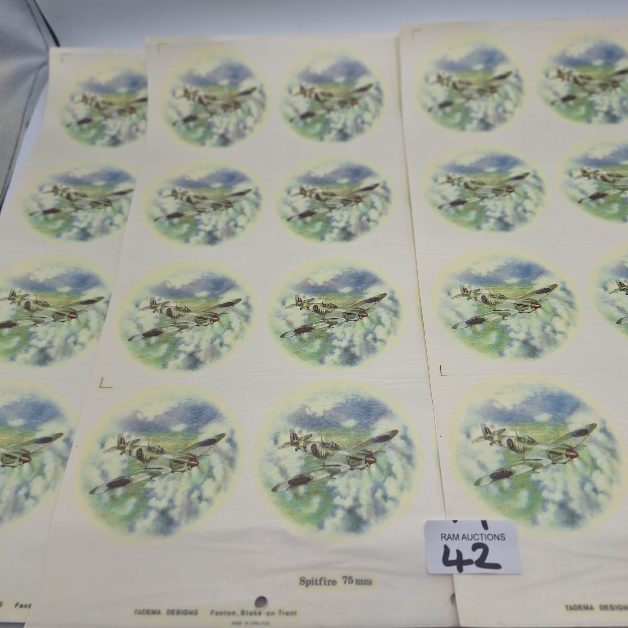 VINTAGE/RETRO CERAMIC TRANSFERS OF SUPERMARINE SPITFIRE 75MM X 48