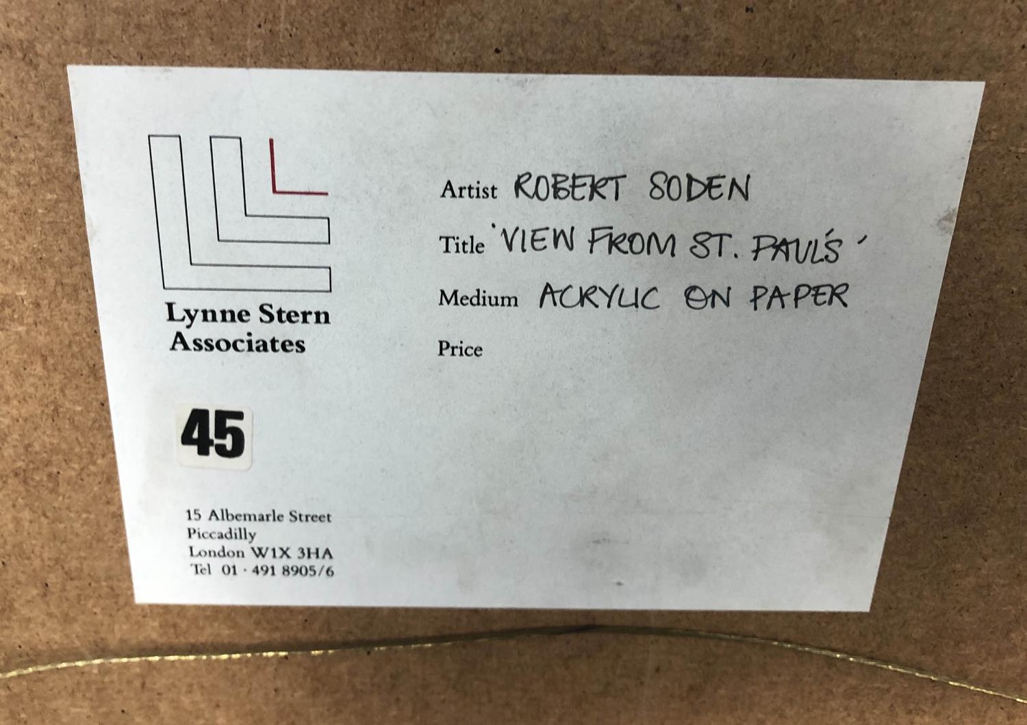 ROBERT SODEN (b.1955 Tauton) 'View from St Pauls', acrylic on paper, 68cm x 98cm, label verso, framed.