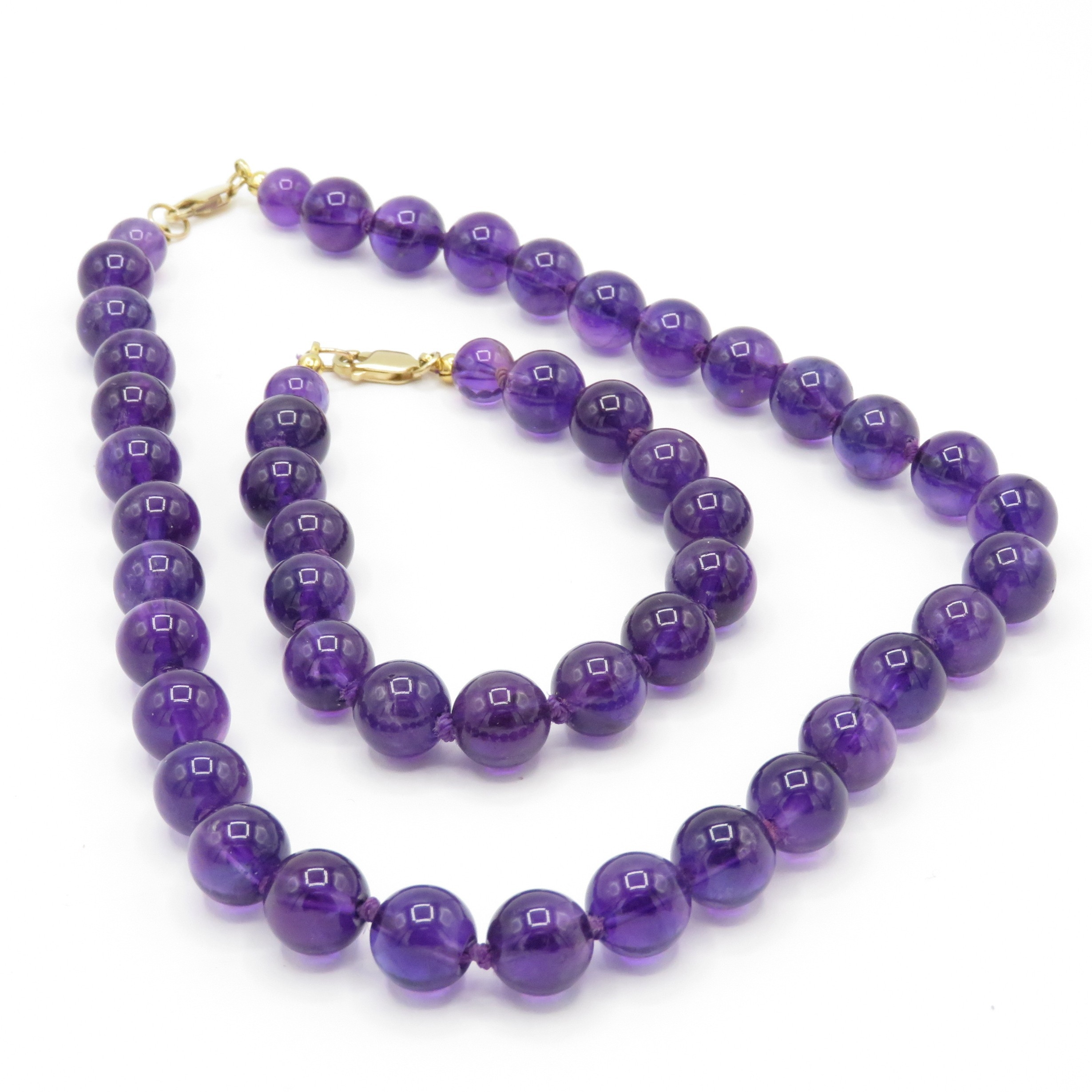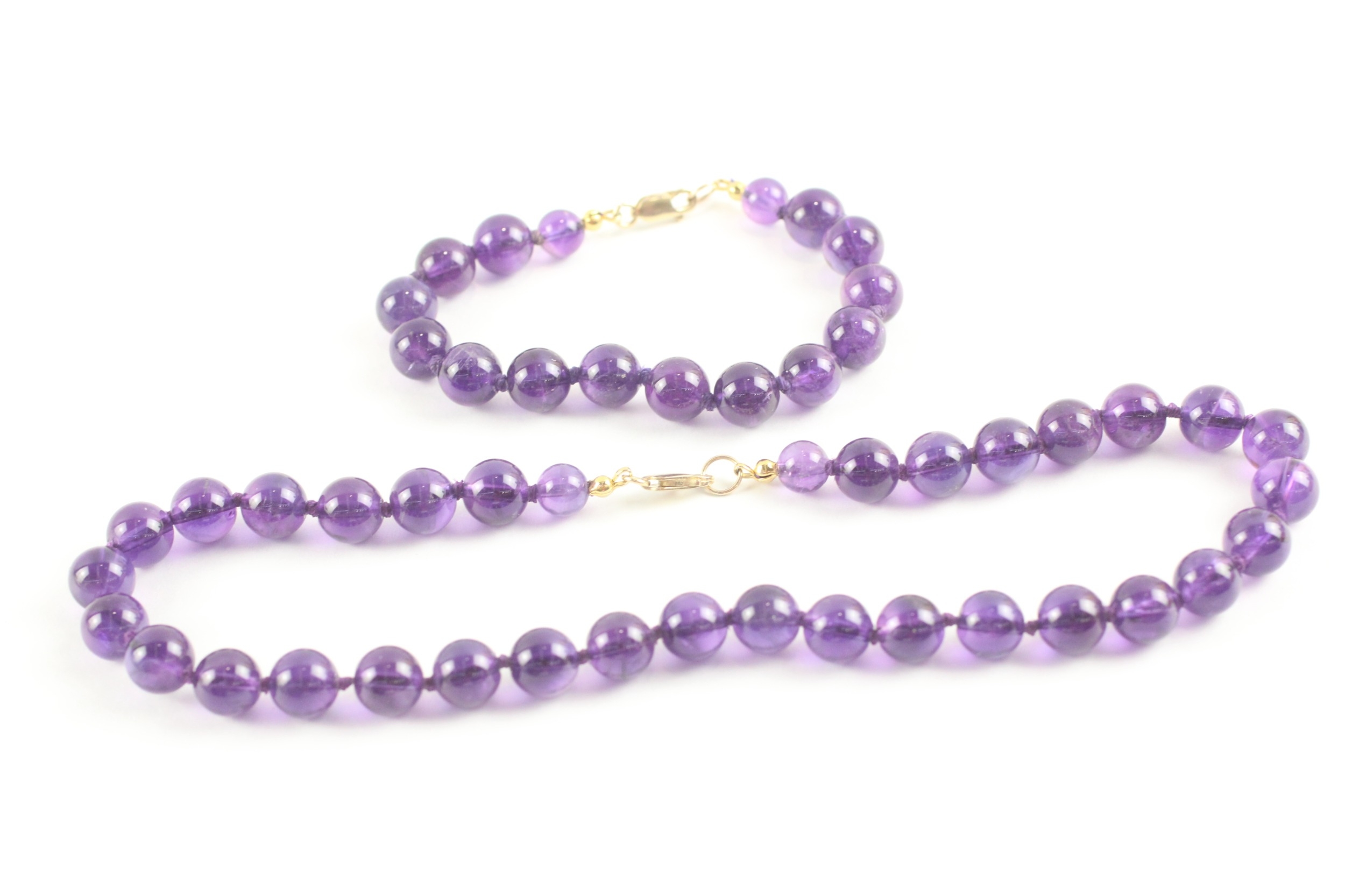 14ct gold clasp amethyst beads necklace and bracelet (70.3g)
