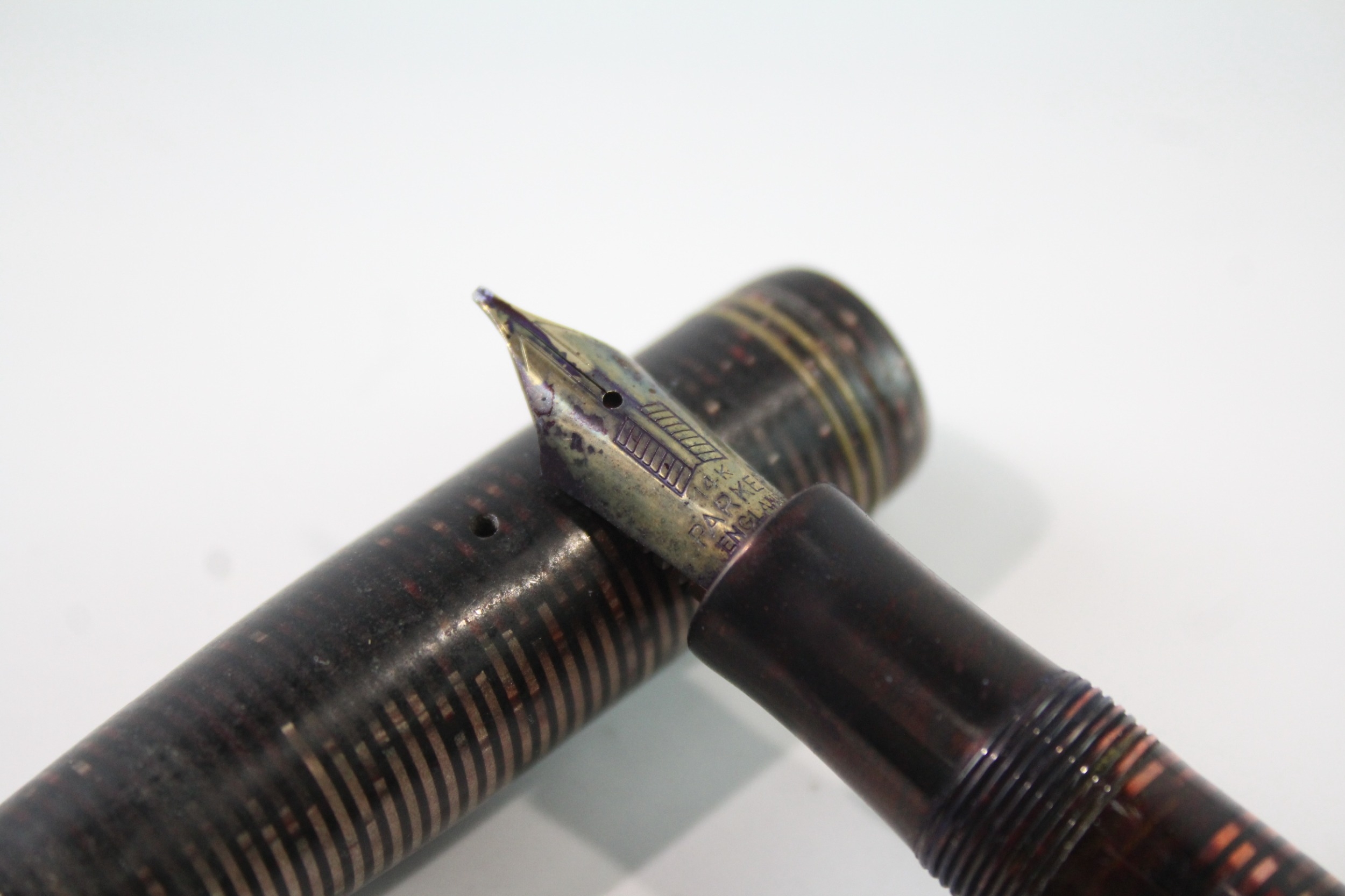 Vintage Parker Vaccumatic Brown Fountain Pen w/ 14ct Gold Nib WRITING