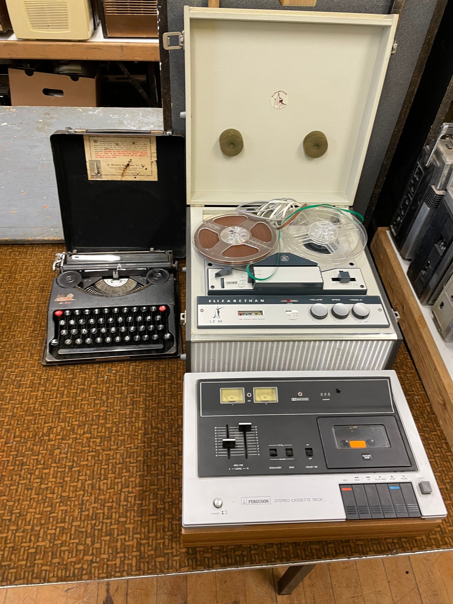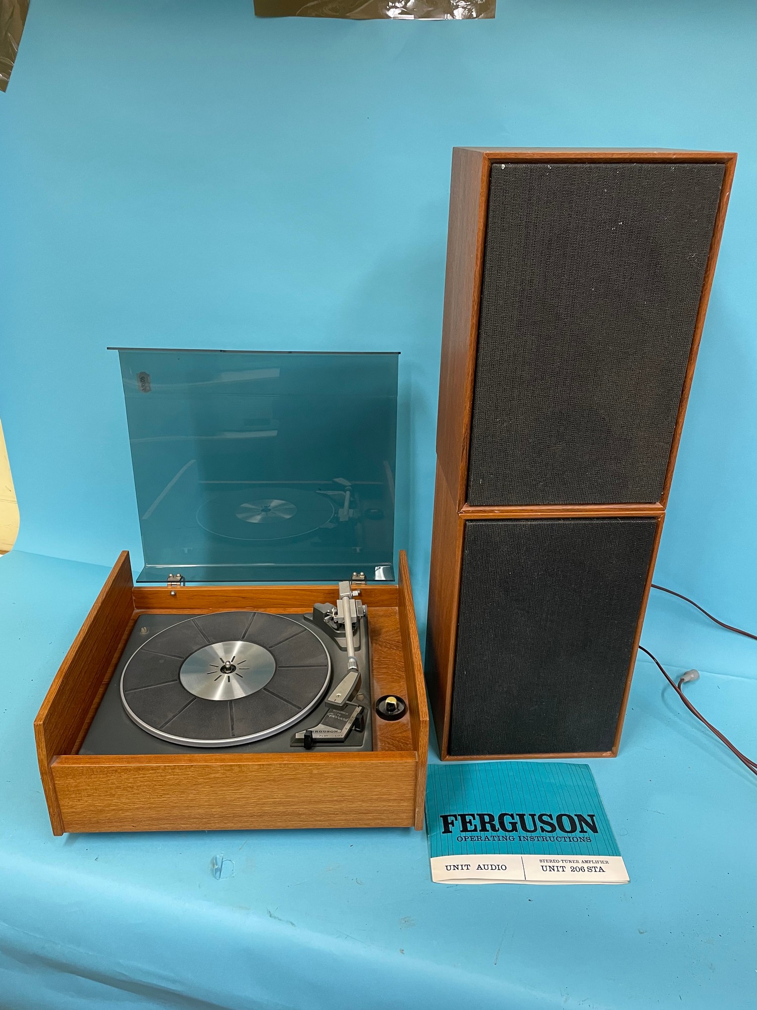 A Ferguson 206STA record player and speakers, and various audio equipment (qty)