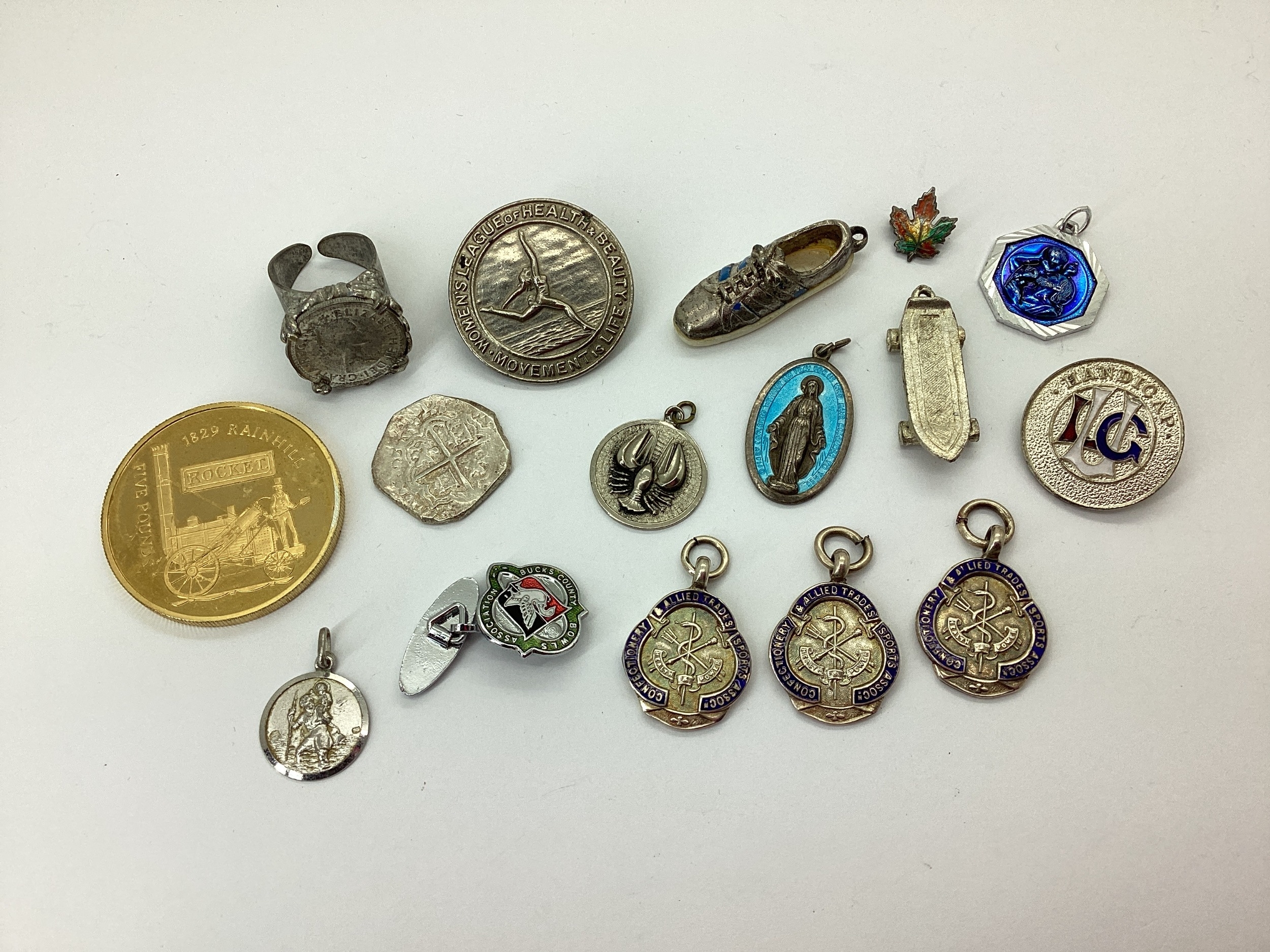 2006 Alderney Gilt £5 Coin, medallion pendants, St Christopher etc. [379201]