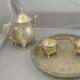 Silver Plated Coffee & Tea Set inc. coffee pot, tea pot, covered sugar, milk & circular galleried tray