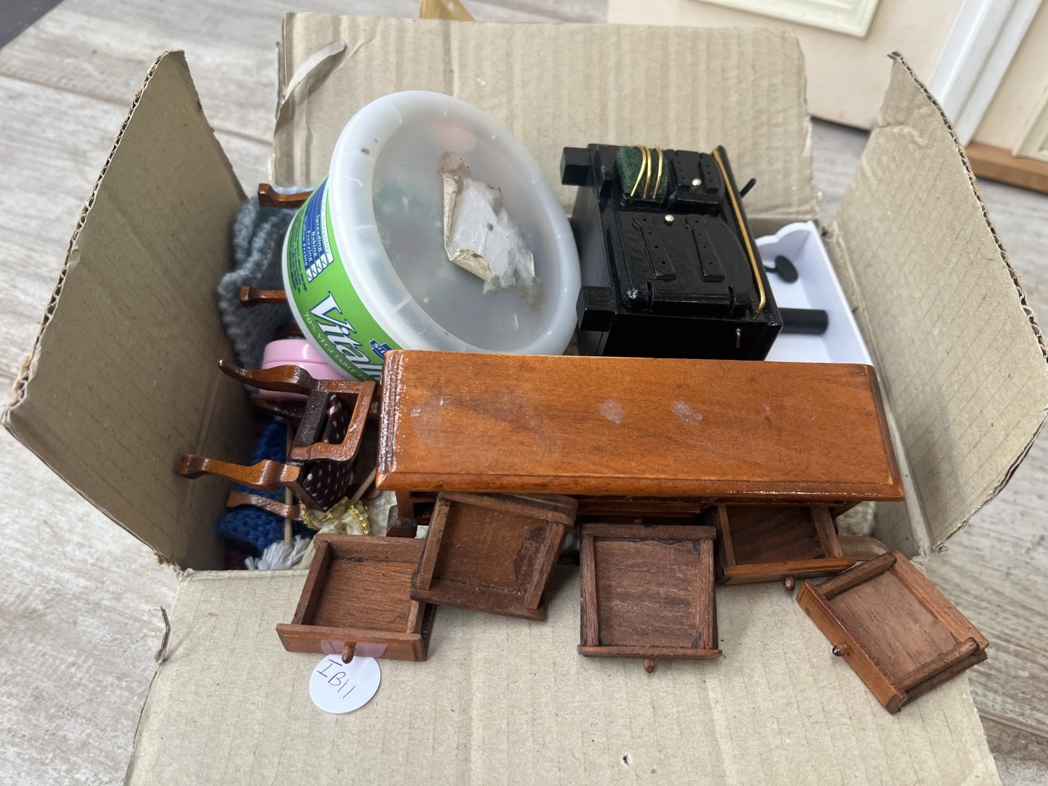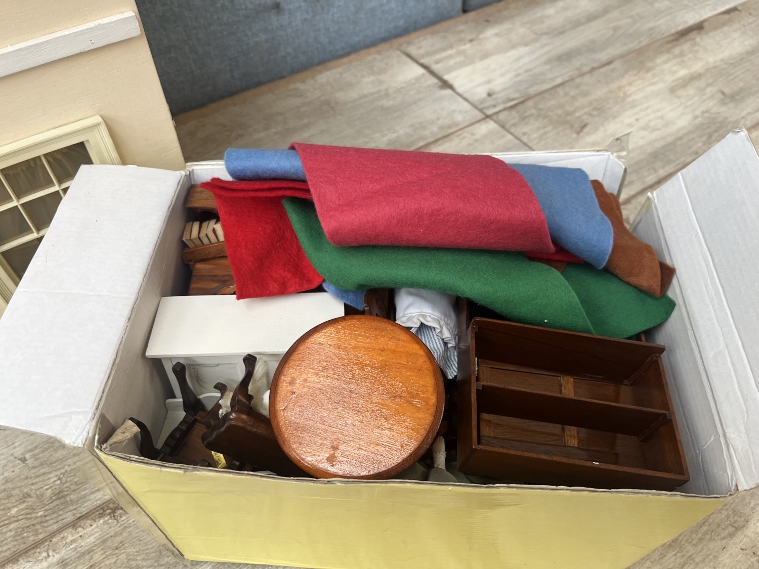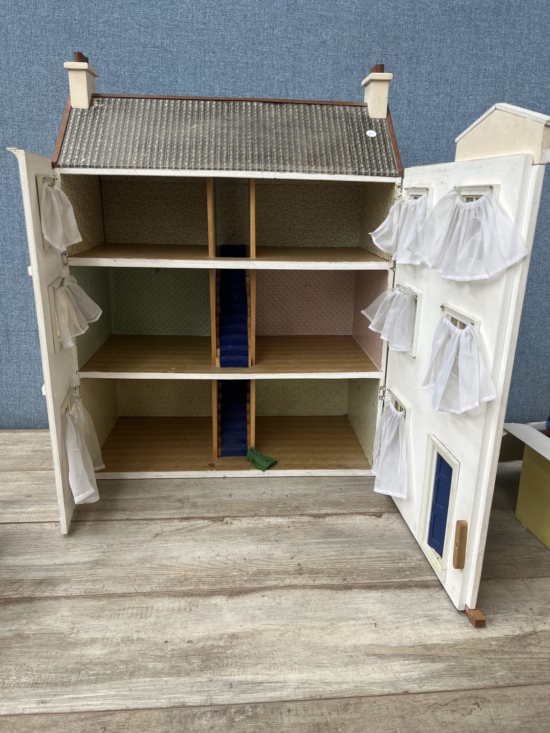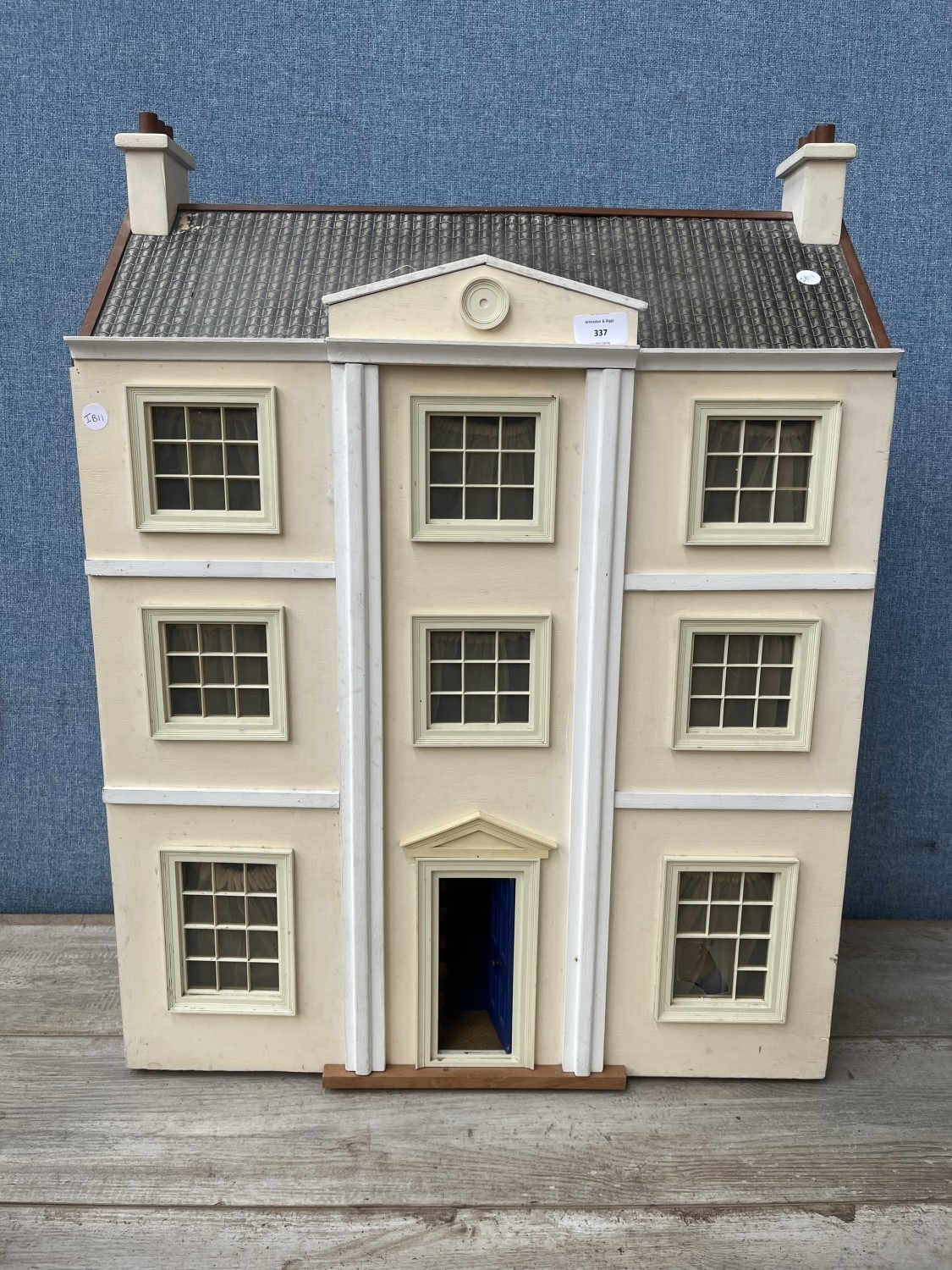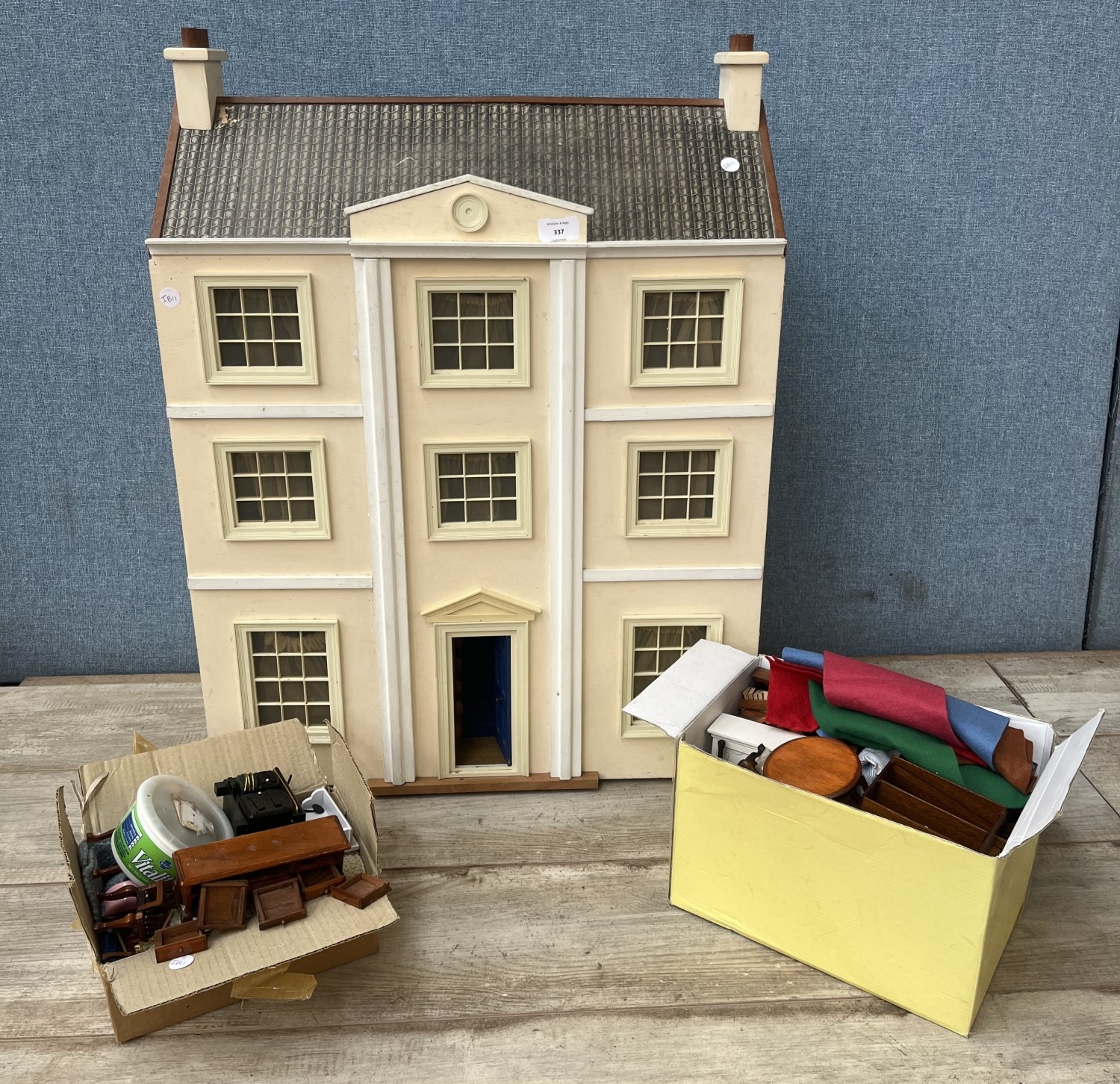 A Georgian style wooden doll's house with accessories - approx. 80cm high x 60cm wide x 32cm deep
