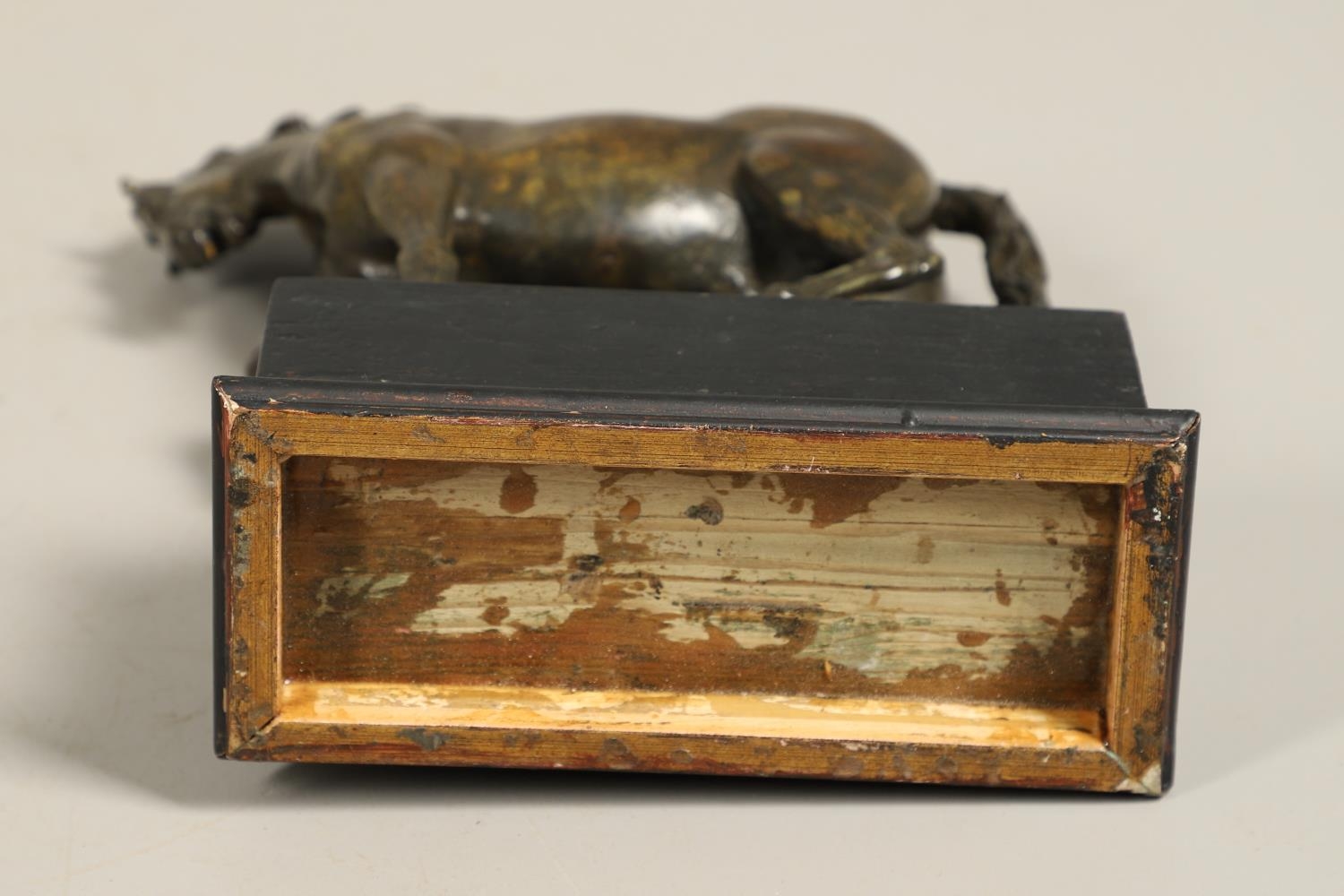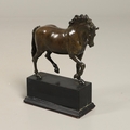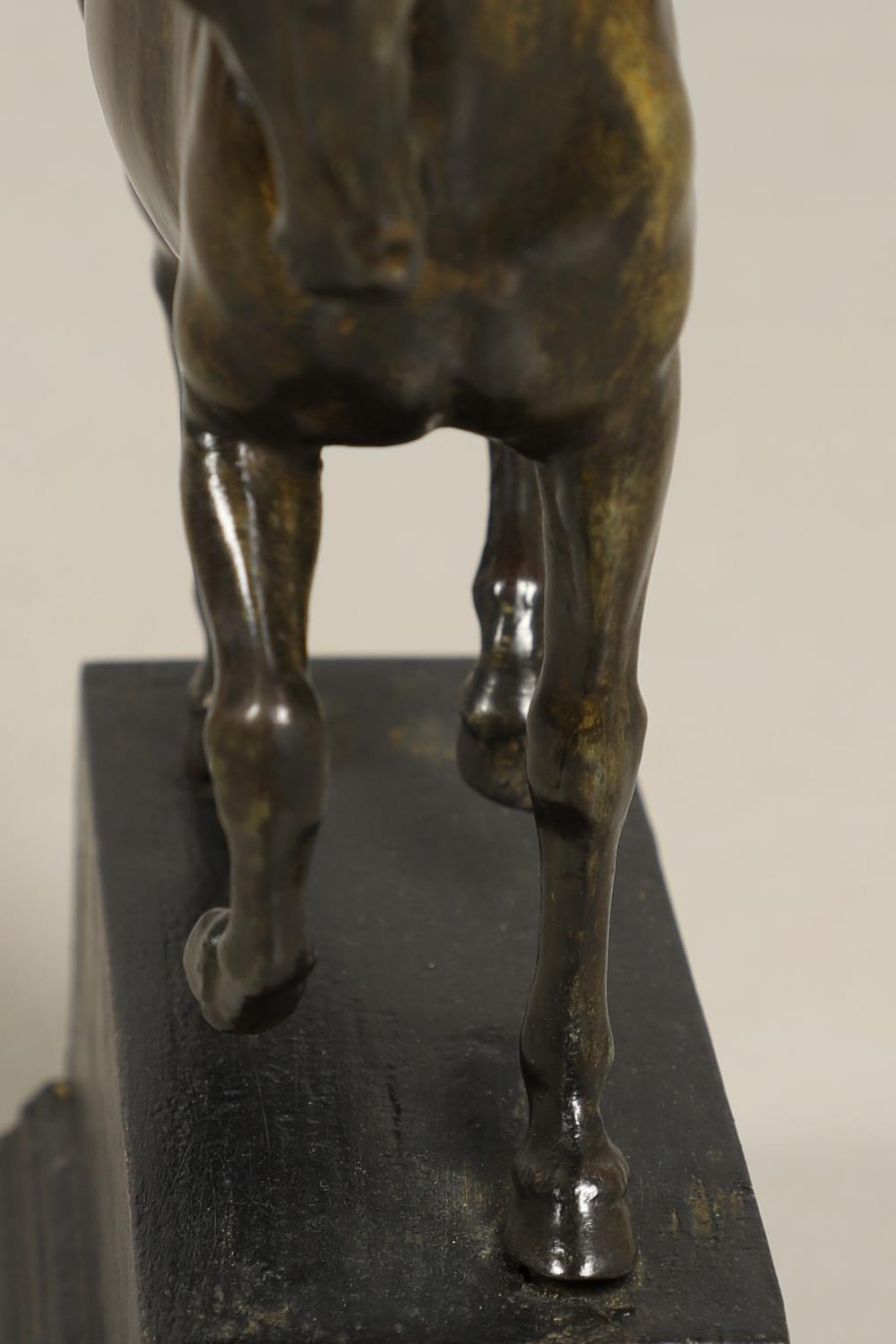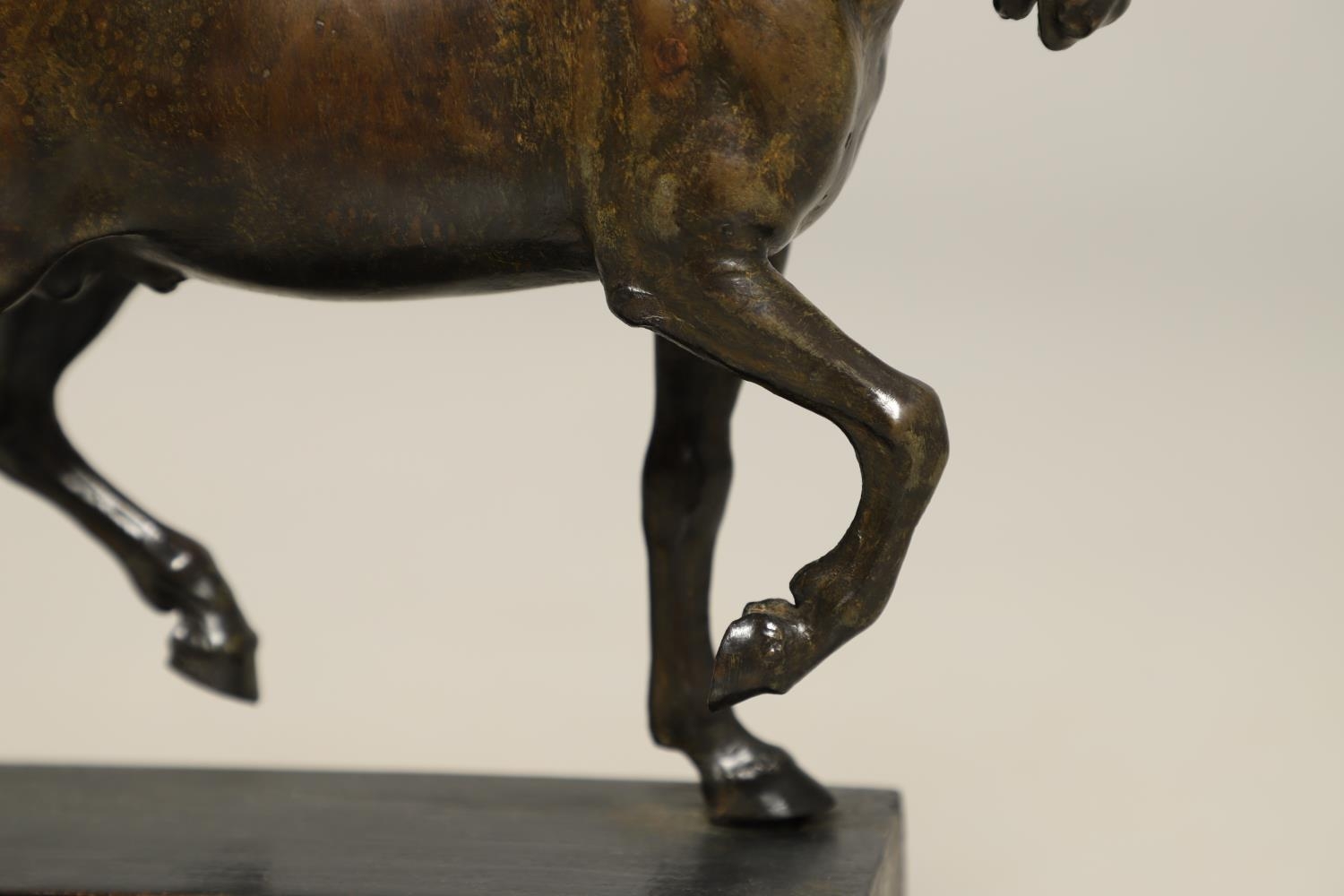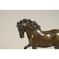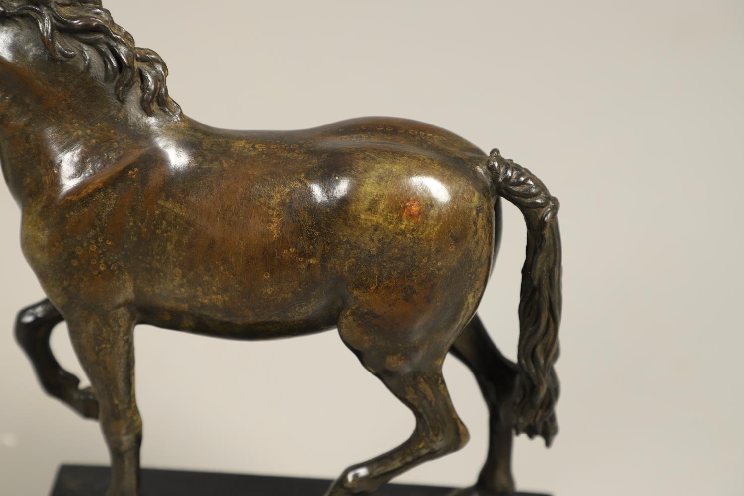 AFTER GIAMBOLOGNA (1529-1608), BRONZE OF A PACING HORSE. early 20th century, light brown patina, upon a later wooden plinth, overall height 33cm, overall width 26cm.