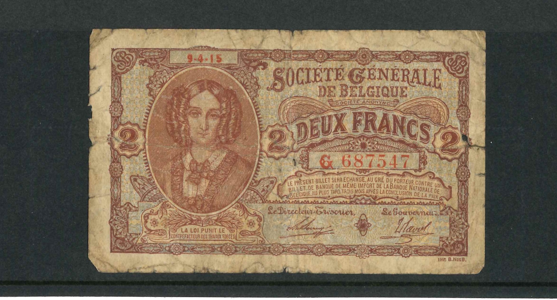 Banknotes; Belgium; 1915 2f about VG, Krause 87....