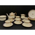 A Diamond tea service for six comprised of, a tea pot, milk jug, sugar bowl, six tea cups and saucers, side plates.