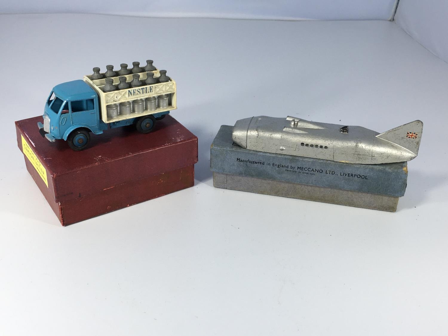 A Dinky Toys Nestle Caminon Laitier boxed with jugs.#25 o, and a Meccano boxed Thunderbolt.# a2247
