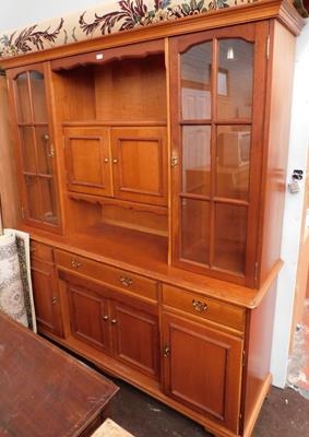 Large glass topped display wall cabinet approx 65x73" tall