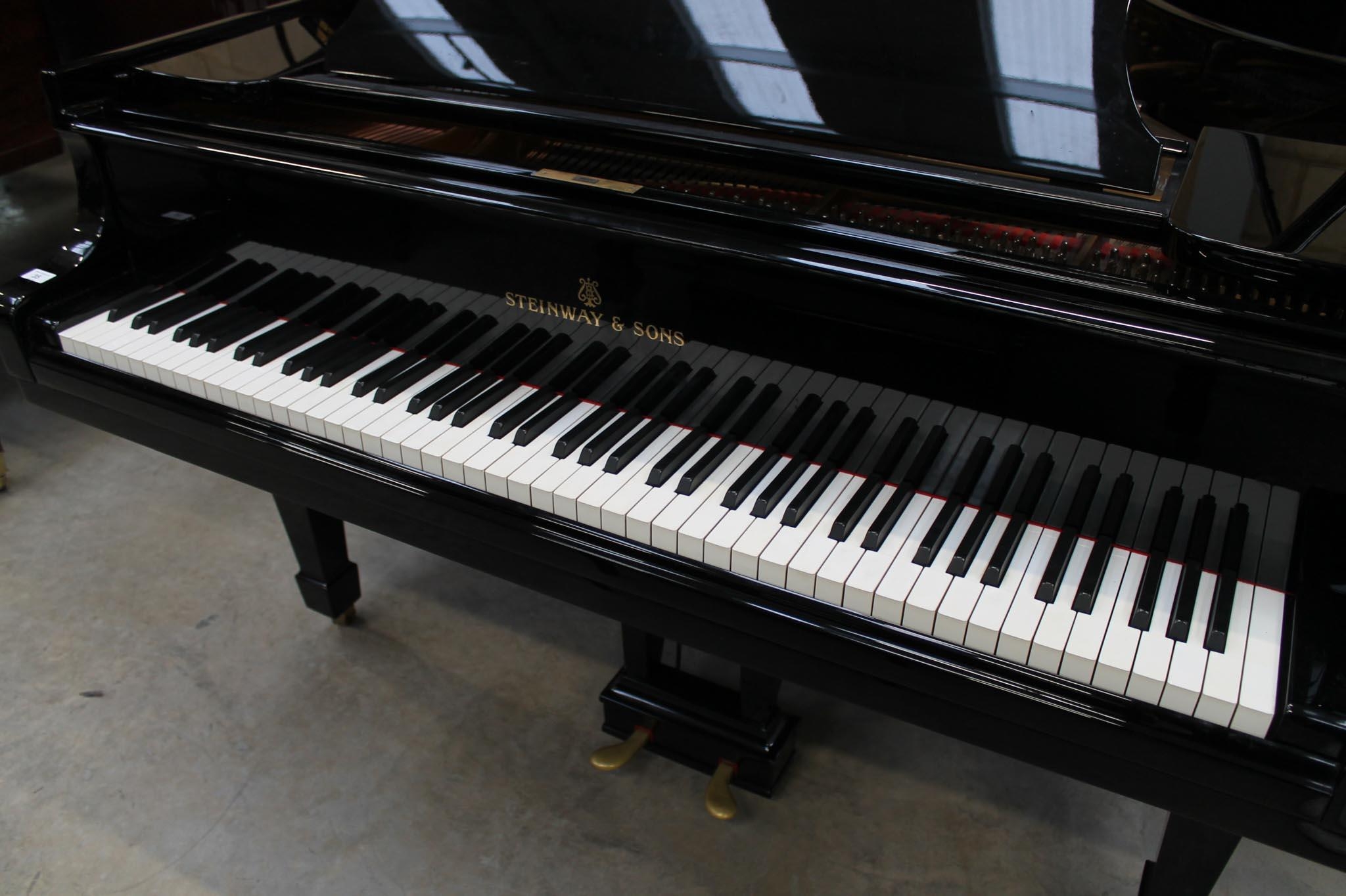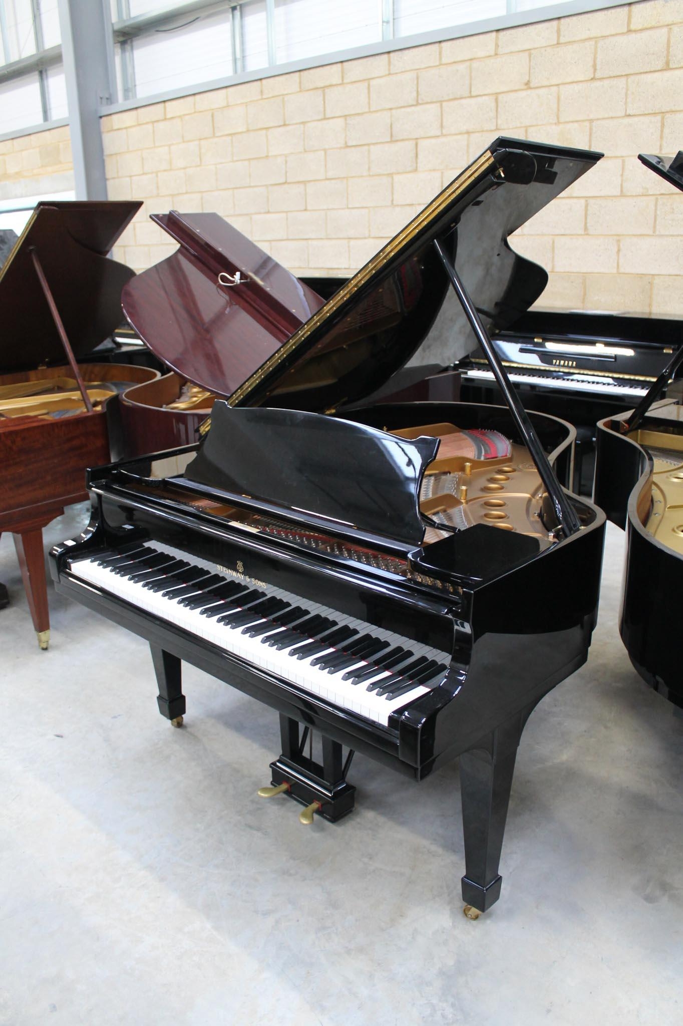A 5ft 7in Model M grand piano in a bright ebonised case on square tapered legs; together with a stool. This piano has recently been fully restored and reconditioned.