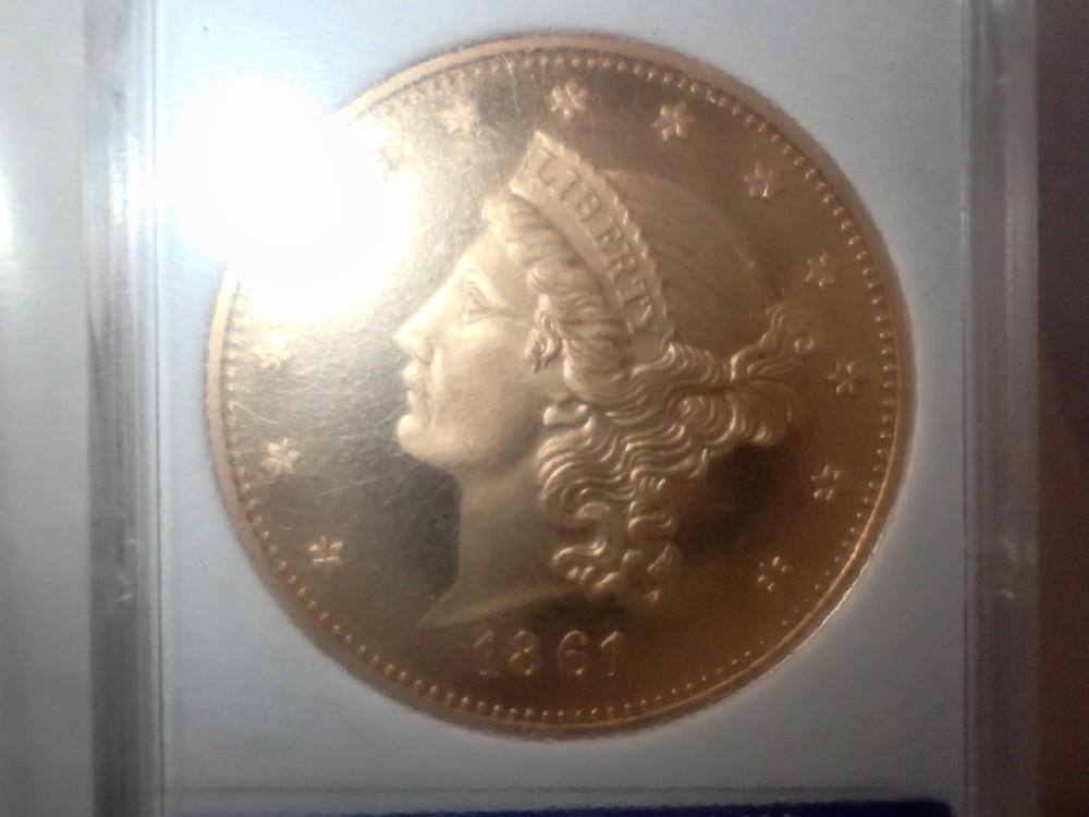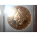 Slabbed restrike of American 1861 double eagle . UK P&P Group 1 (£16+VAT for the first lot and £2+VAT for subsequent lots)