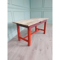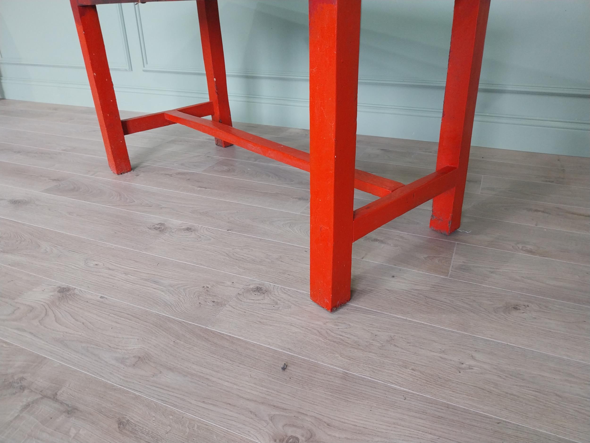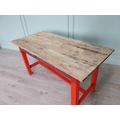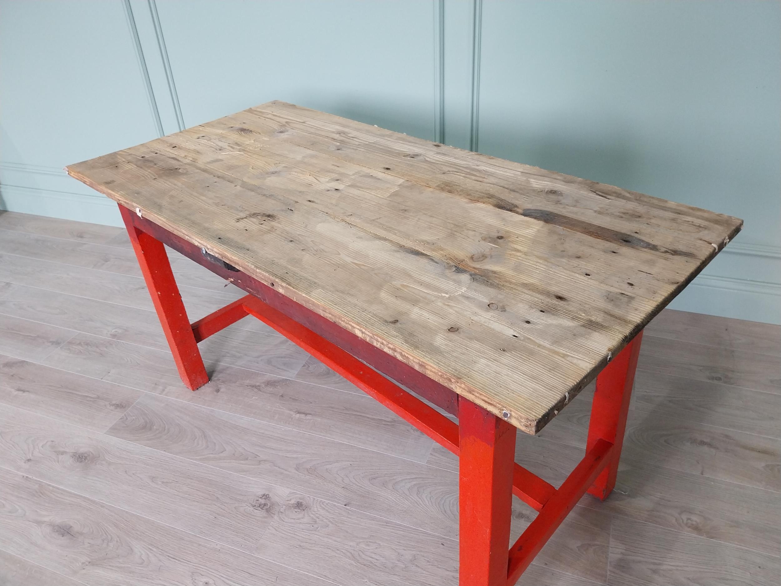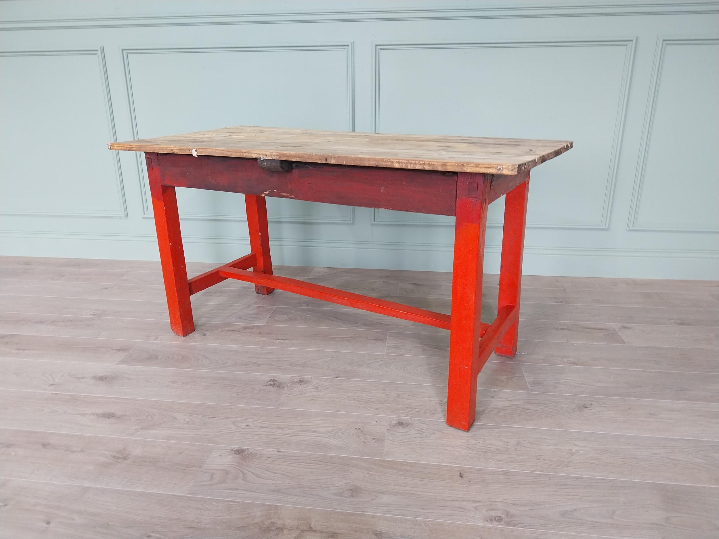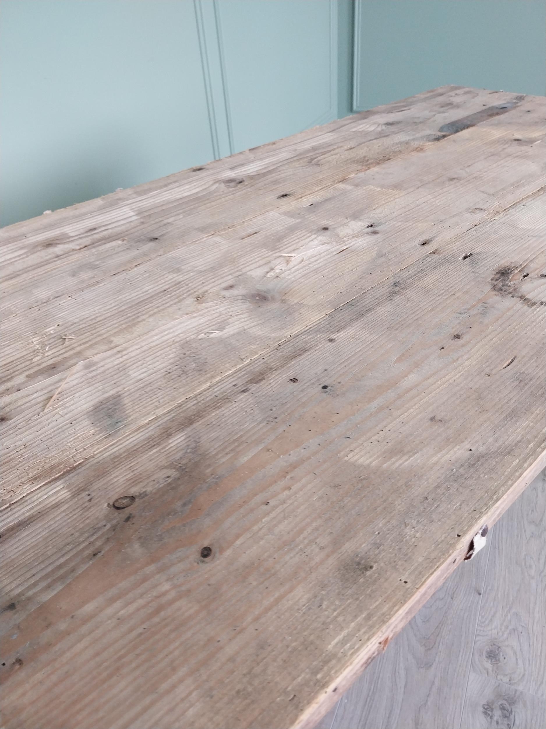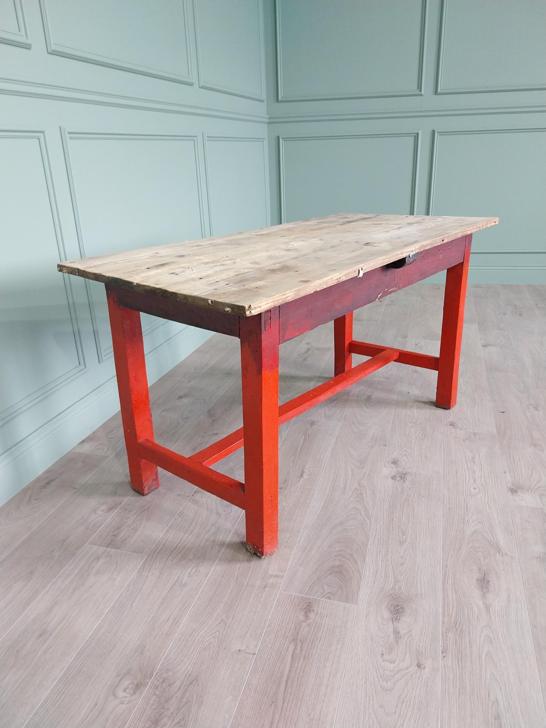 19th C. Irish painted pine kitchen table with scrub pine top {74 cm H x 137 cm W x 66 cm D}.