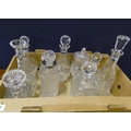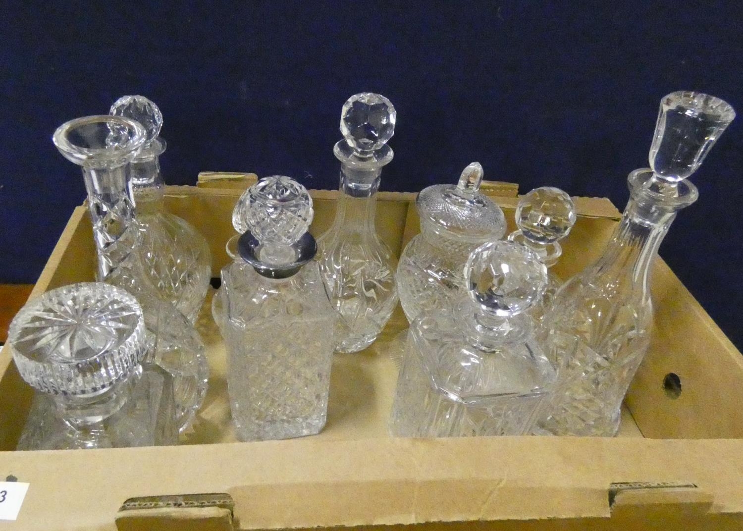 Collection of cut glass decanters, etc.