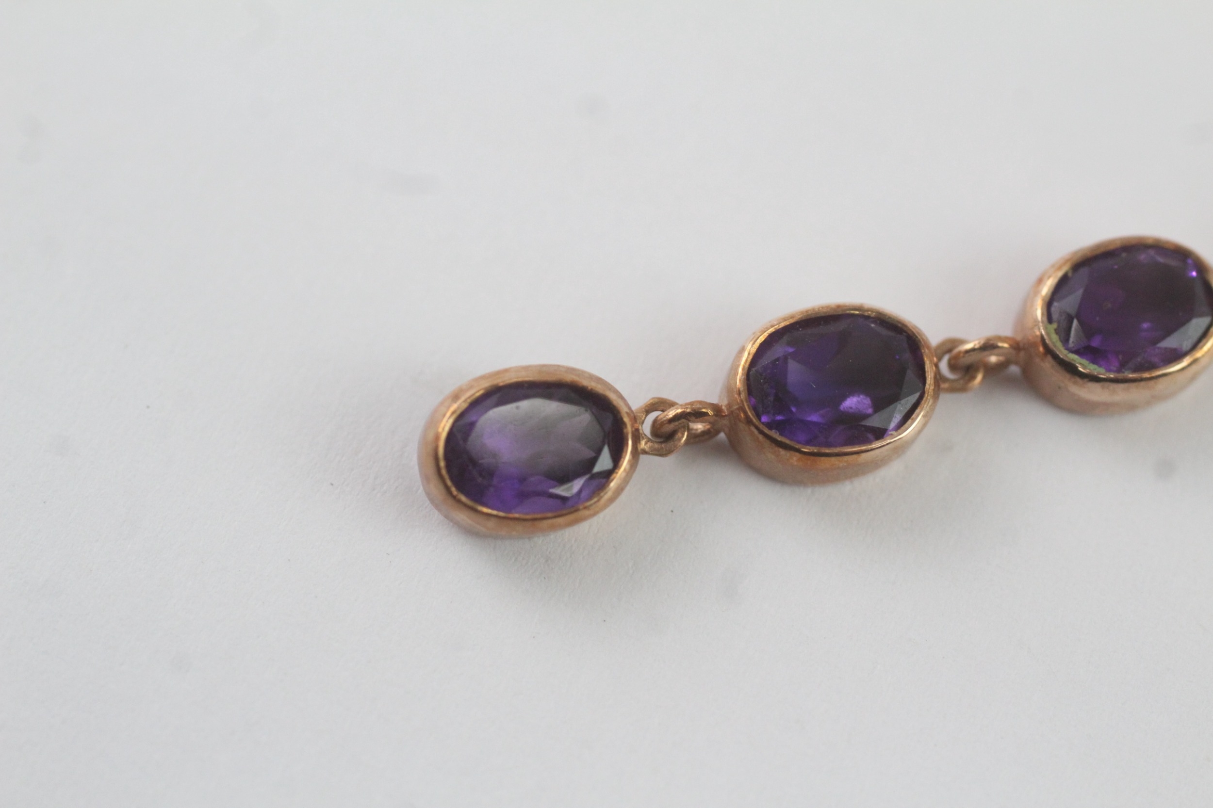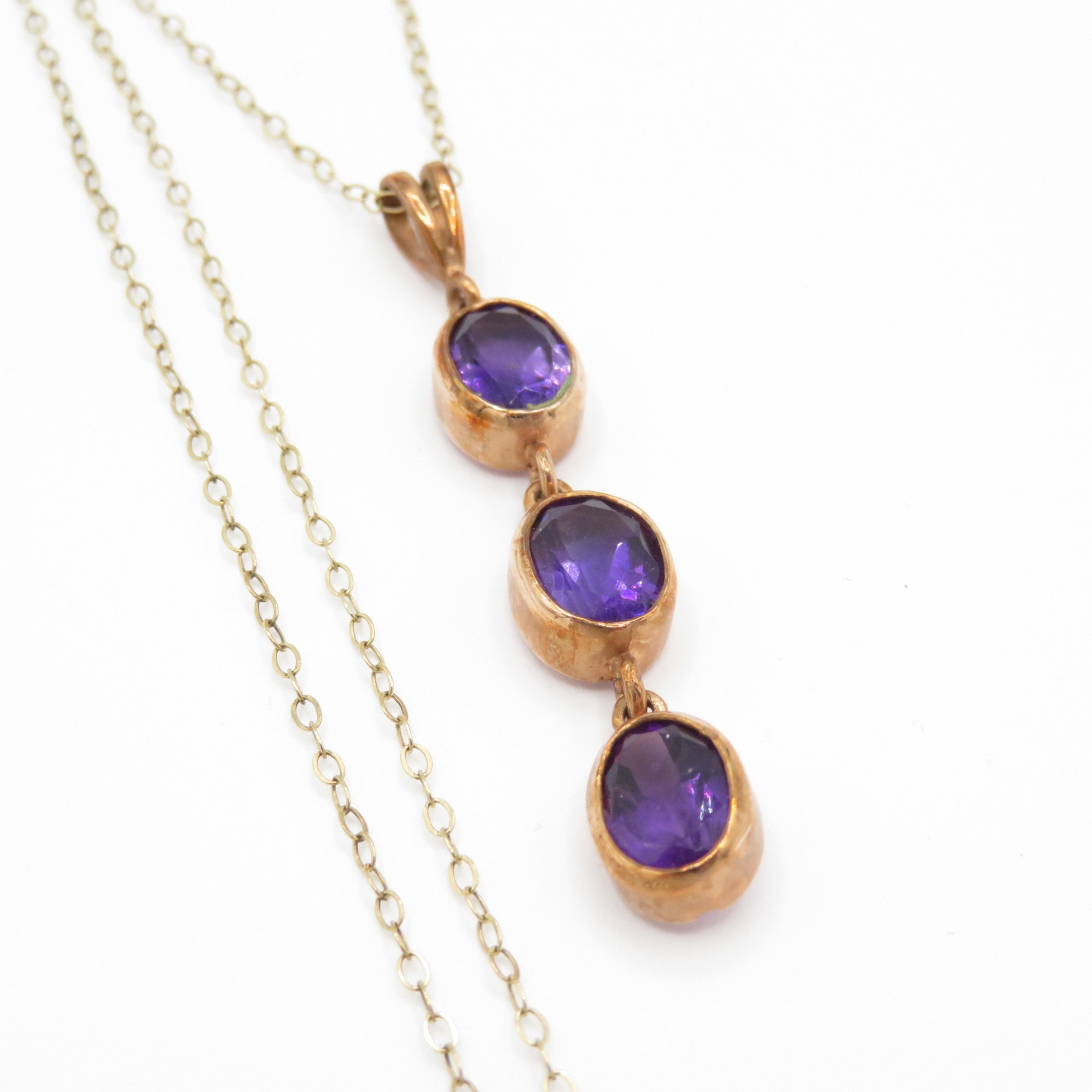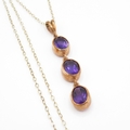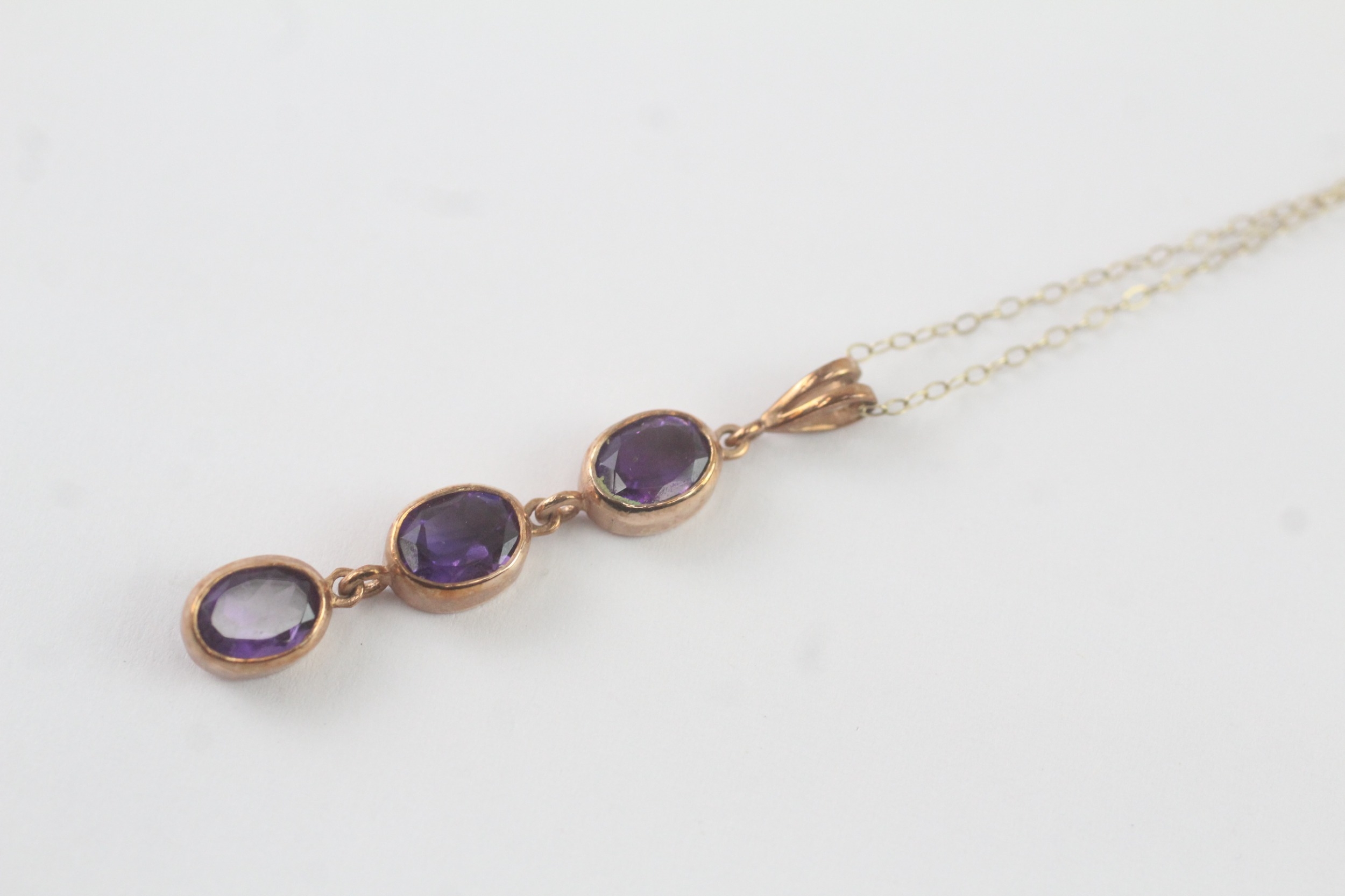 9ct gold amethyst drop pendant necklace (3.1g)