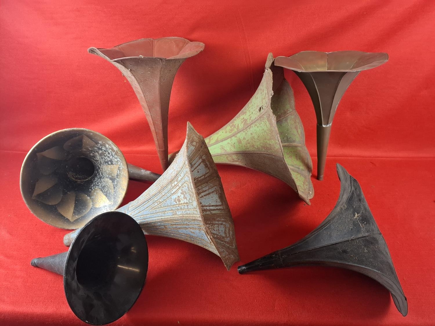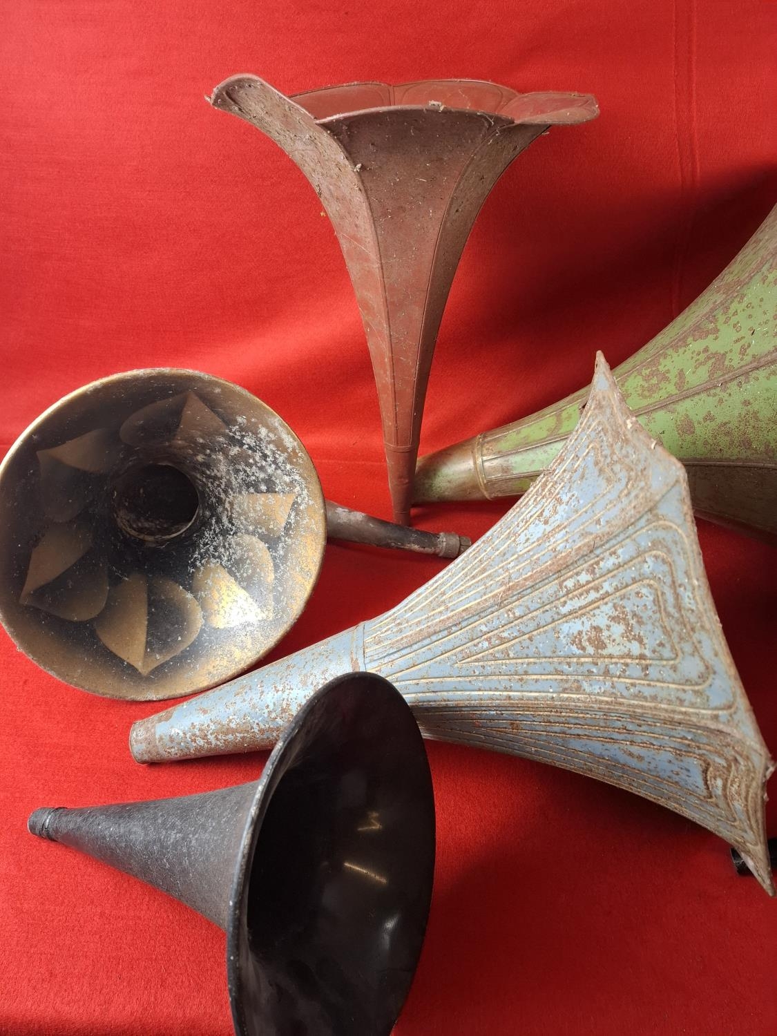 Collection of mixed phonograph horns. Mixed conditions