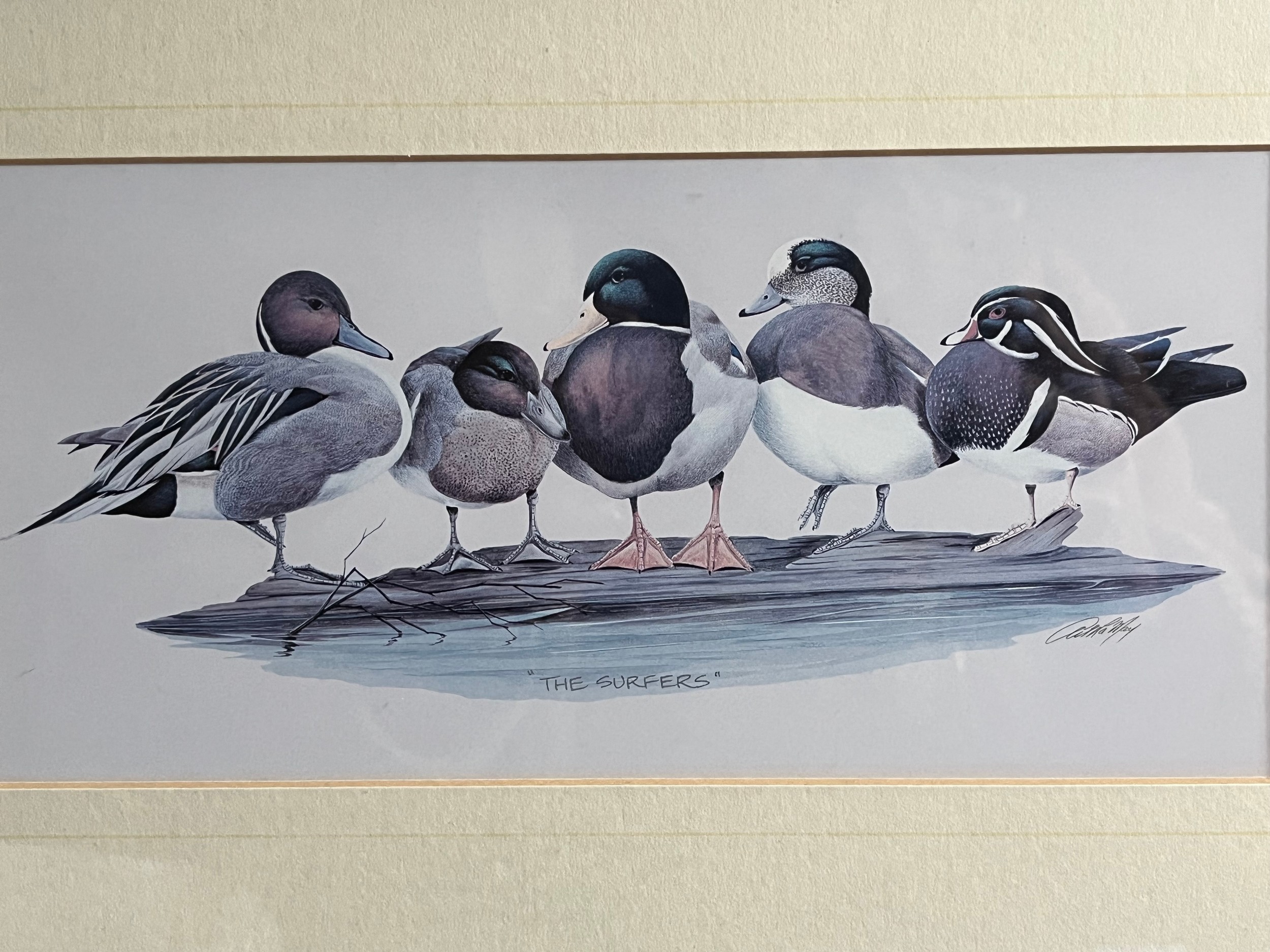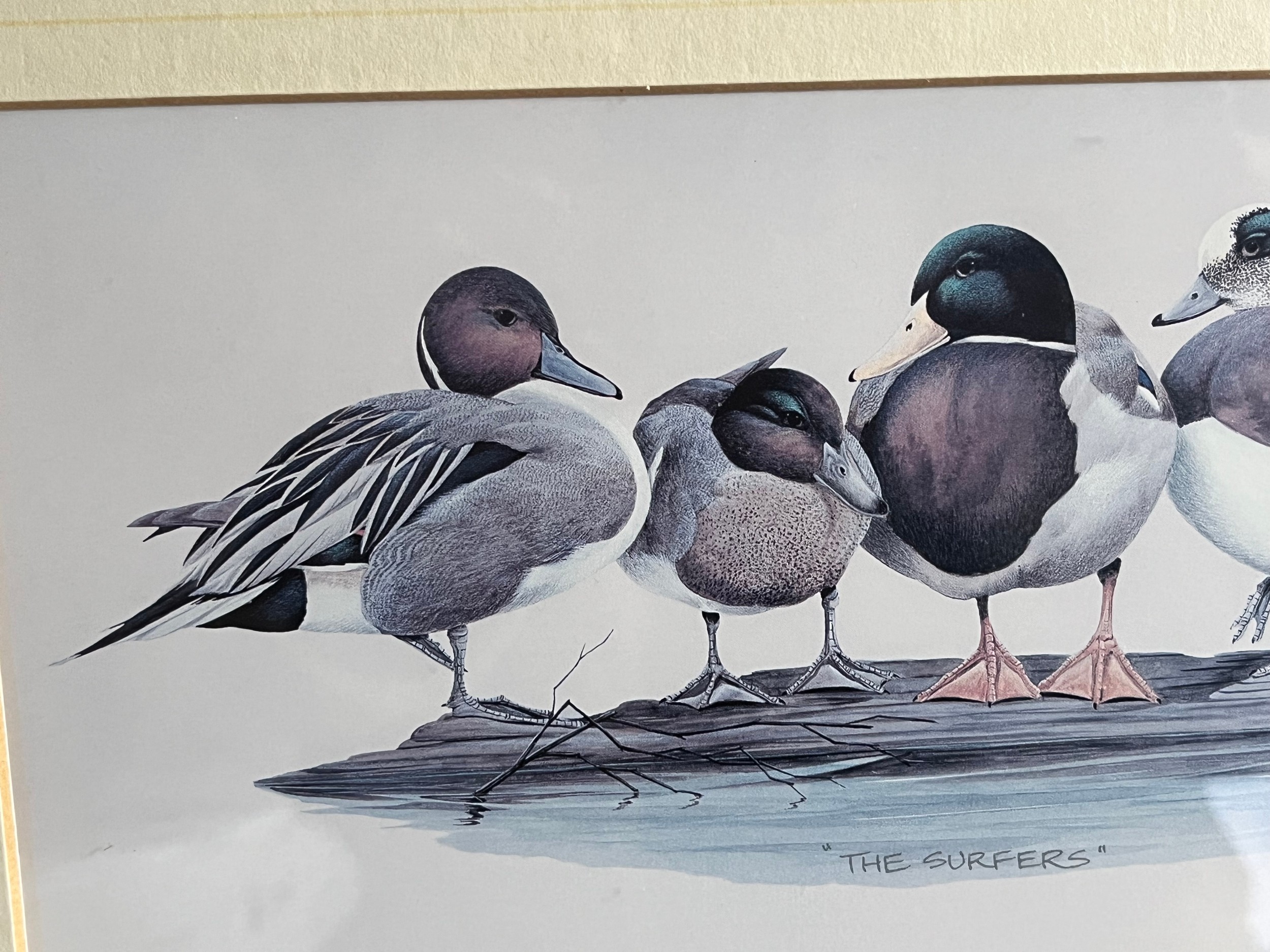 Old print of wild ducks "The Surfers"