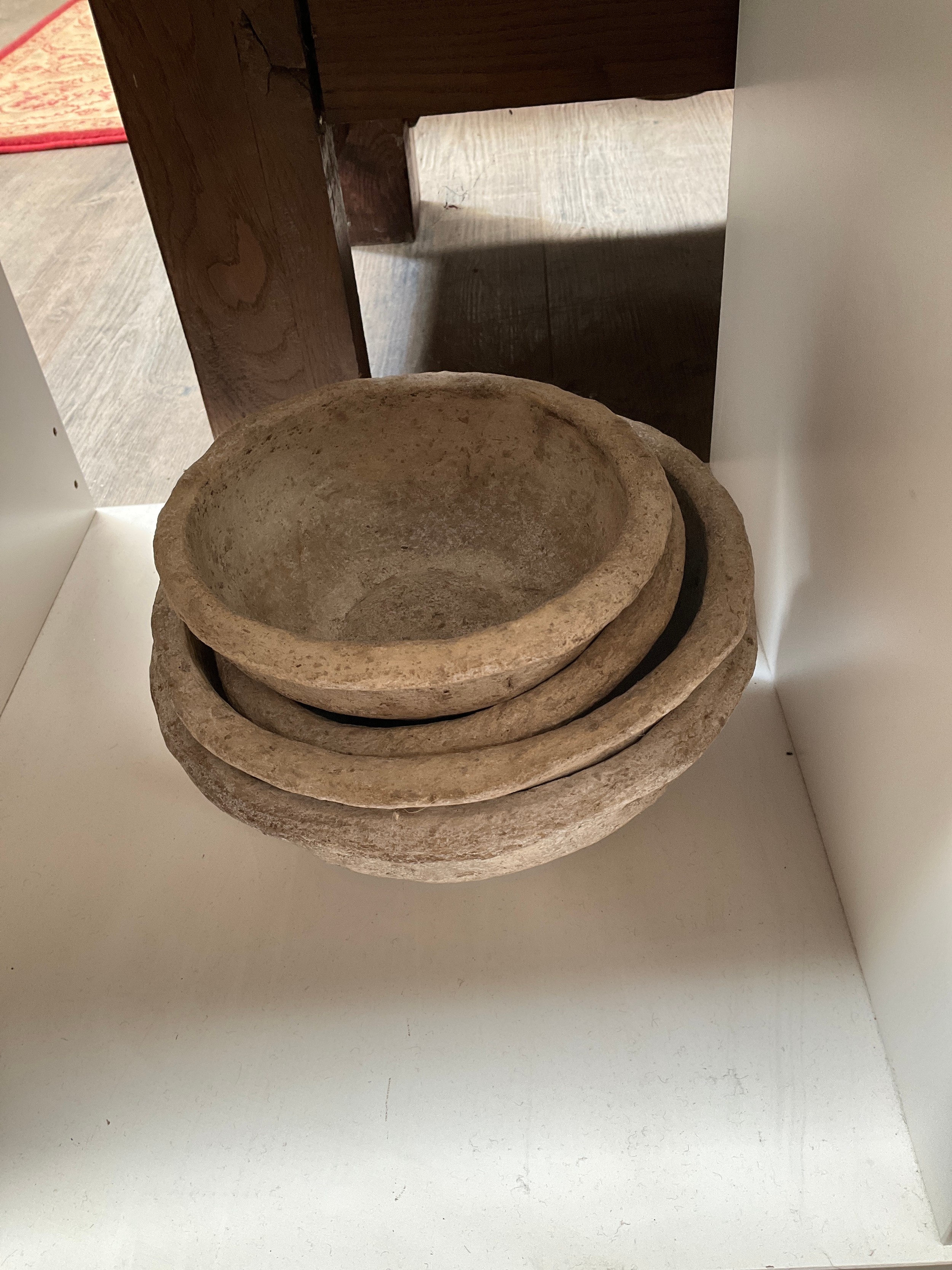 Four Indian papier-mache rustic bowls