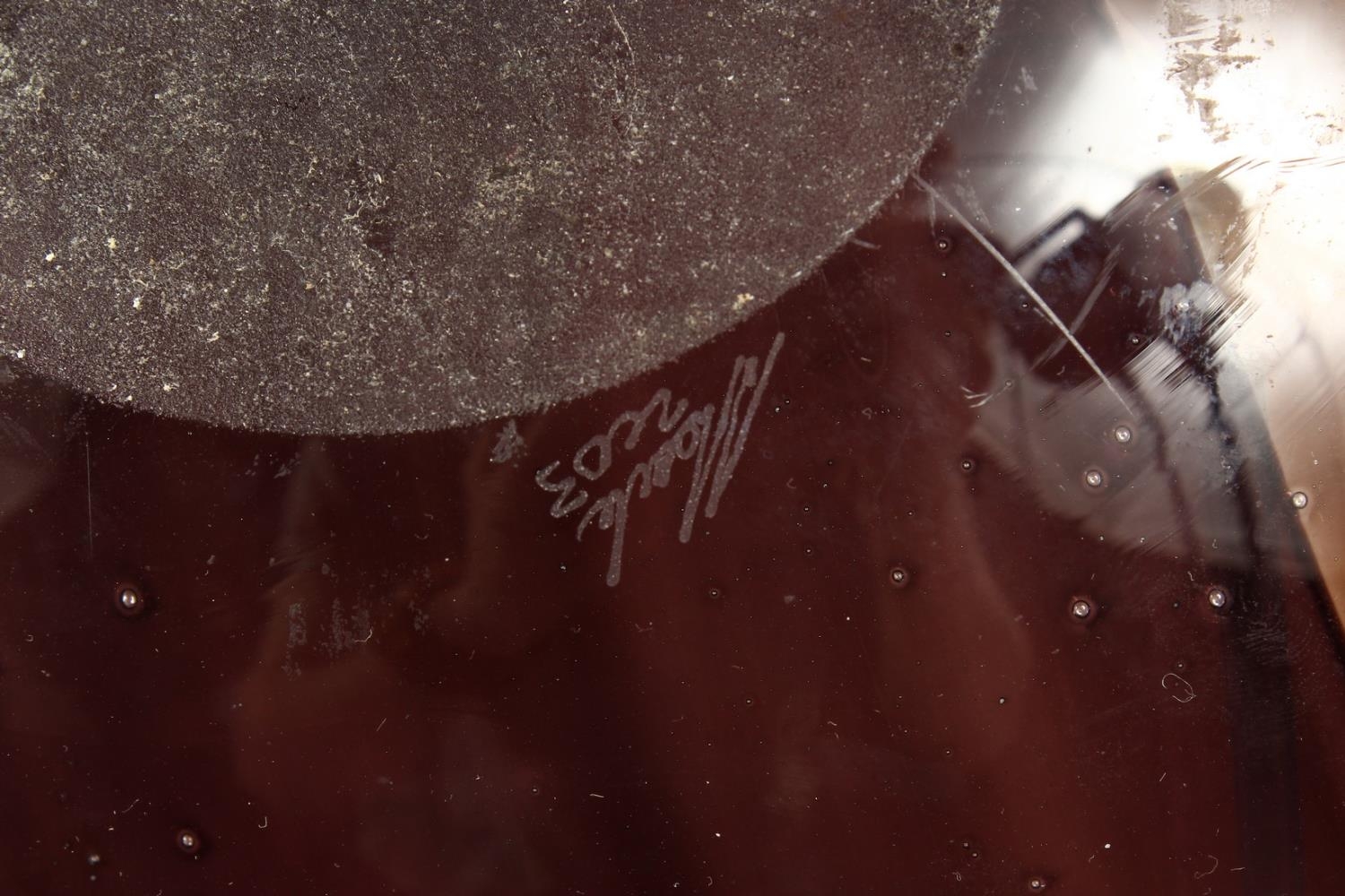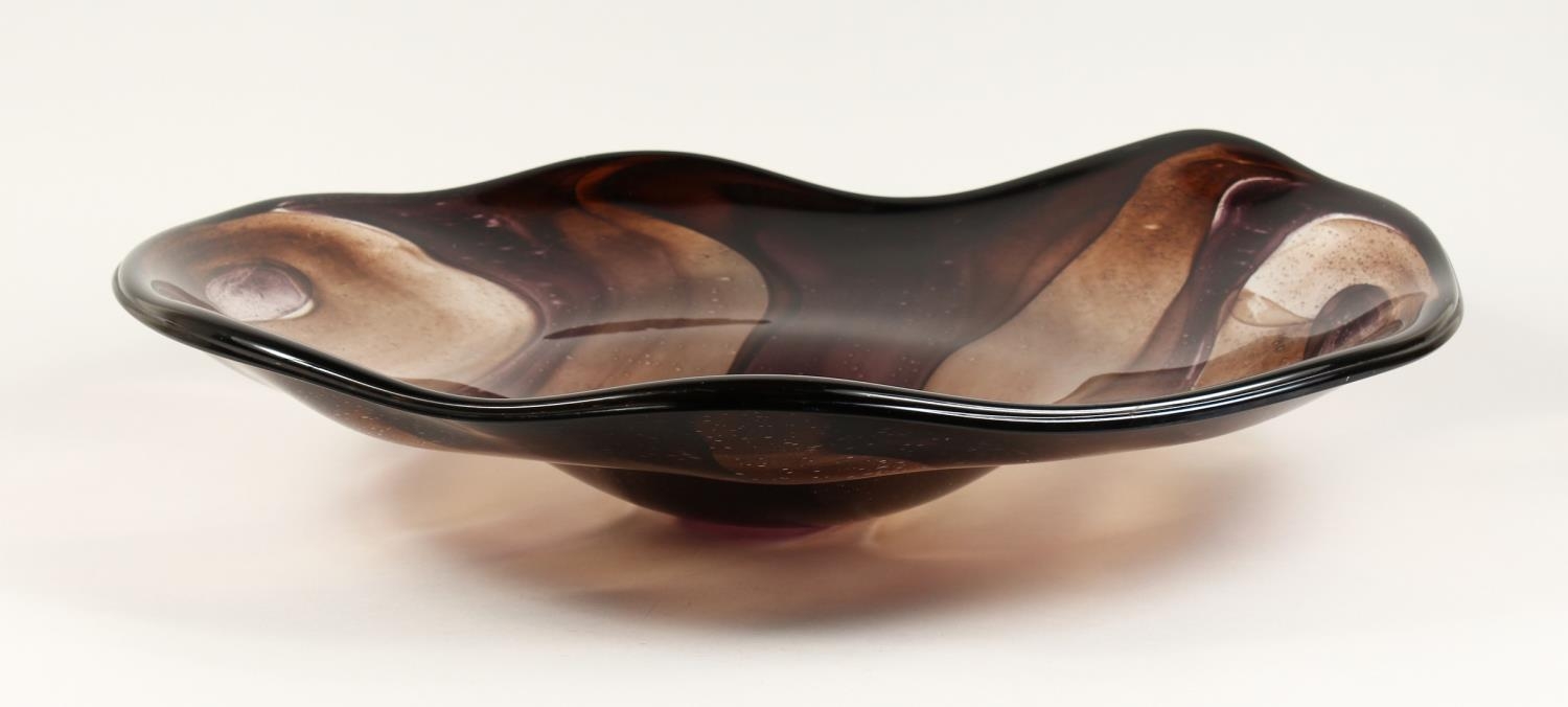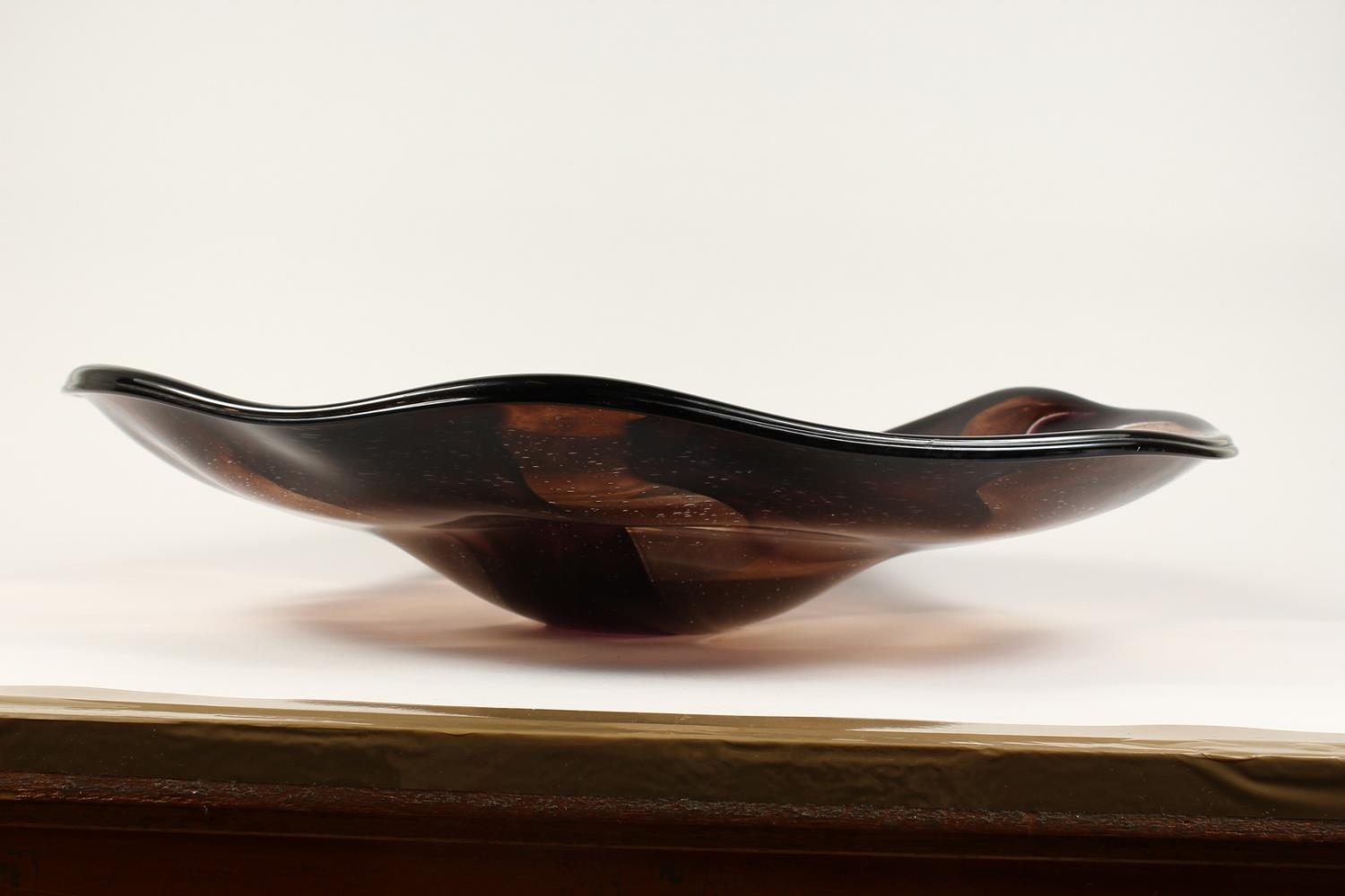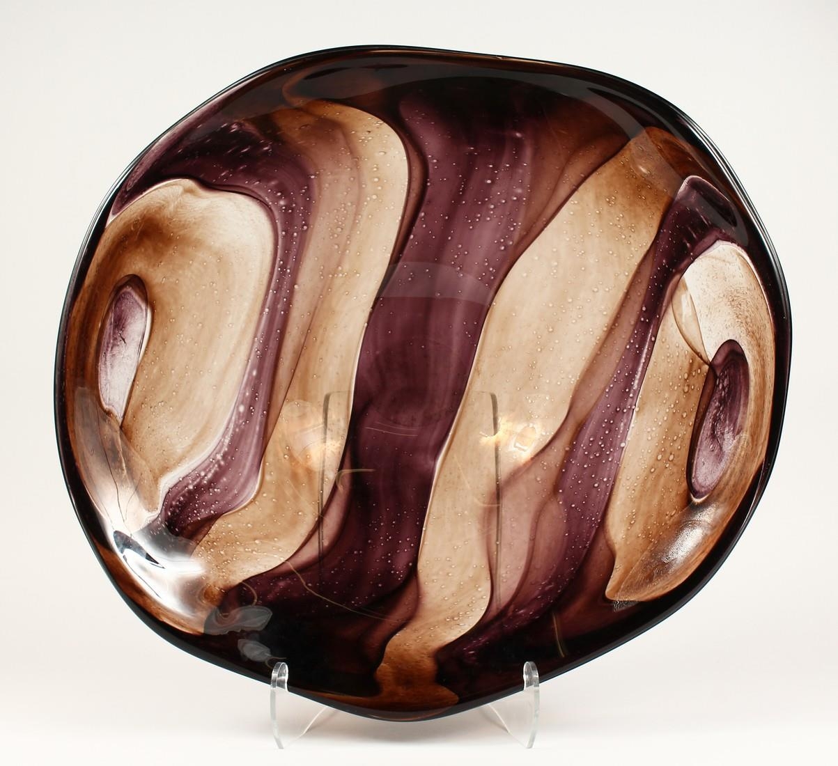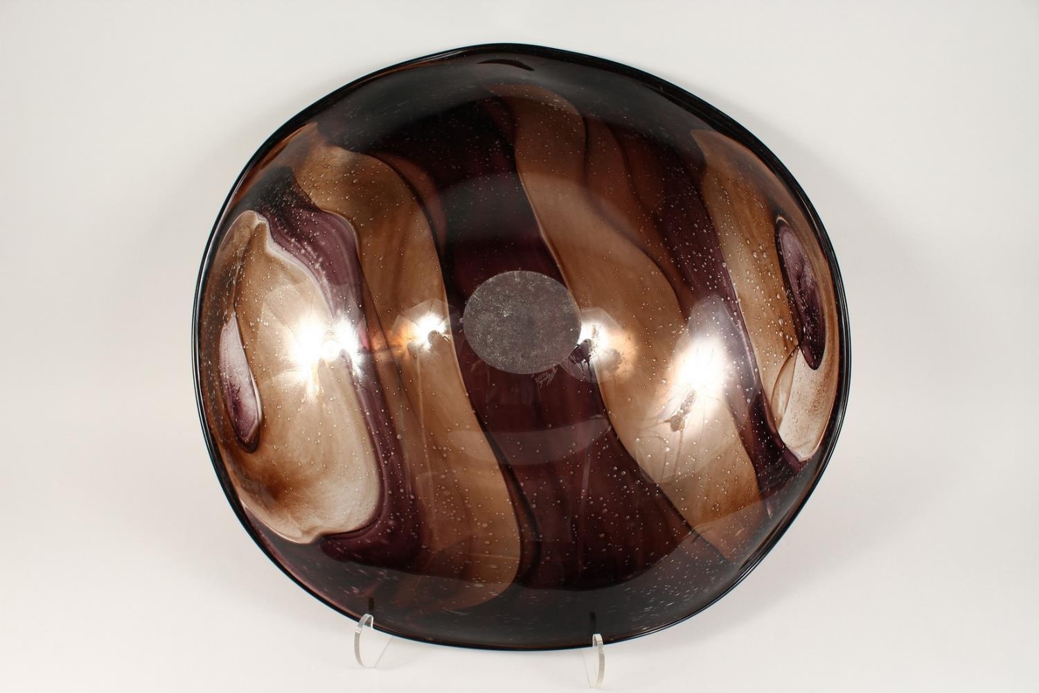 A VERY LARGE ART GLASS LOW BOWL Signed, mark 2003. 27ins diameter.