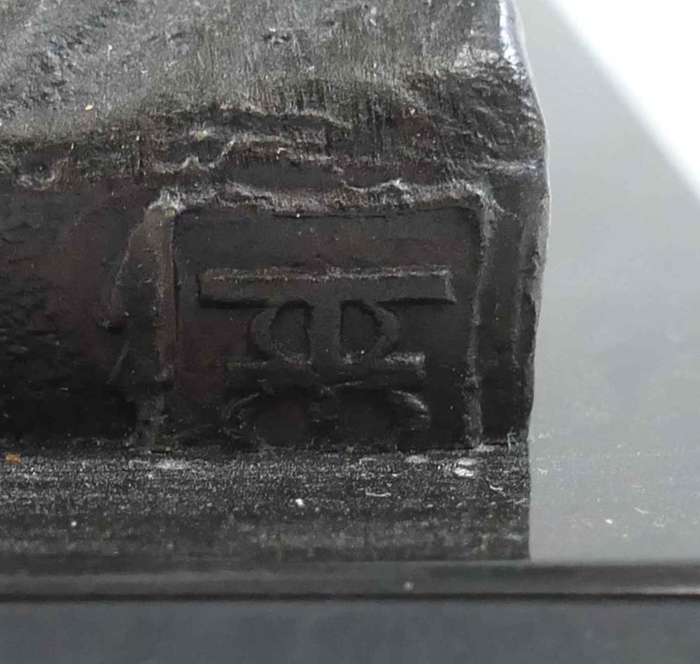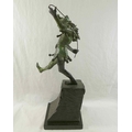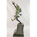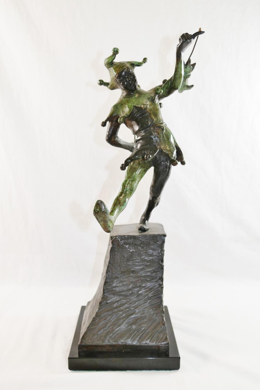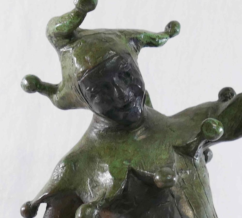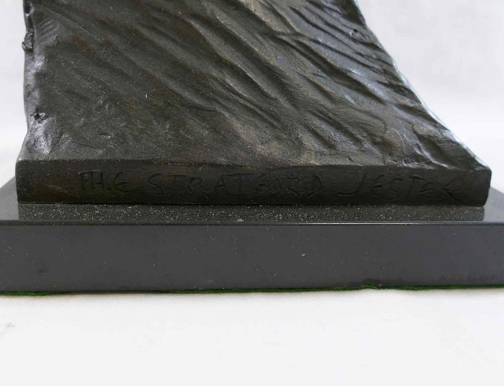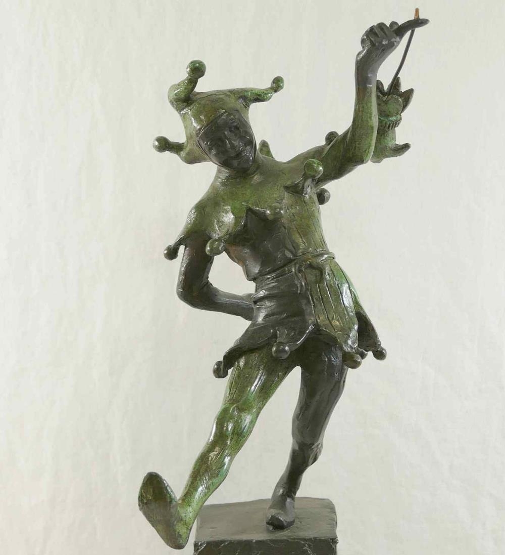 James Butler RA (b.1931), 'The Stratford Jester', patinated bronze, signed to base, dated '95 and numbered AC/IV, on square plinth (upheld jester's puppet bent)