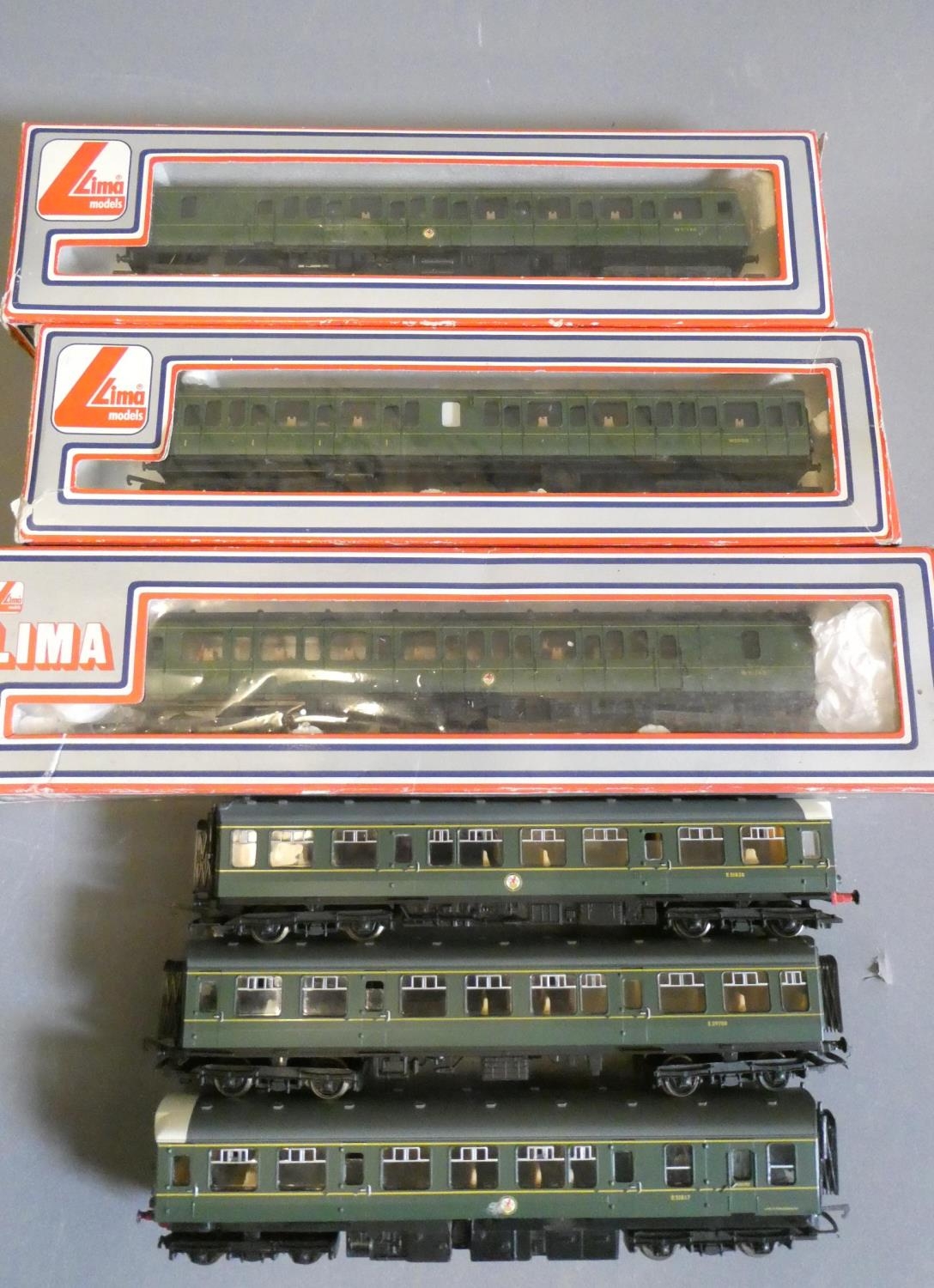 Two Lima DUM's Class 119 and 117 finished in BR green, mark on one power car side, some items boxed, good+