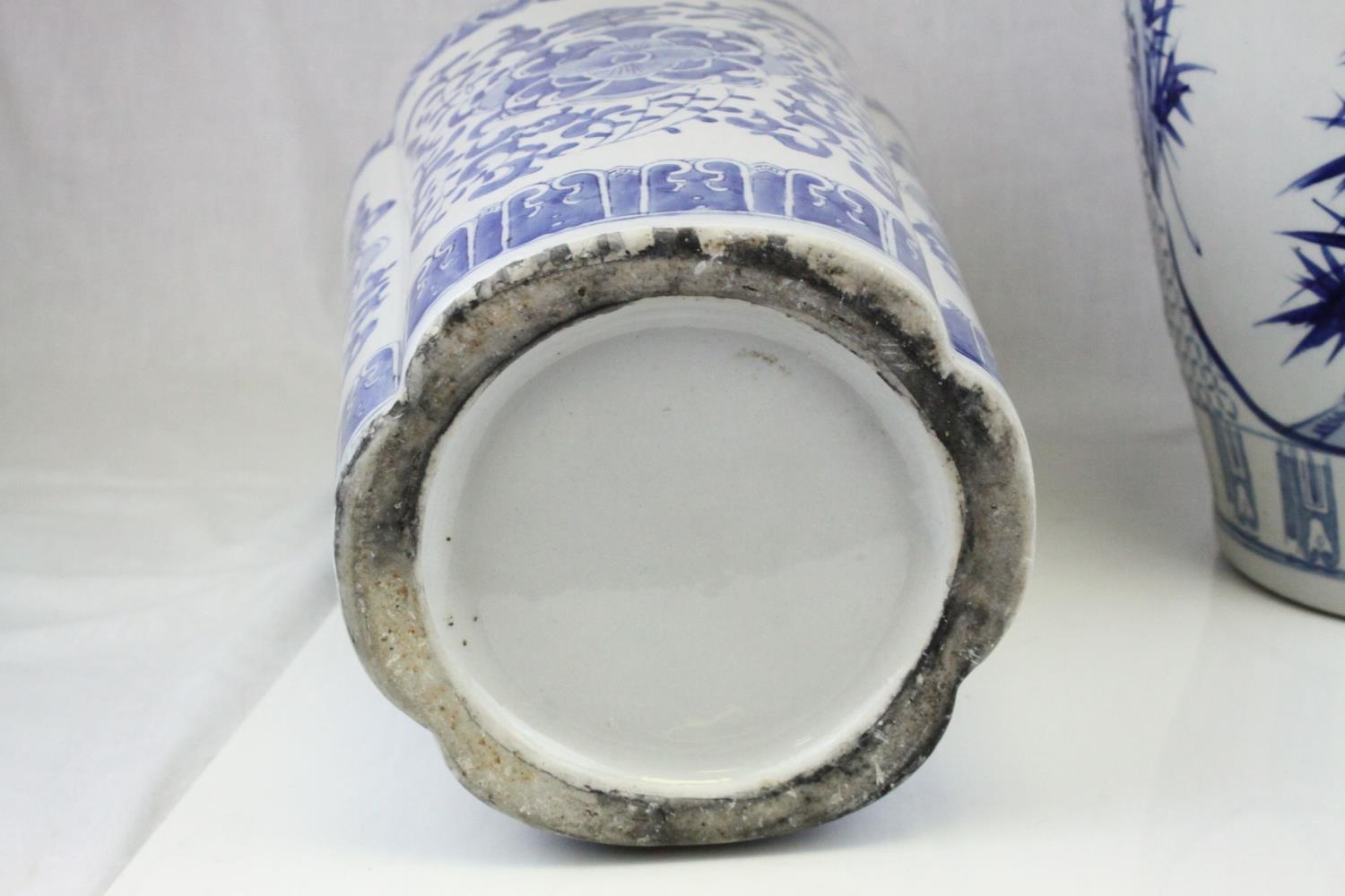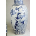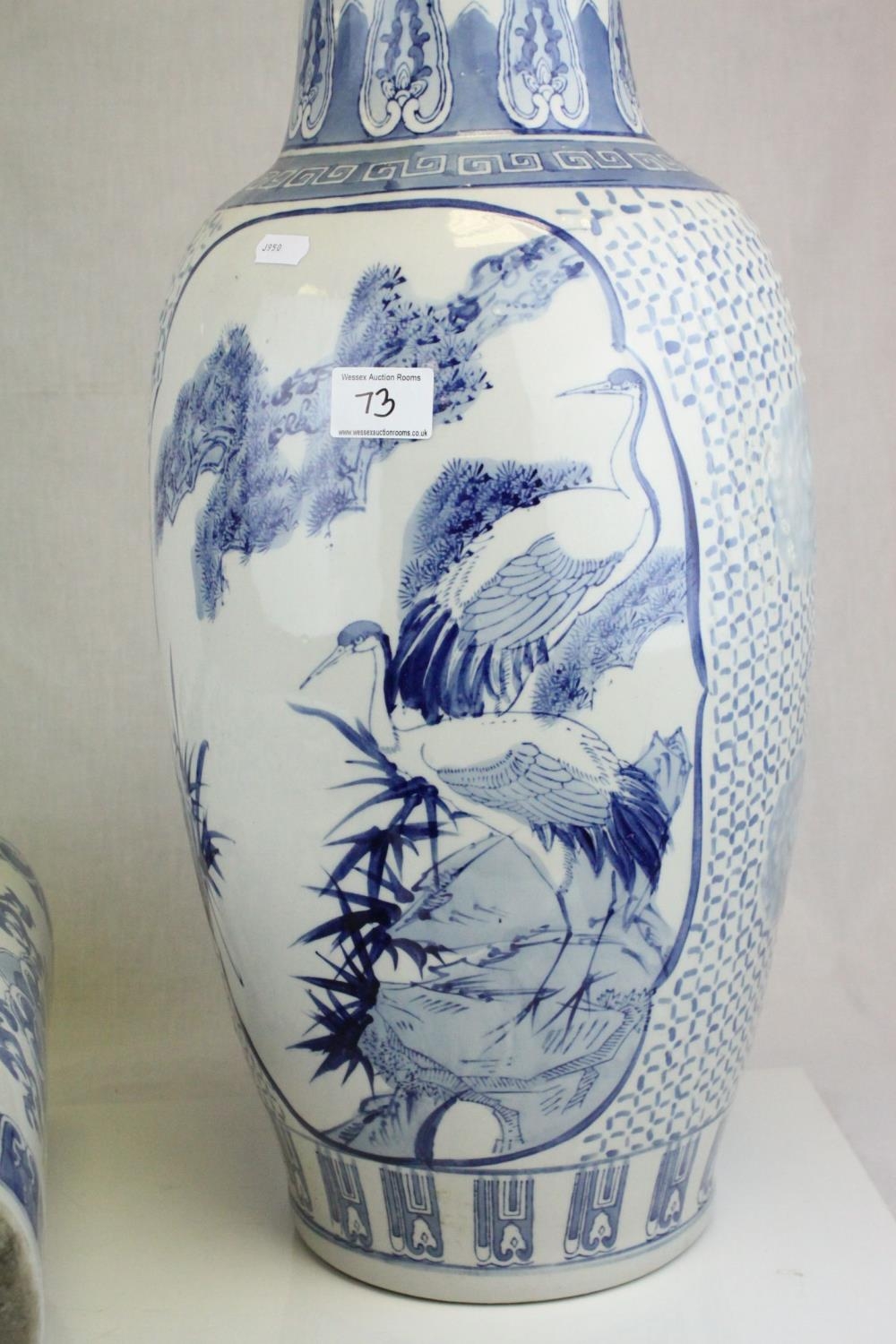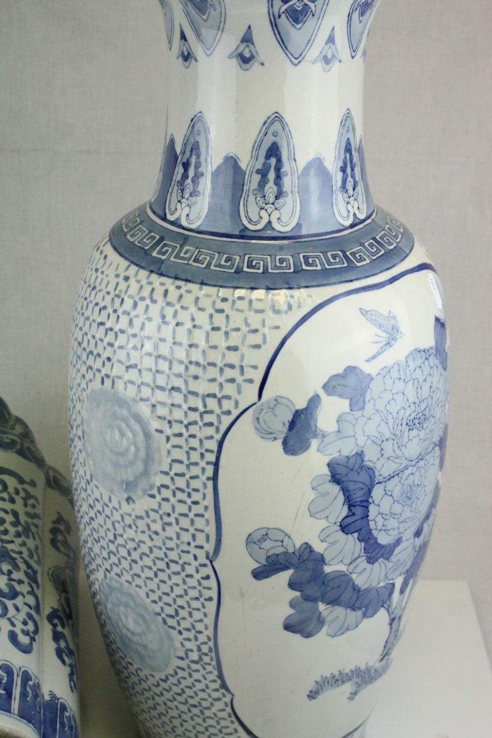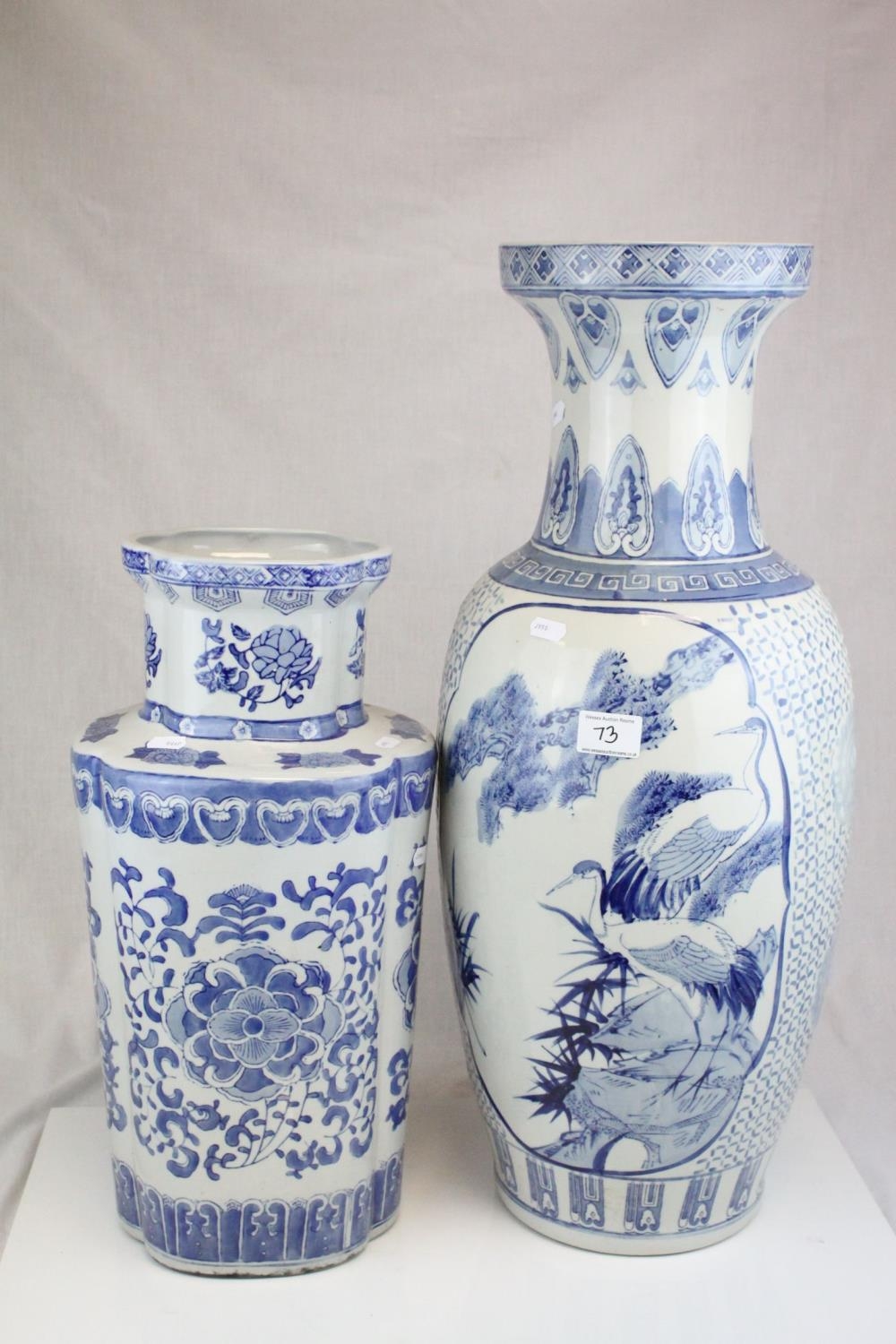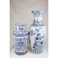 Two Large 20th century Oriental Blue and White Vases, the largest 66cms high