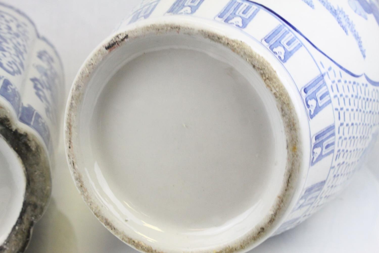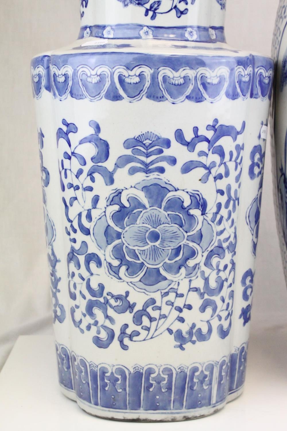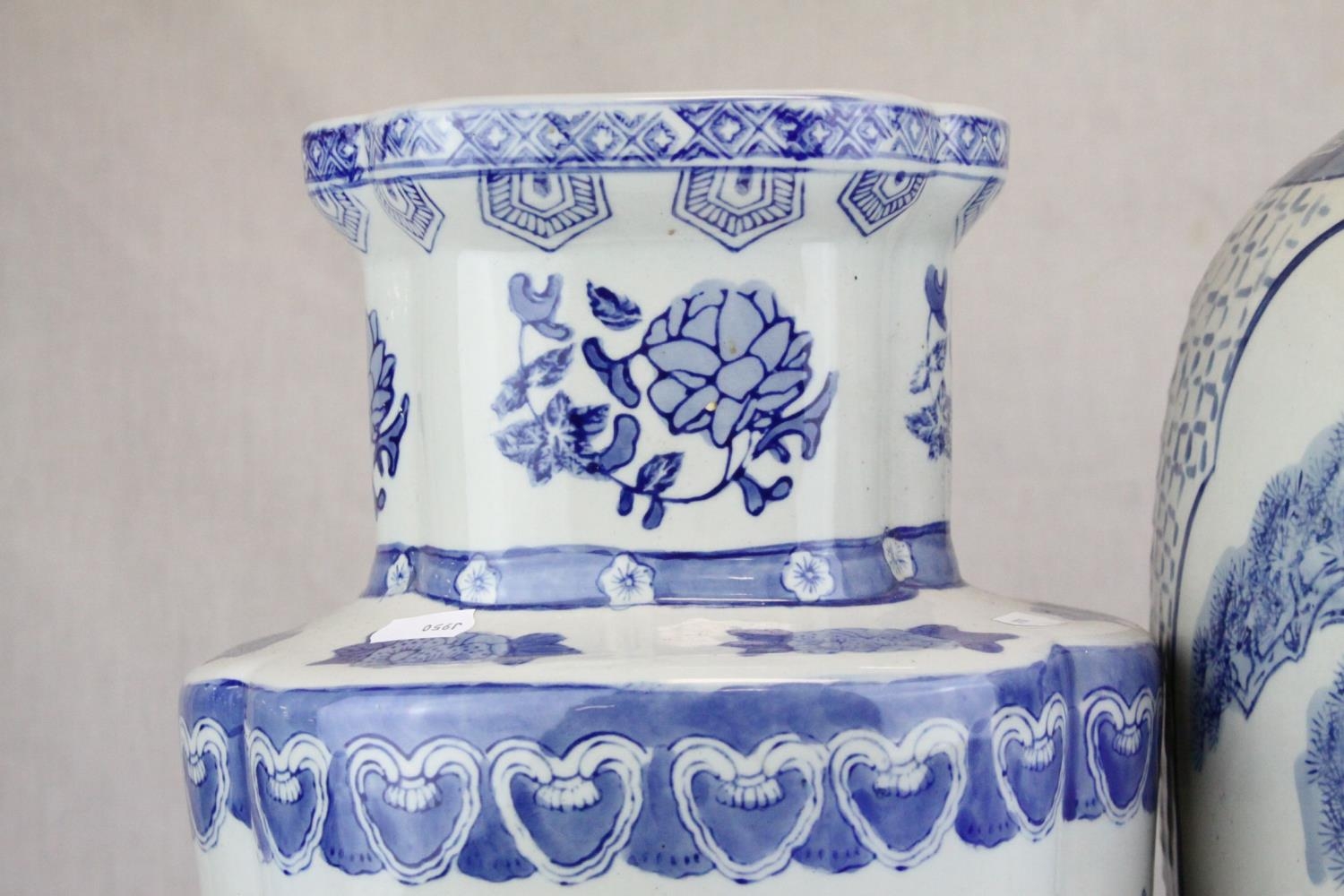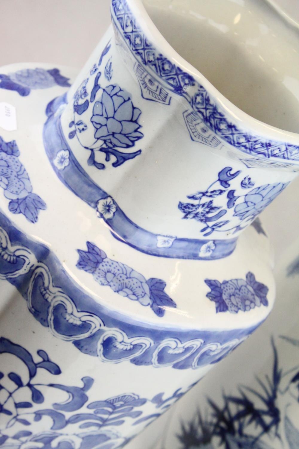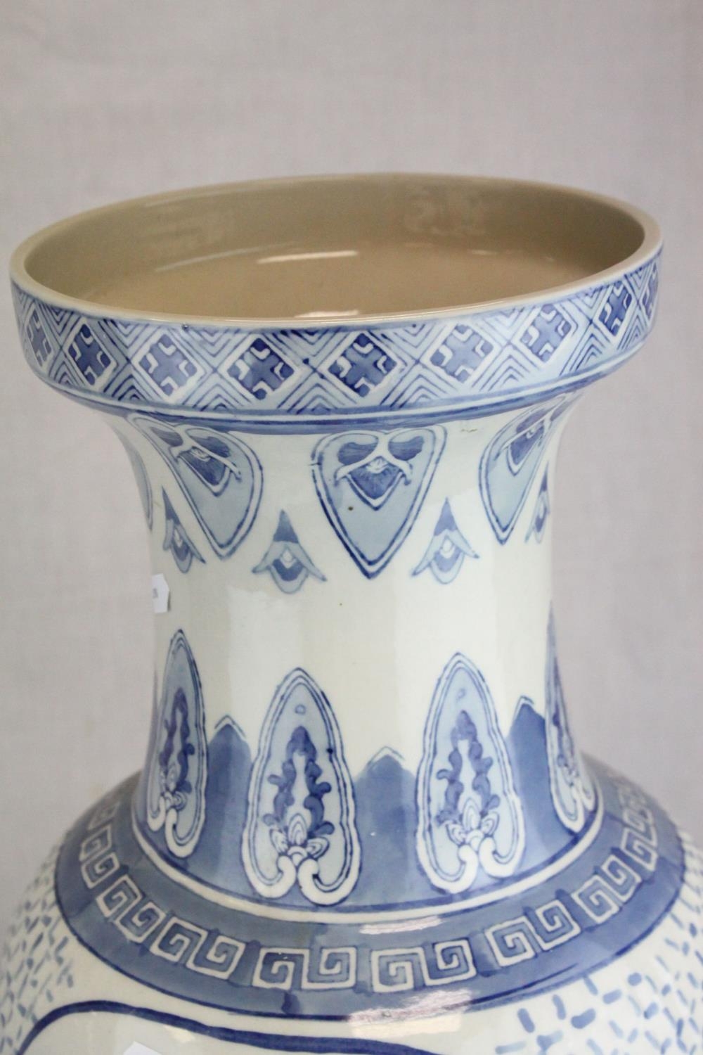 Two Large 20th century Oriental Blue and White Vases, the largest 66cms high