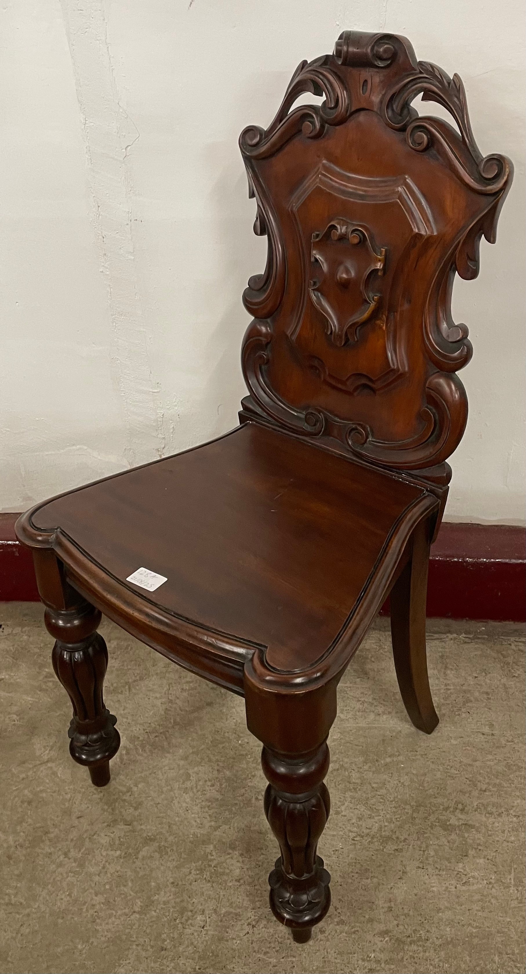 A Victorian carved mahogany hall chair