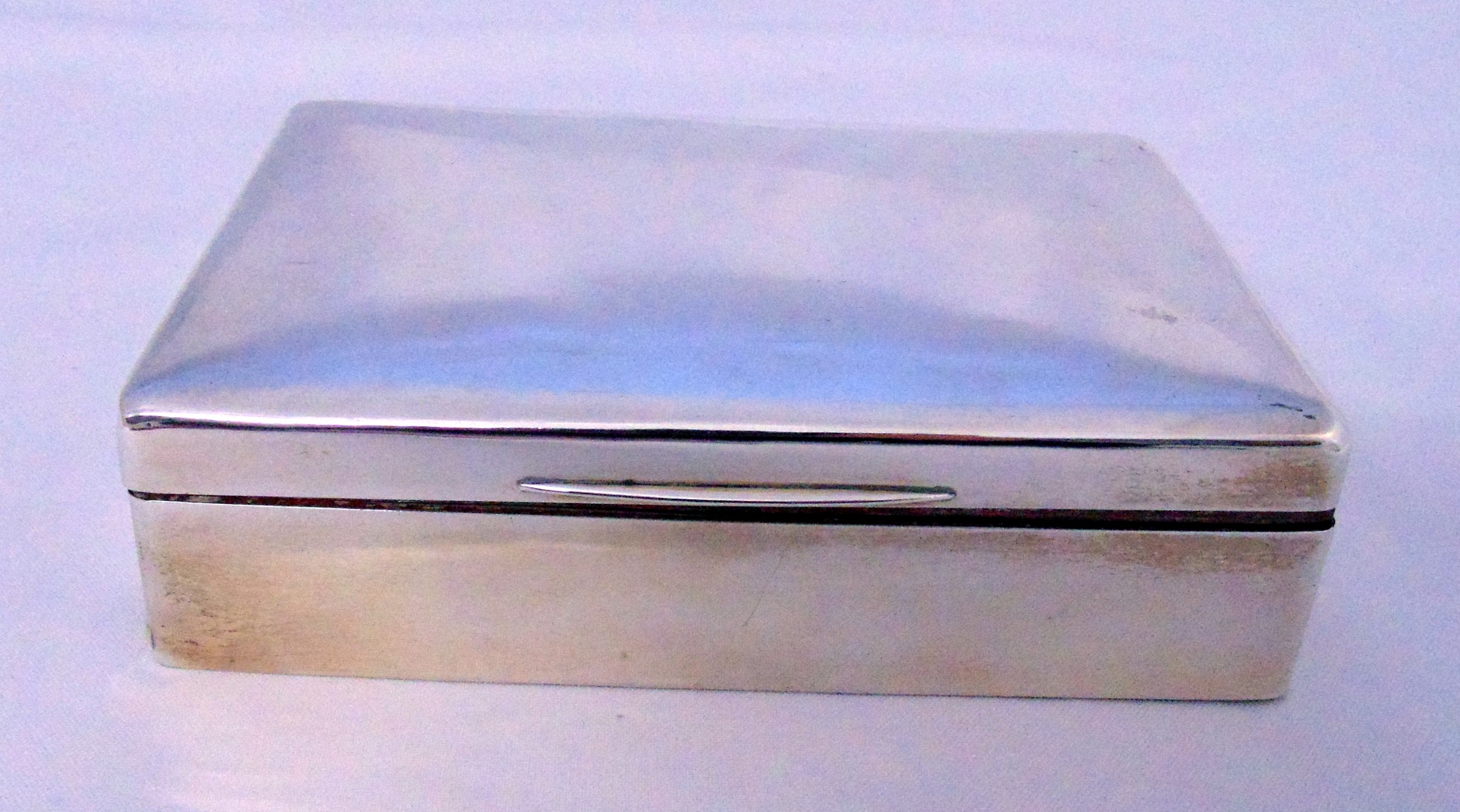 Goldsmiths and Silversmith Company hallmarked silver rectangular plain cigarette box with cedar wood lining, London 1914