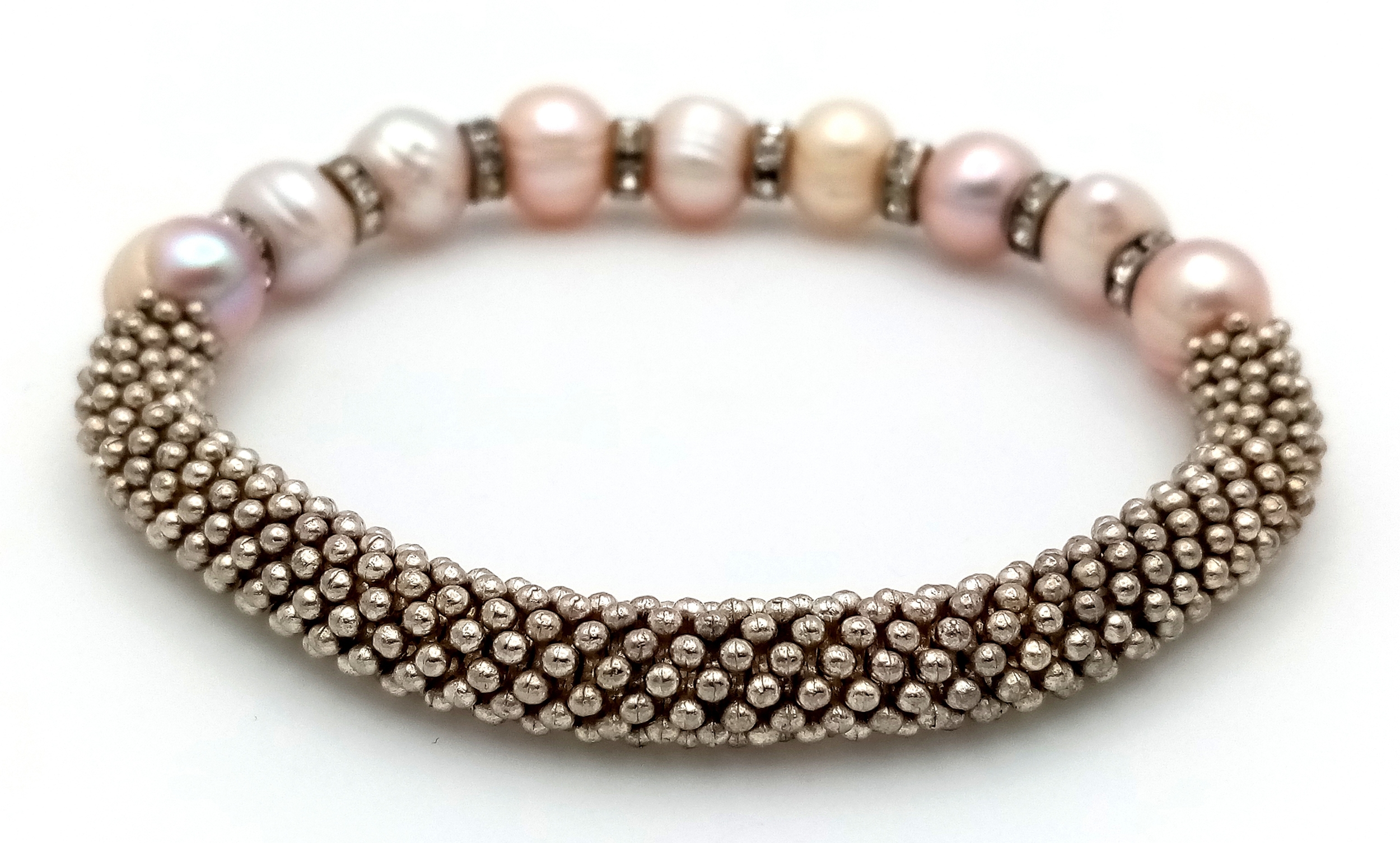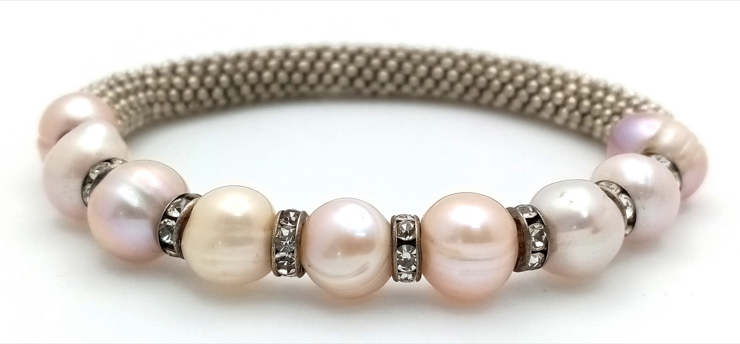 A Pearl and stone set adjustable bracelet. Please see photos for details.