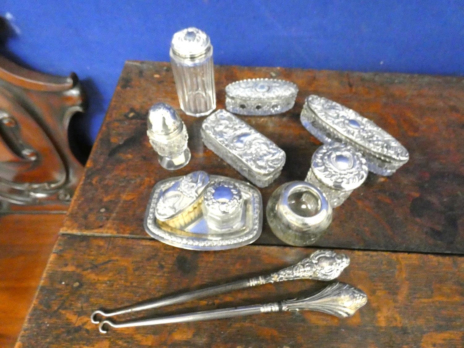 Various silver items to include American sterling pin dish and cut glass trinket boxes. Weighable silver weight 77.6g