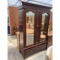 A LATE VICTORIAN MAHOGANY MIRRORED TWO DOOR WARDROBE WITH DRAWER TO BASE, 55" WIDE