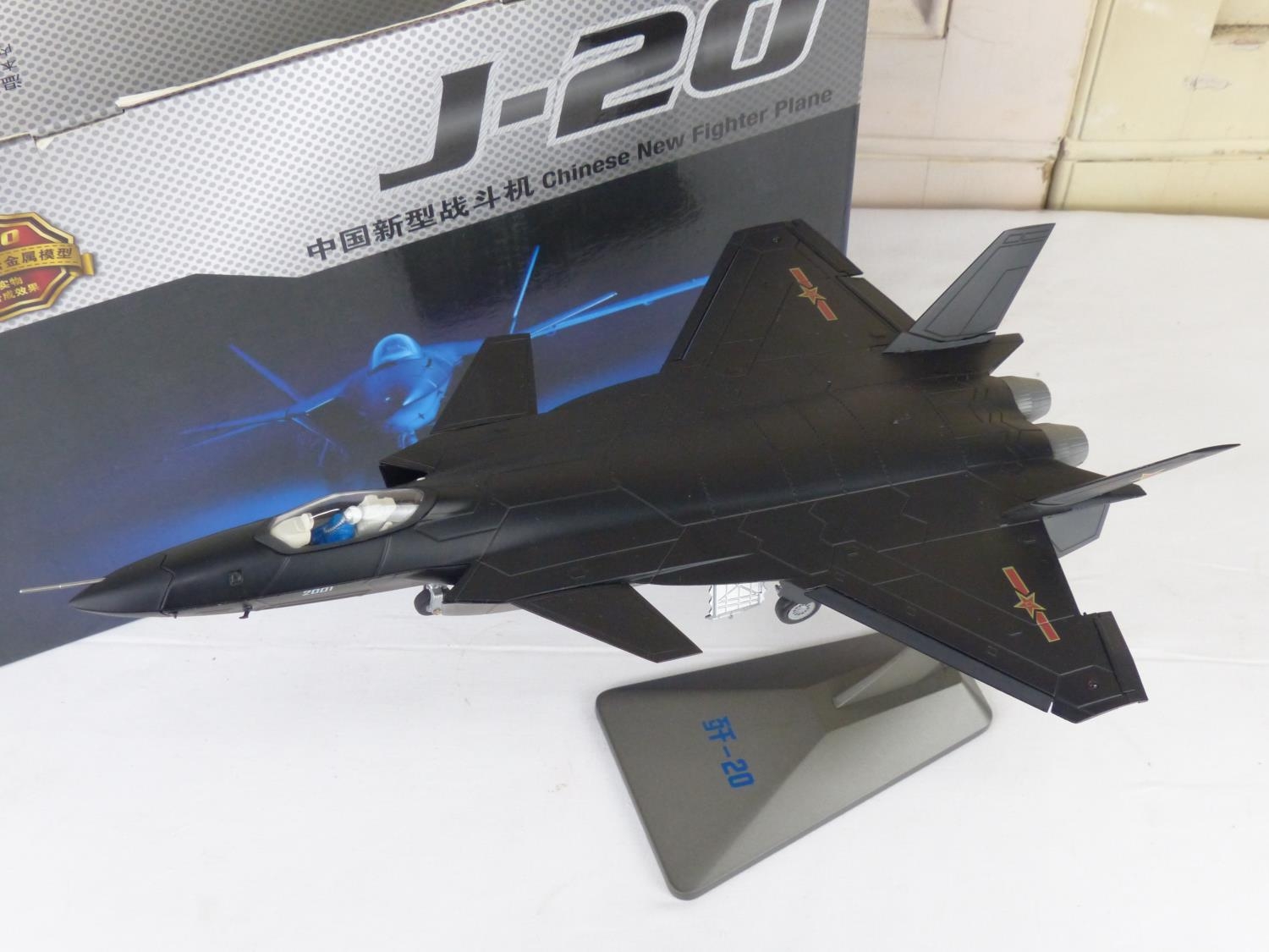 A boxed Chinese New fighter model plane.