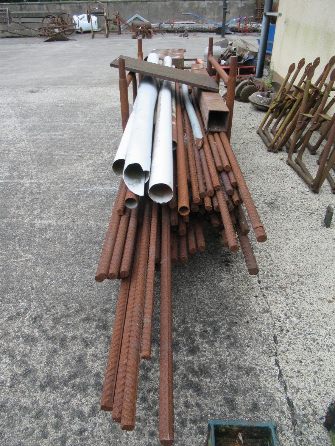 Large quantity of 1'' reinforcing bars plus box iron and flat steel.
