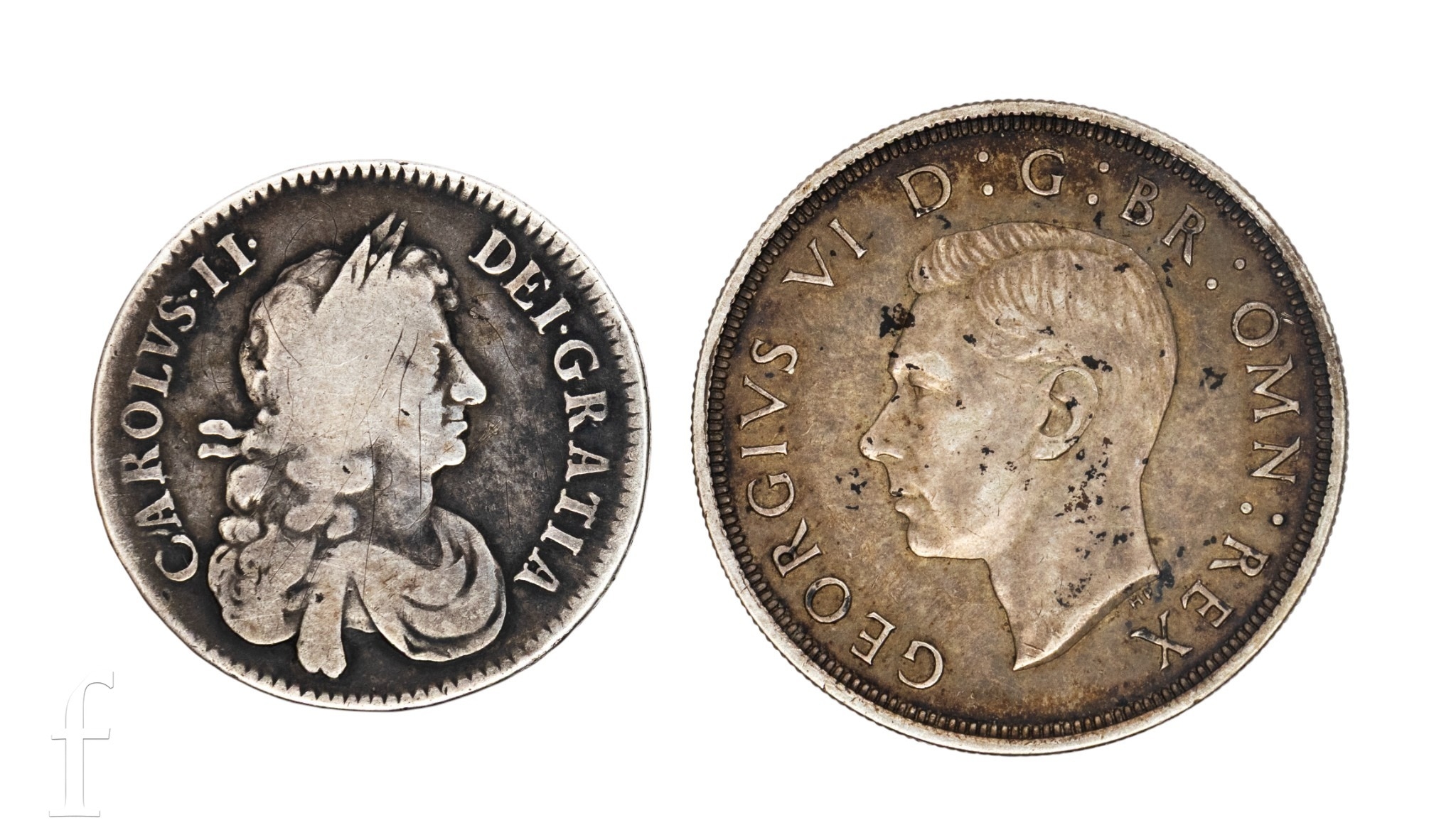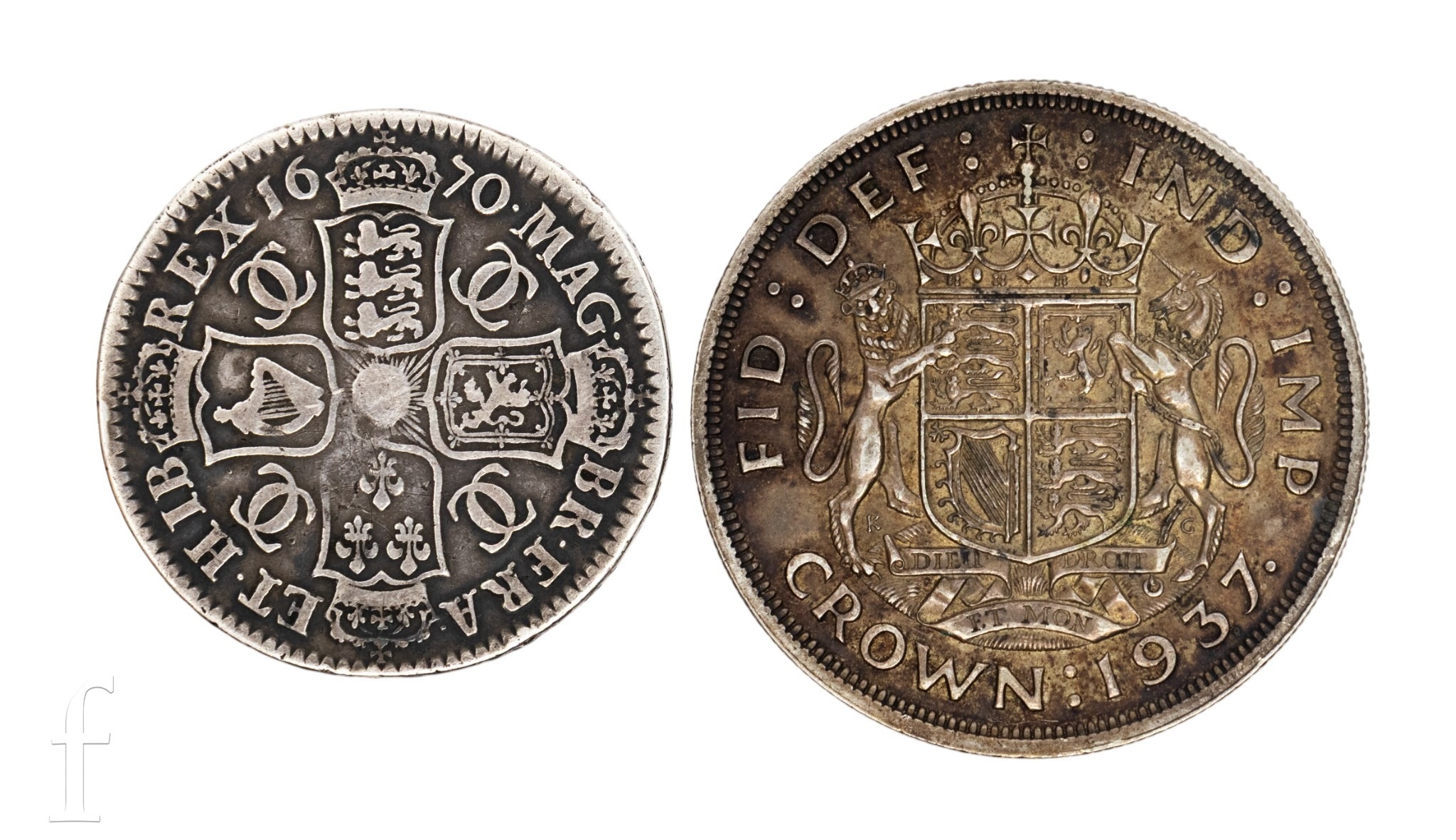 A Charles II (1630-1685) half crown, 1670, and a George VI crown, 1937. (2)