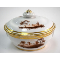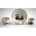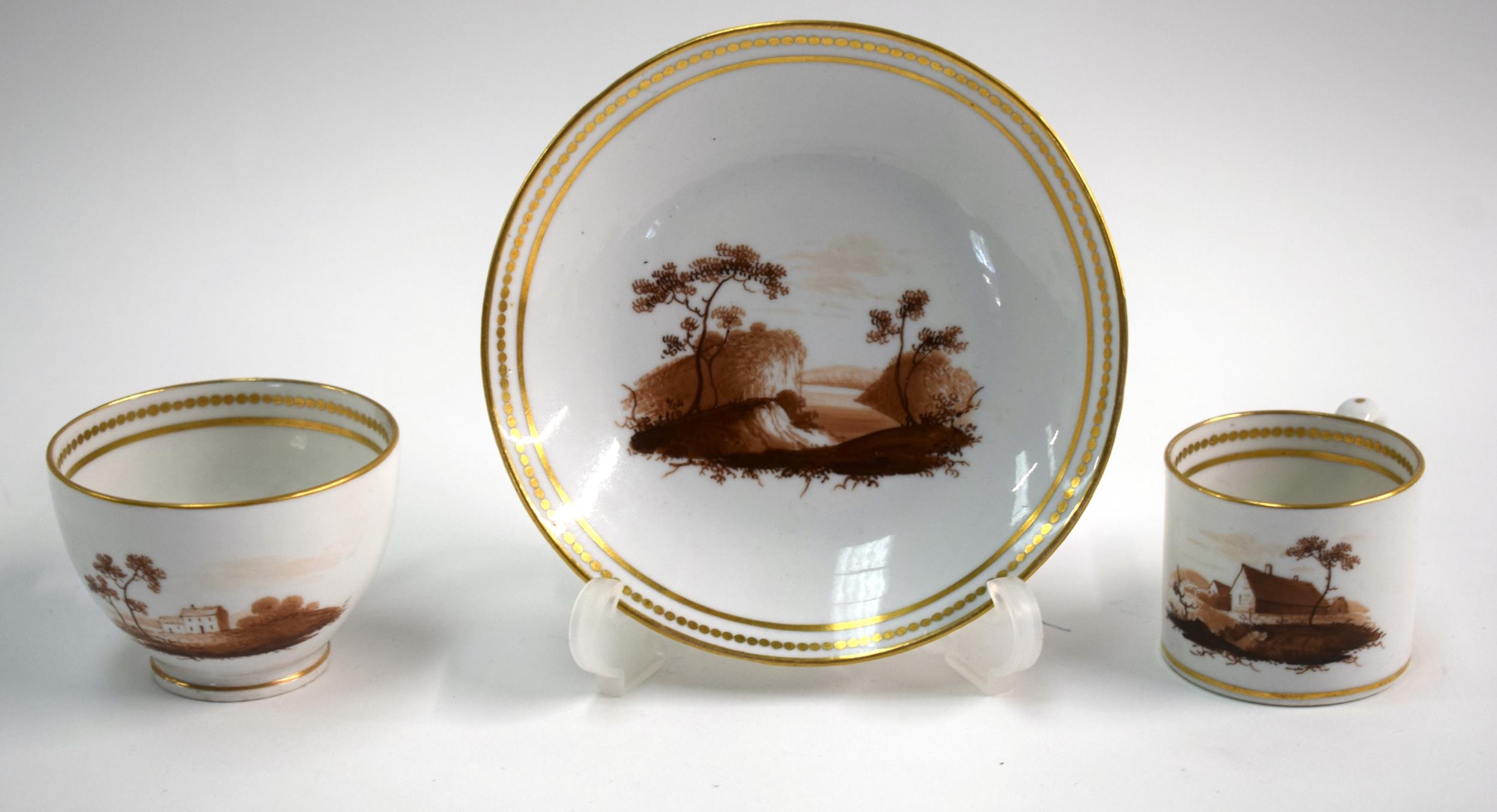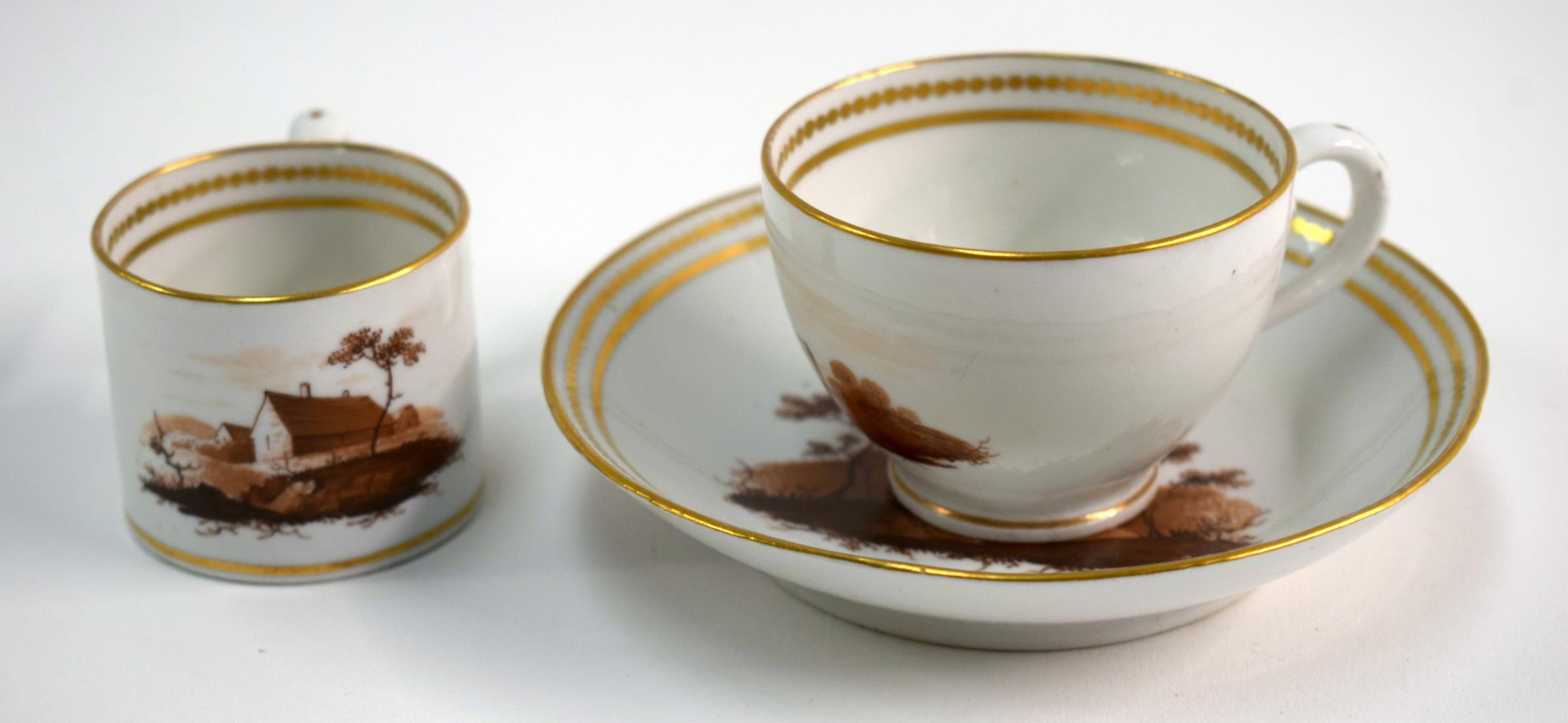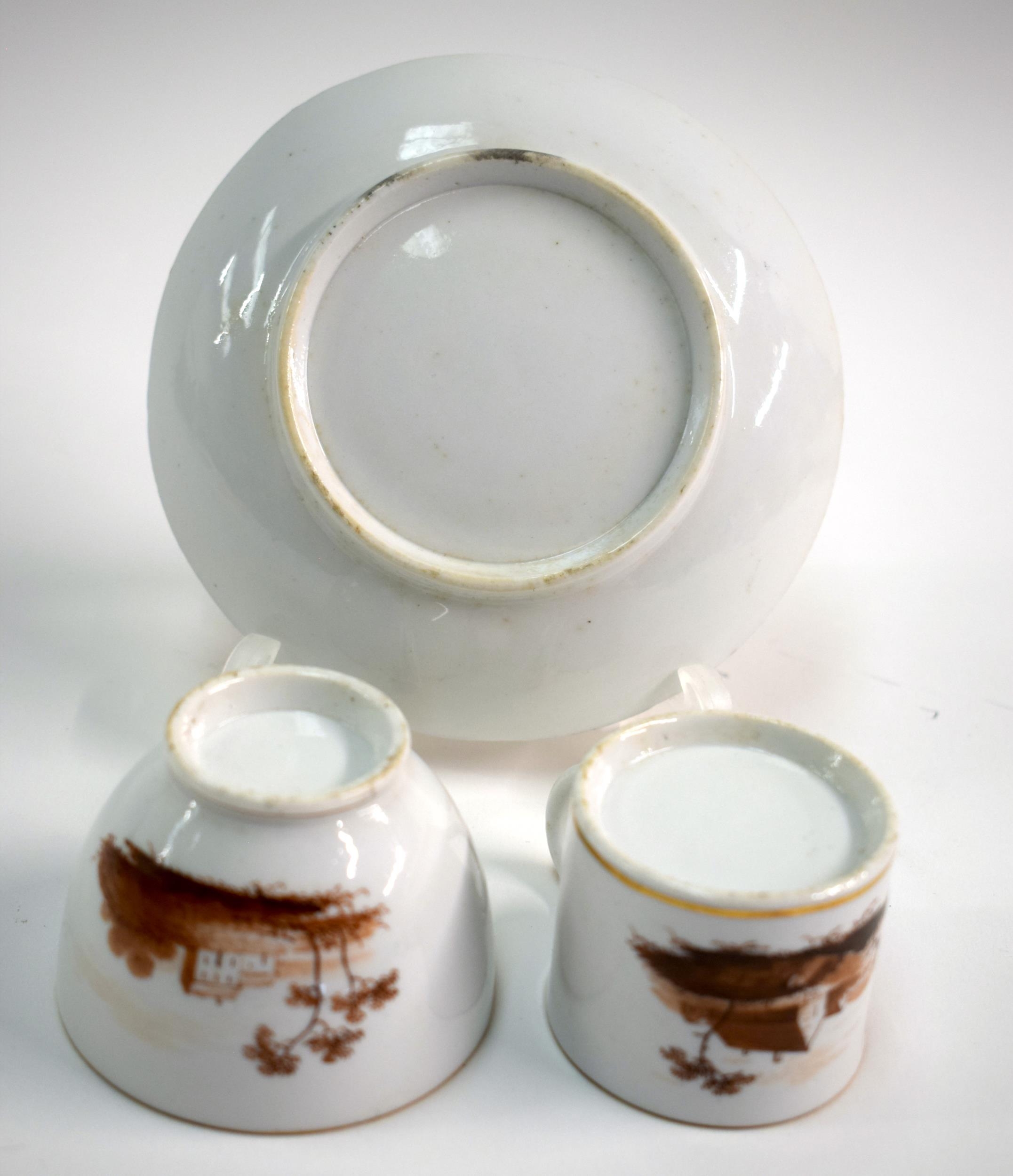 Early 19th century Chamberlains Worcester miniature coffee cup, teabowl and saucer painted with a sepia landscape. Saucer 11.5cm