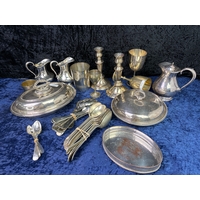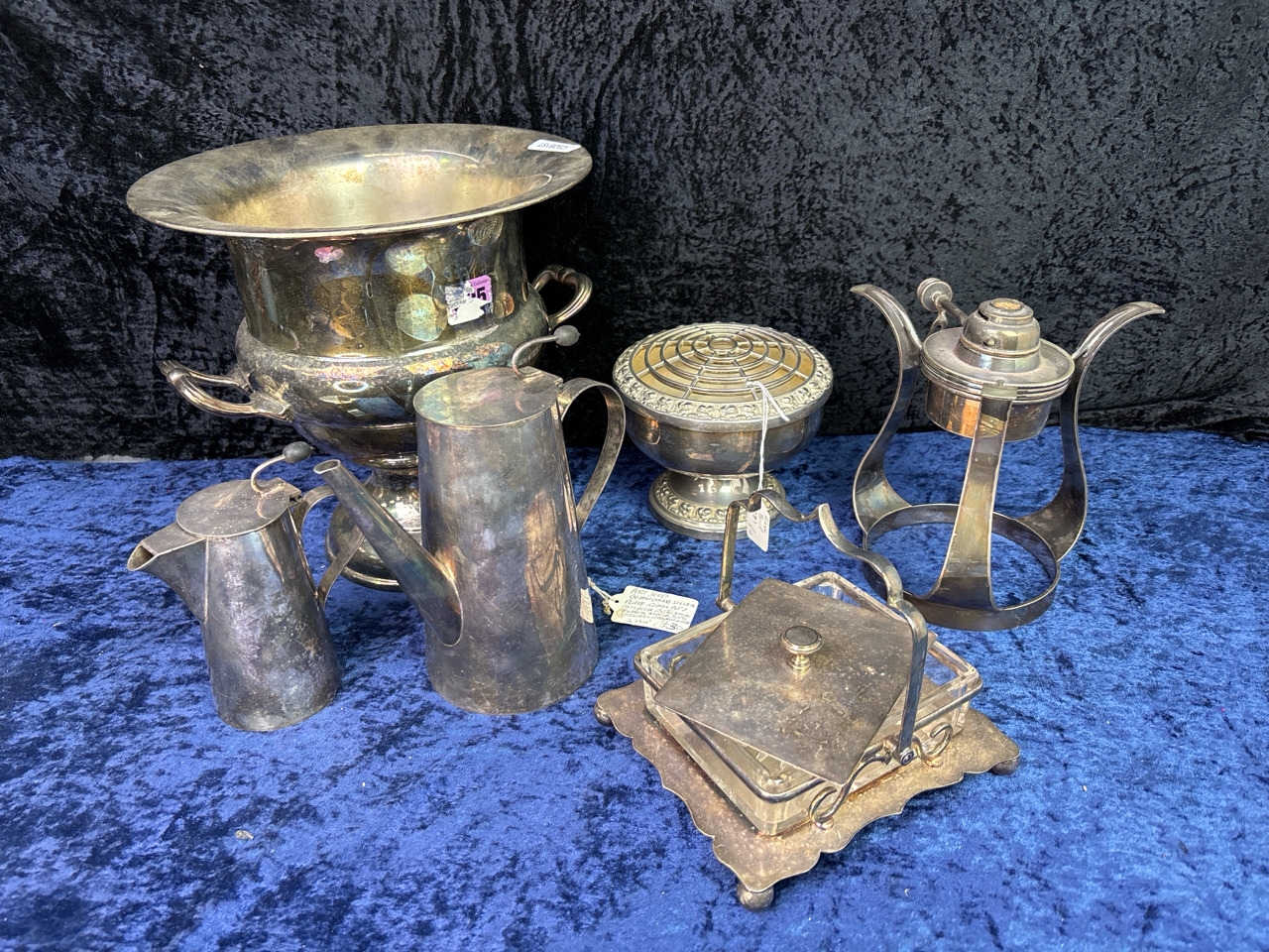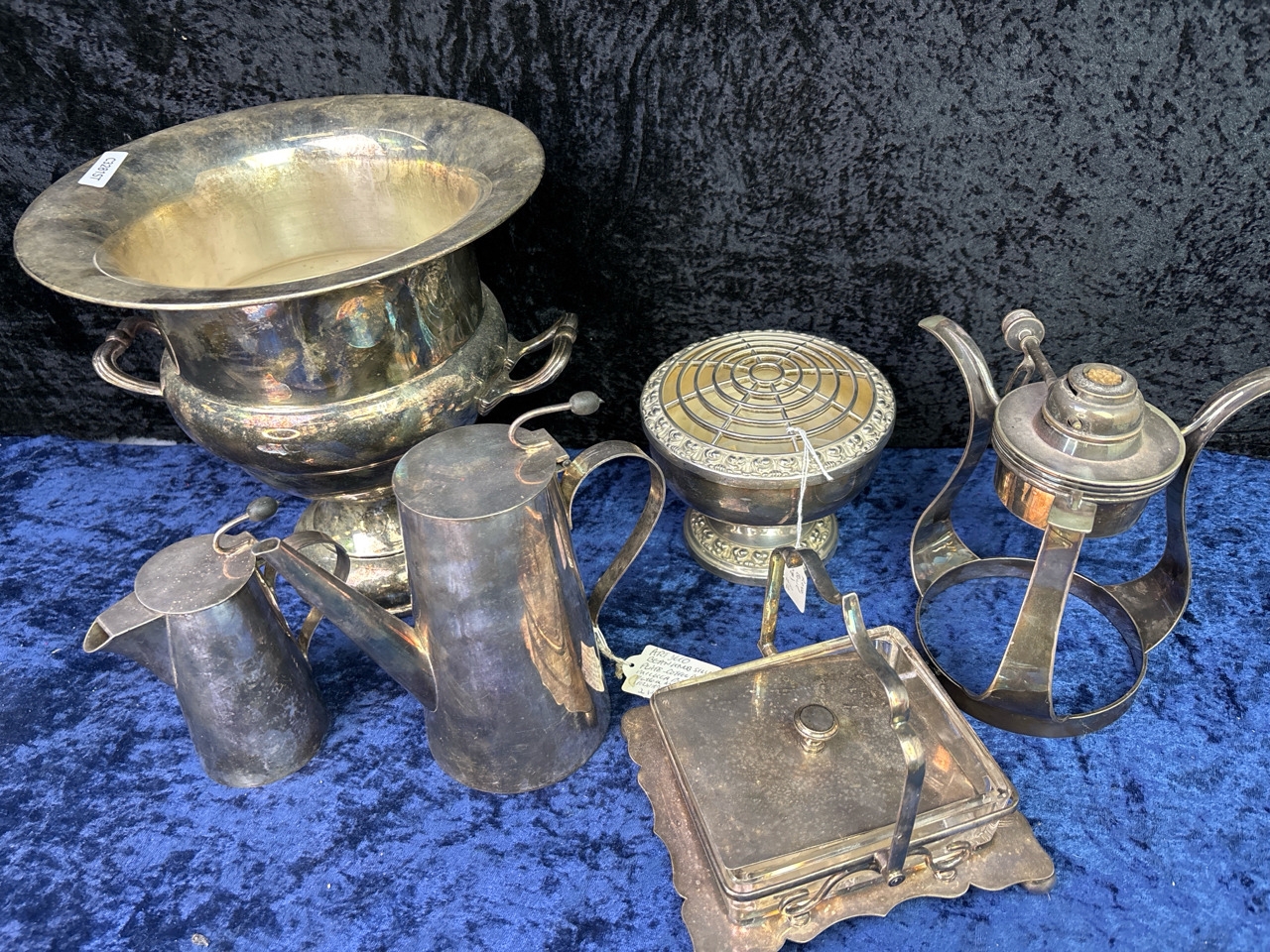Interesting collection of silver plate items Inc wine cooler, rose bowl, burner etc